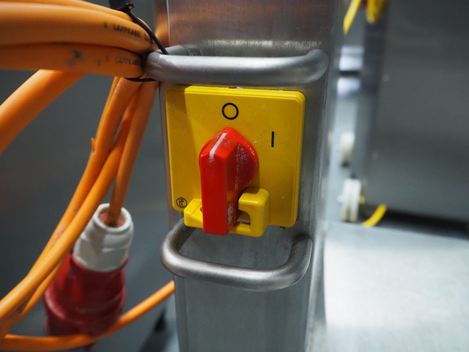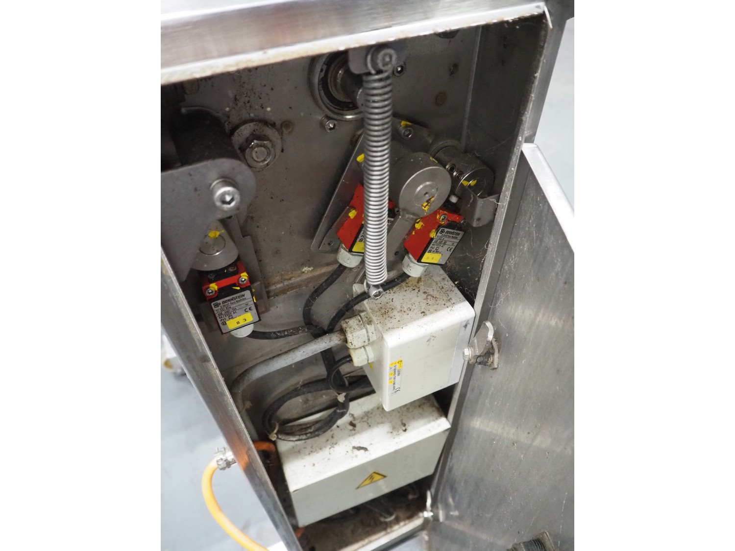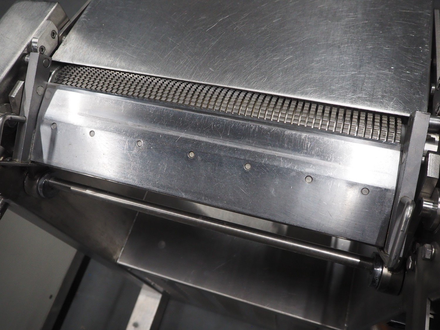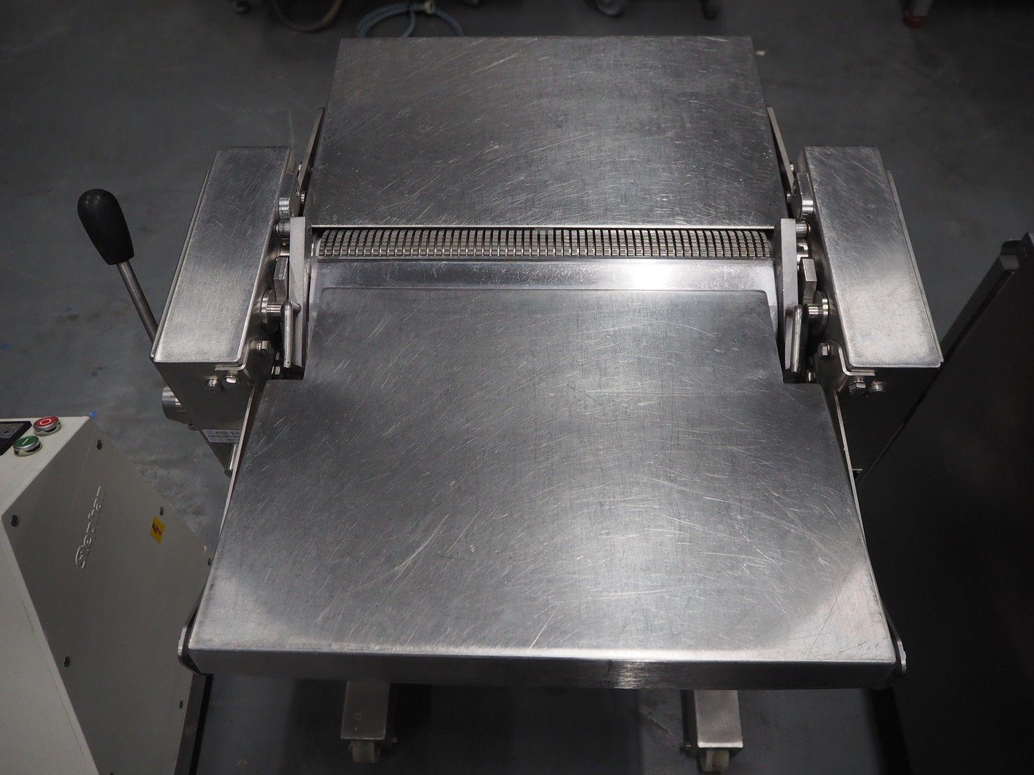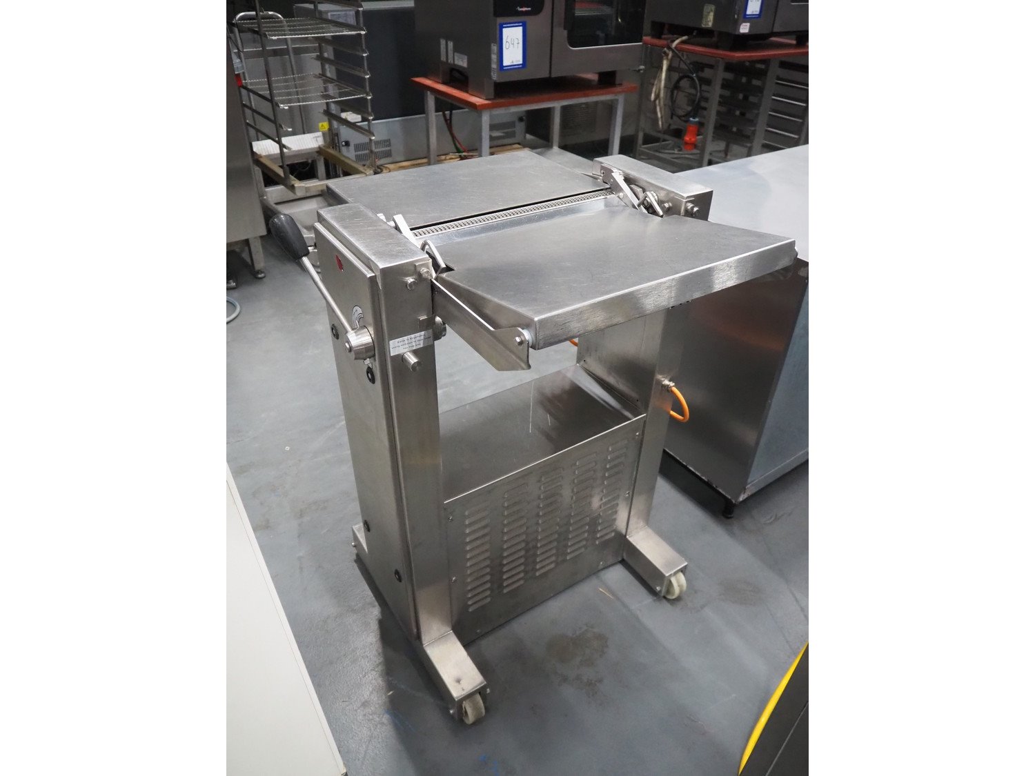 Maja mobile skinning machine, type: ESM 435, number: 41319, year of construction: 1999, 400 V, 3 Ph, 50 Hz, 2 A, 0.75 kW, working width: 430 mm, total dimensions: 770 mm x 730 mm x 980 mm.
