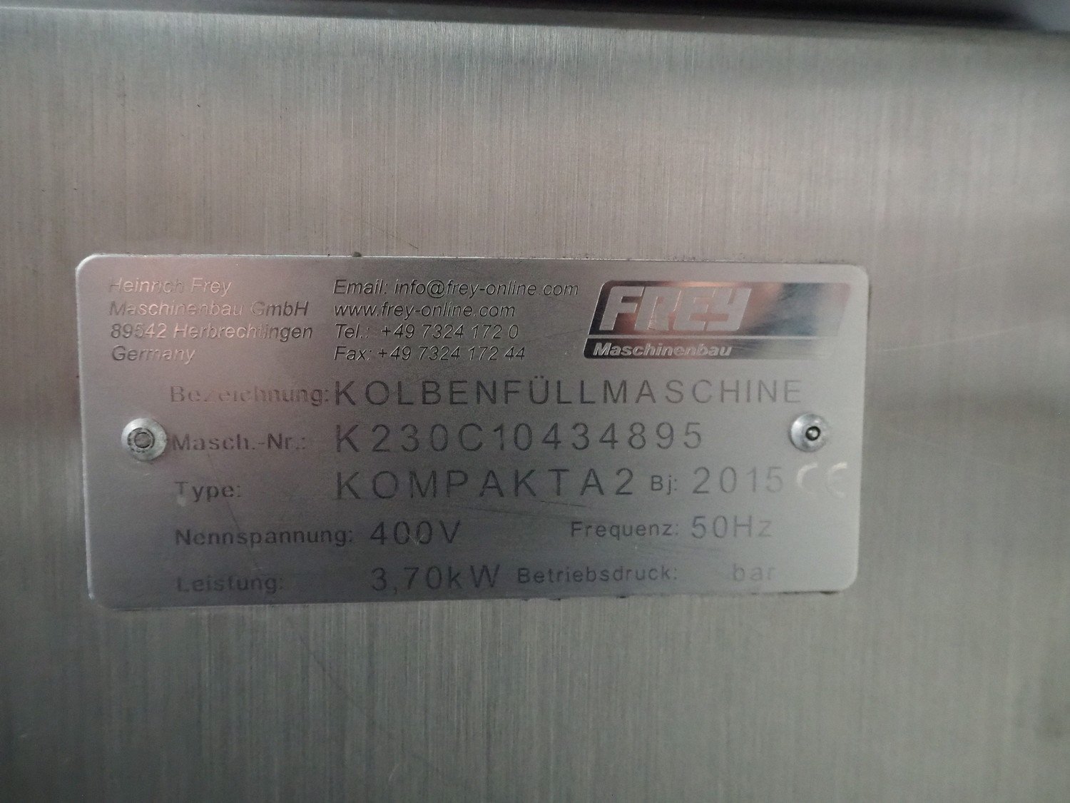 Frey mobile piston filler, type: KOMPAKTA2, machine number: K230C10434895, year of construction: 2015, 400 V, 50 Hz, 3.7 kW, dimensions: 1000 mm x 800 mm x 1230 mm.