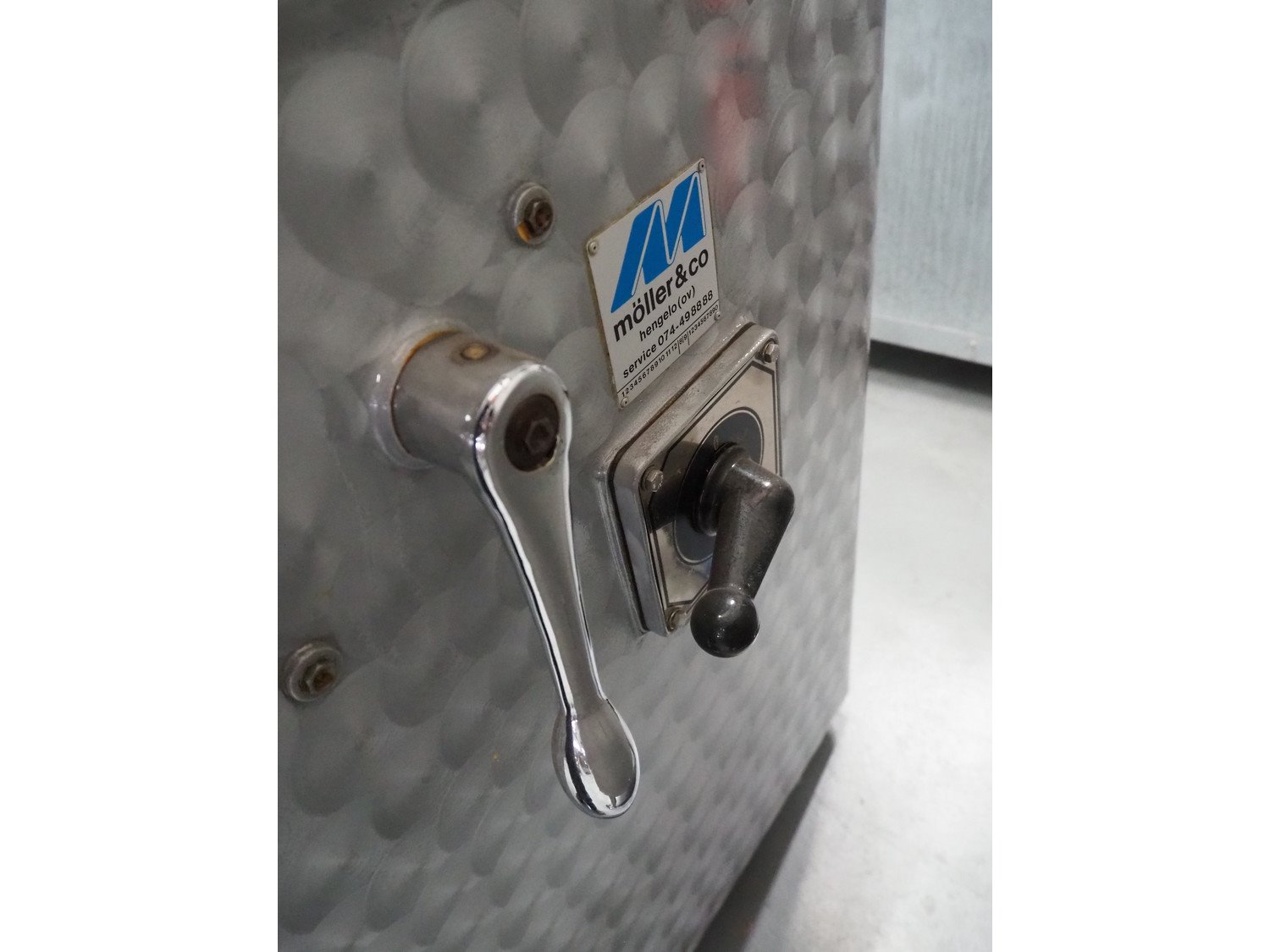 Moller & Co grinder, plate diameter: 98 mm, total dimensions: 600 mm x 900 mm x 1200 mm.