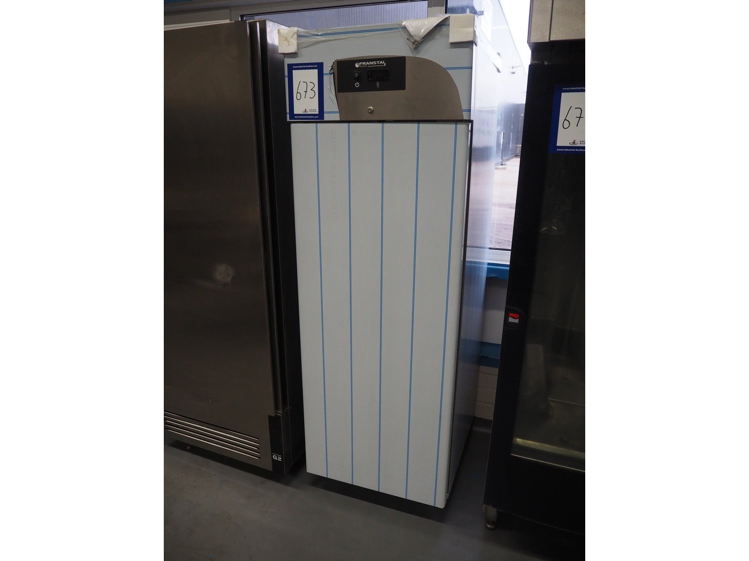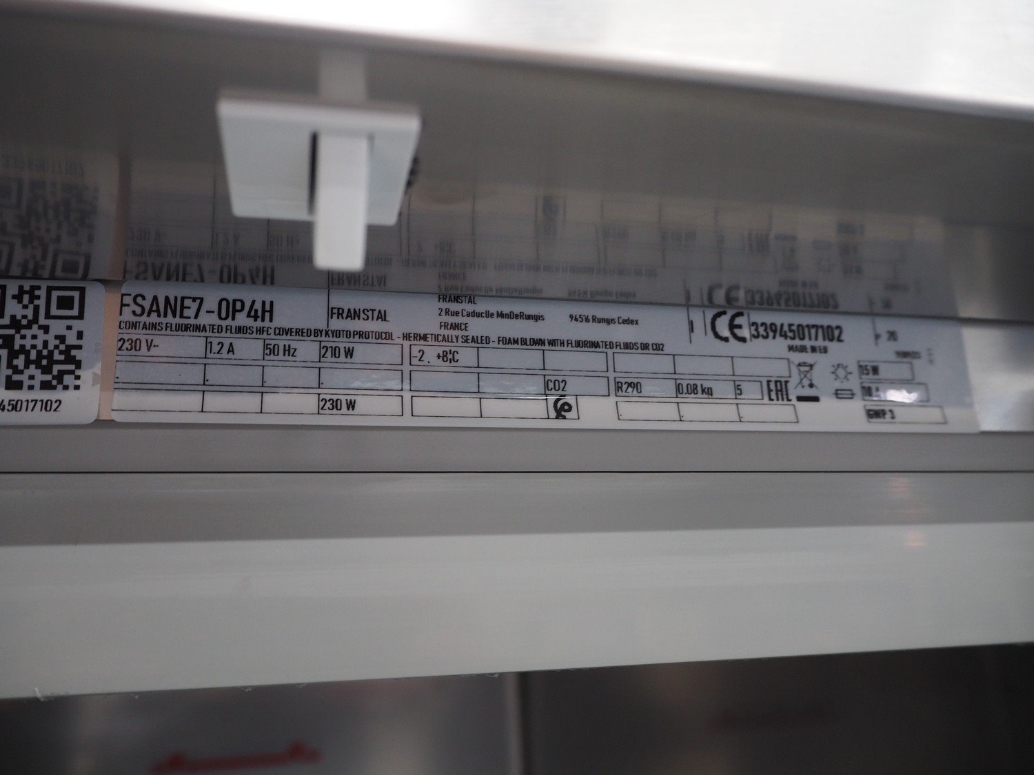 Franstal refrigerator, type: FSANE7-0P4H, 230 V, 50 Hz, 1.2 A, 210 Watt, refrigerant: R290, 0.08 kg, 20 floors, floor dimensions: (20x) 635 mm x 525 mm, total dimensions: 800 mm 690 mm x 2000 mm.