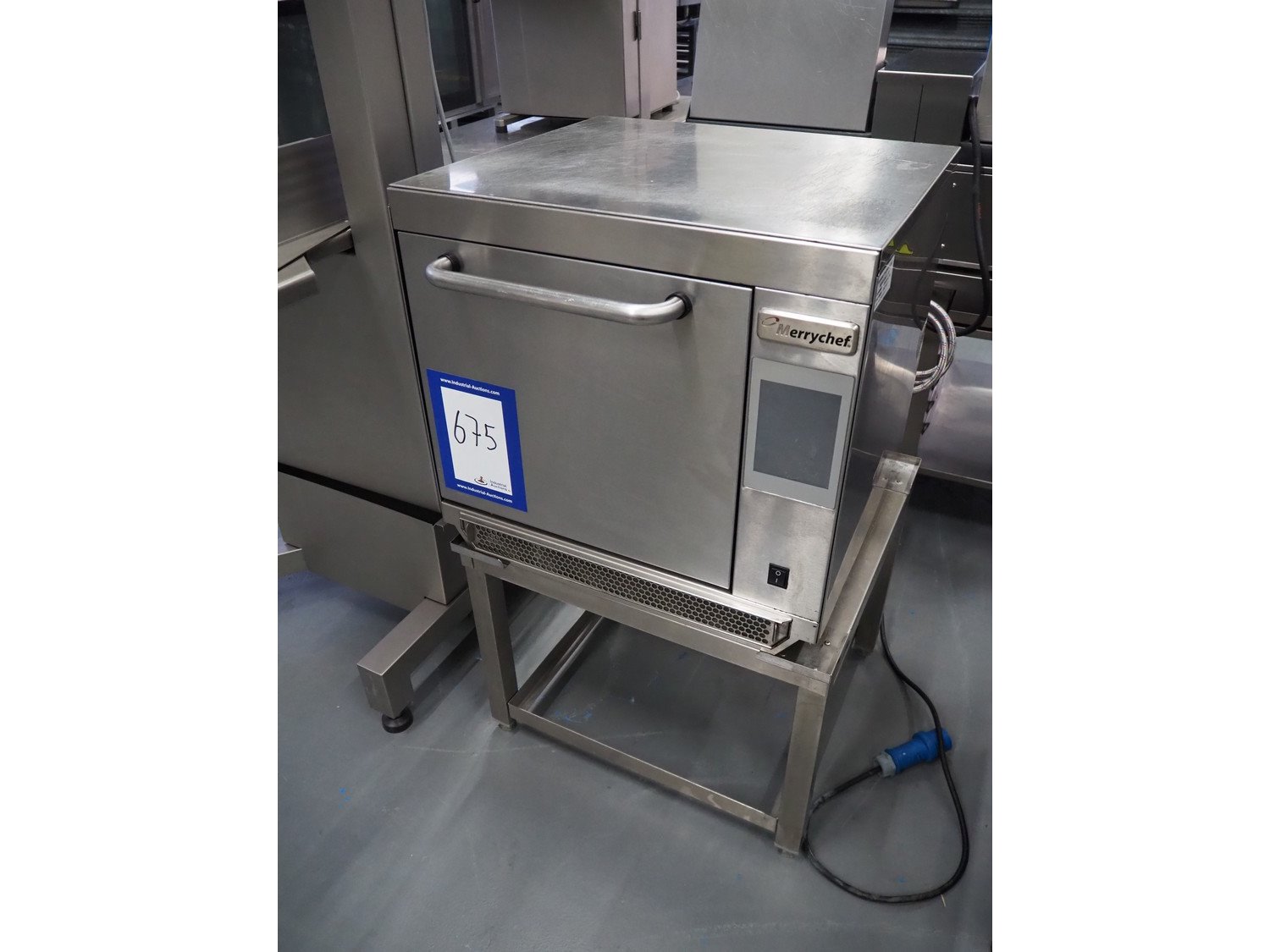 Merrychef high speed oven, model: eikon e3, item number: e3NEE305AAU2P3UK, serial number: 1206213090771, 2 floors, dimensions each floor: 330 mm x 250 mm, total dimensions: 600 mm x 600 mm x 560 mm.