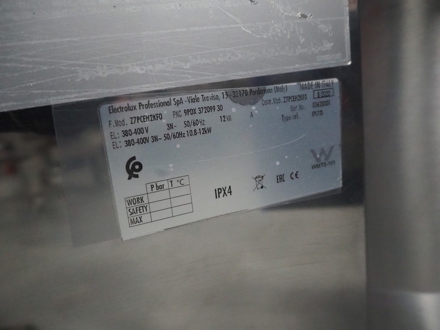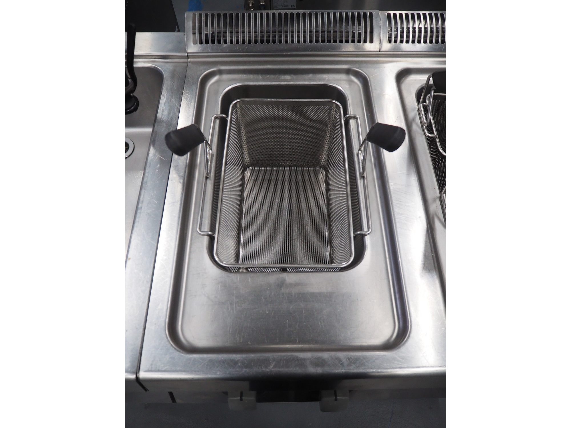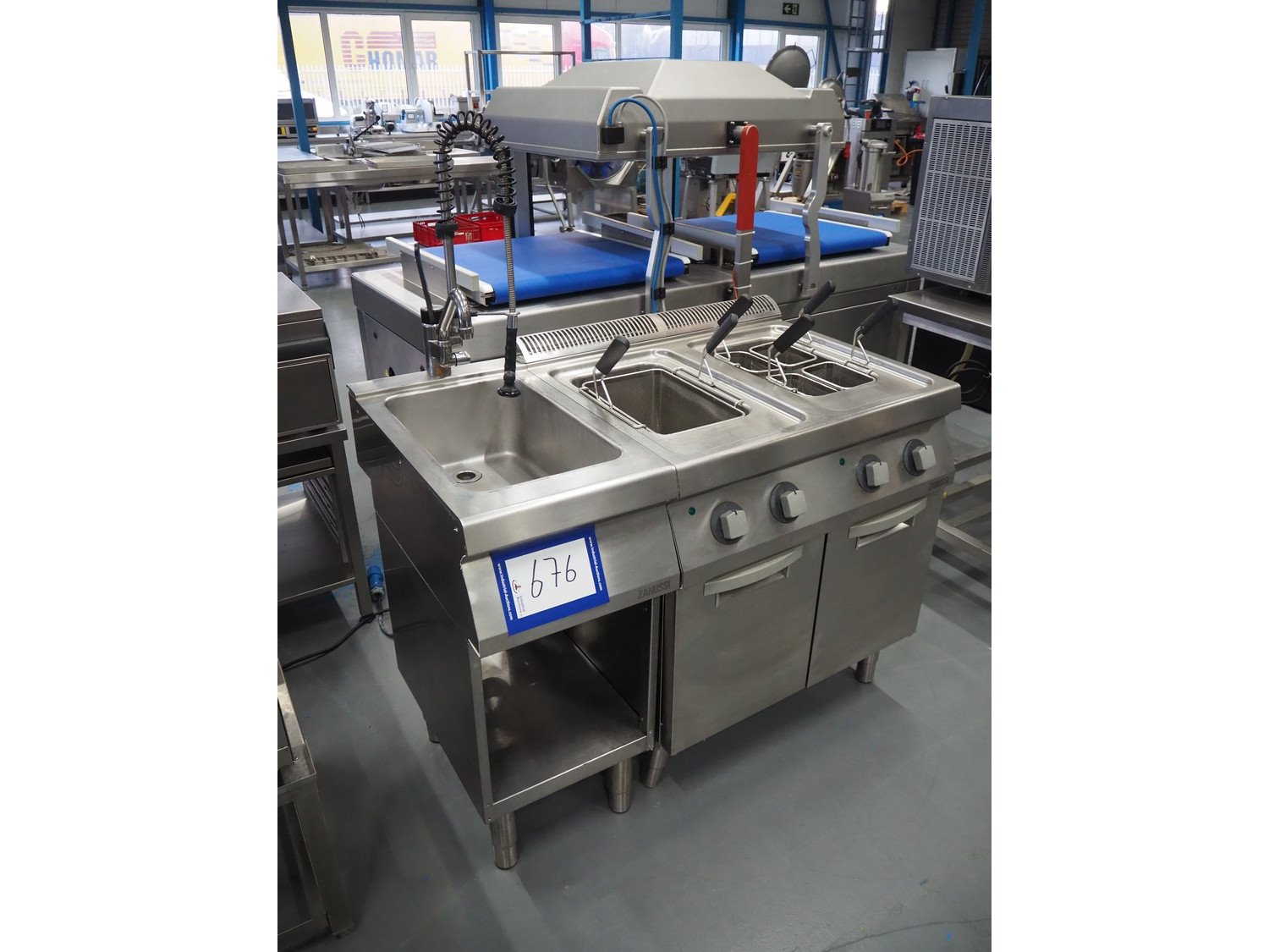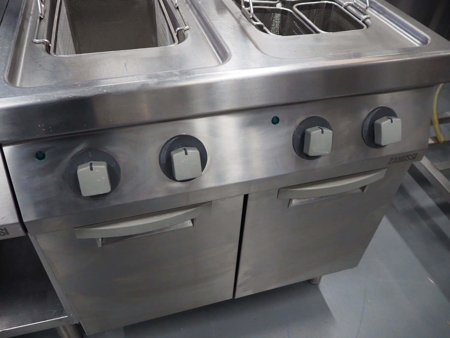 Zanussi pasta cooking machine, double basket, model: Z7PCEH2KF0, serial number: 036200001, 380-400 V, 3 Ph, 50/60 Hz, 12 kW, dimensions: 1200 mm x 730 mm x 1450 mm. Including 5 baskets.