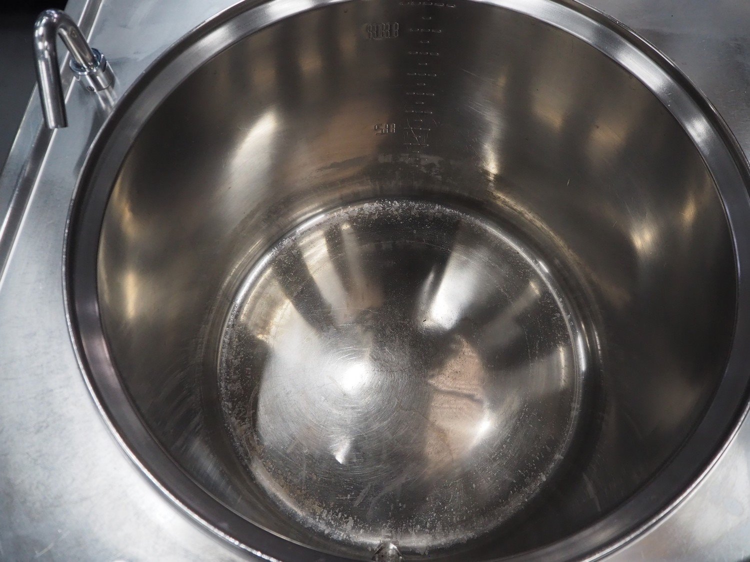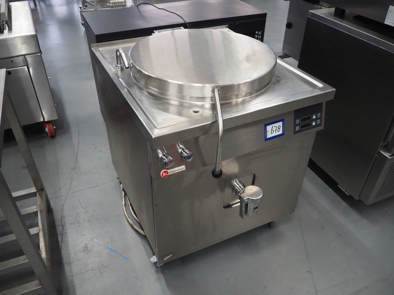 Küpperbusch cooking vessel, inside dimensions: Ø 590 mm x 460 mm, total dimensions: 800 mm x 940 mm x 980 mm.