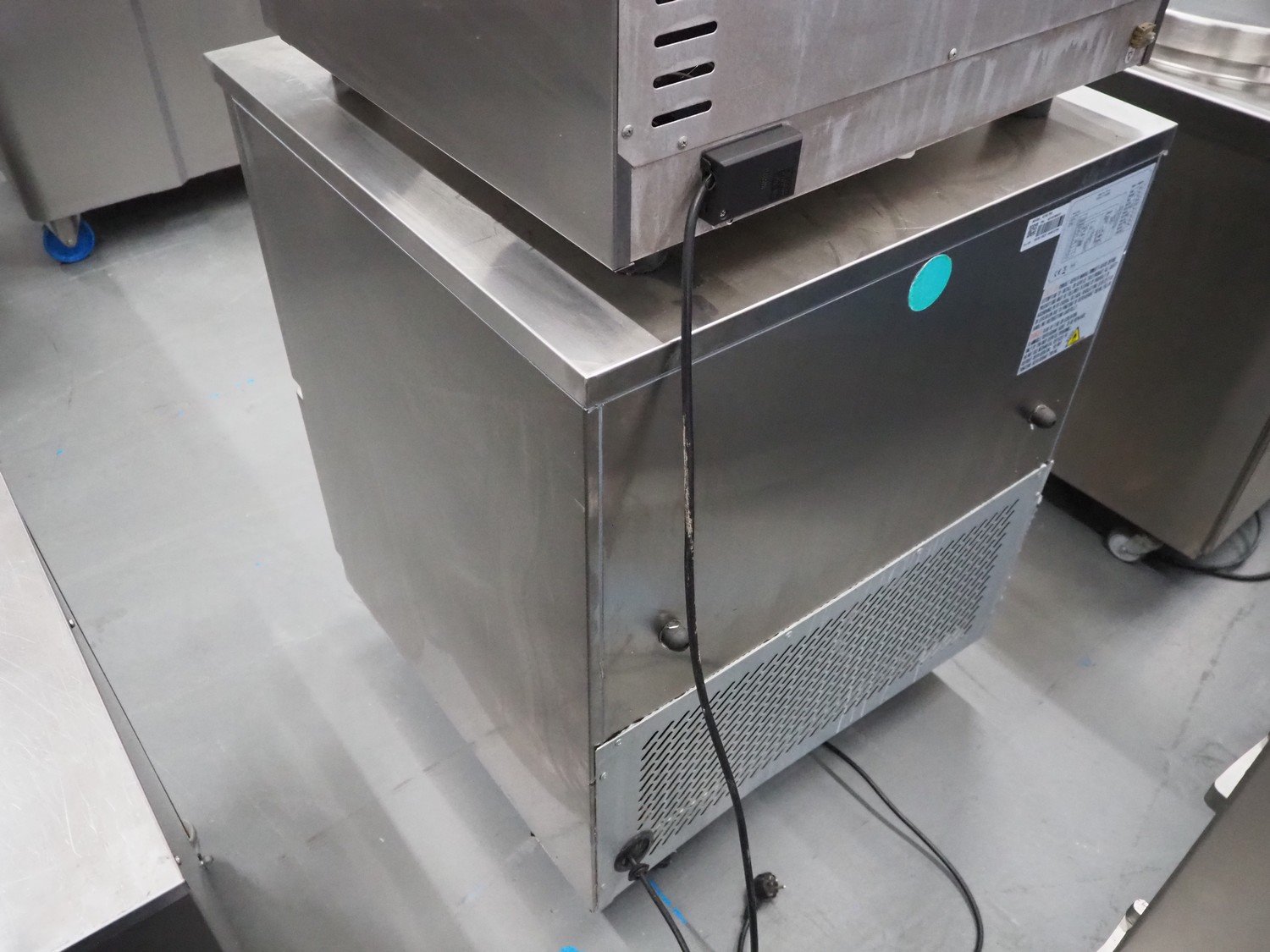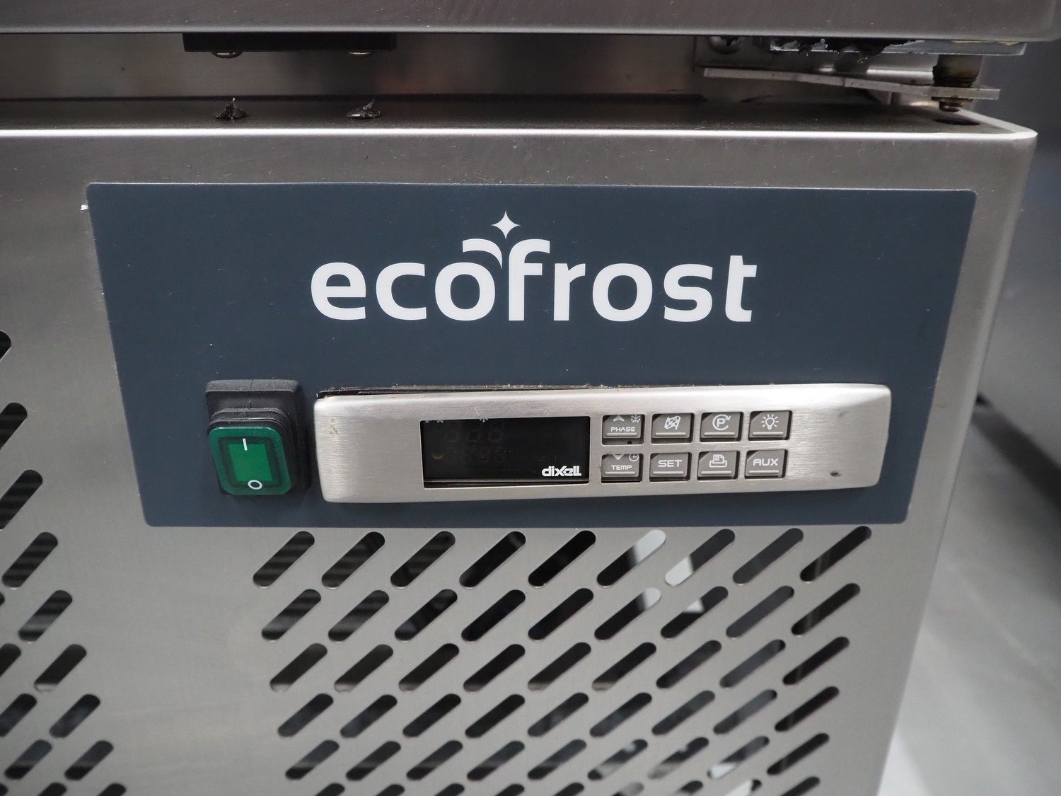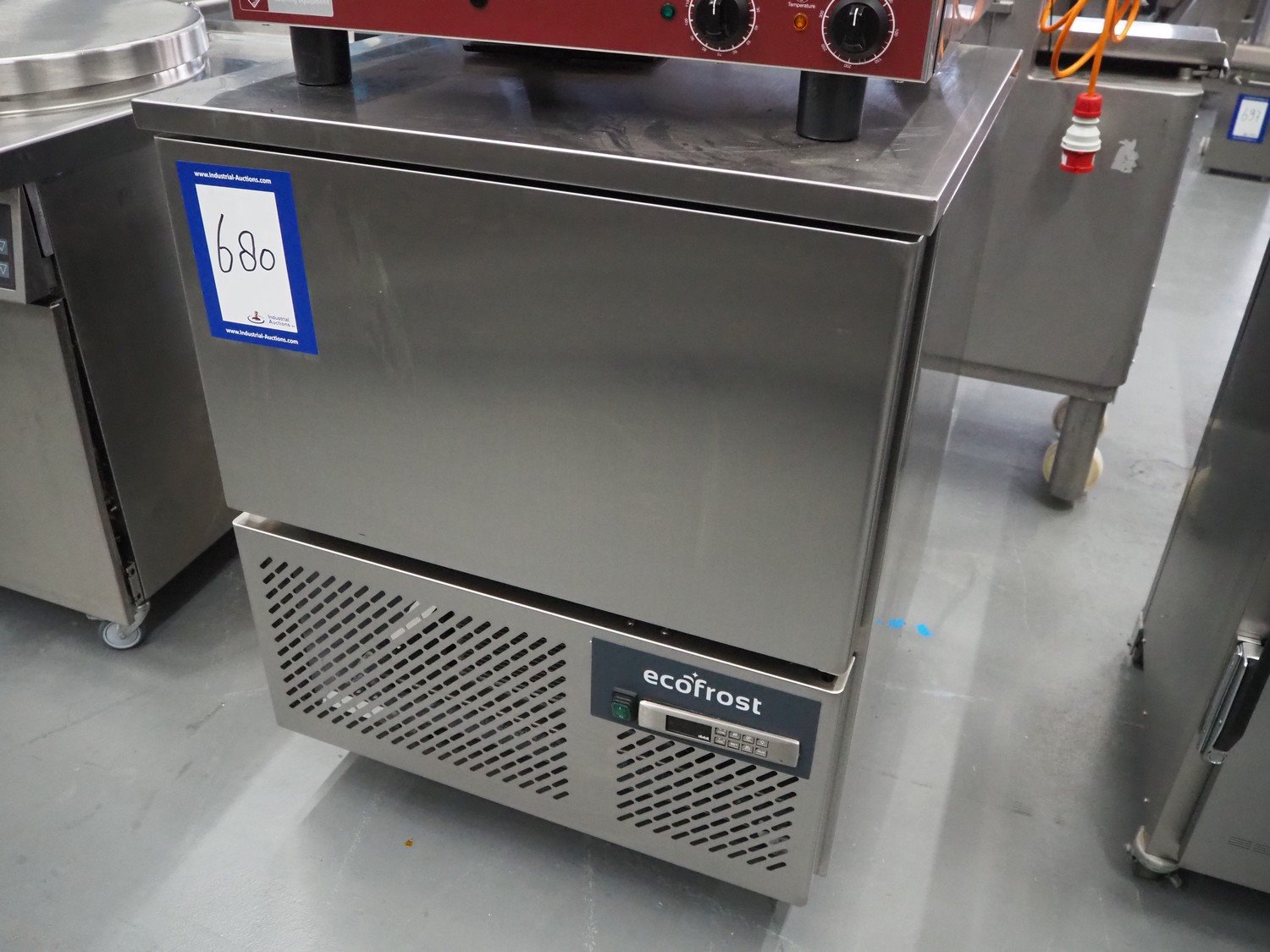 Ecofrost blast chiller, model: 4750.705, serial number: 6530 1525 1908 0706, 220/240 V, 50 Hz, 4.5 A, 750 W, weight: 108 kg, refrigerant: R290/250g, 5 floors, dimensions each floor: 600 mm x 370 mm, total dimensions: 800 mm x 800 mm x 1000 mm.