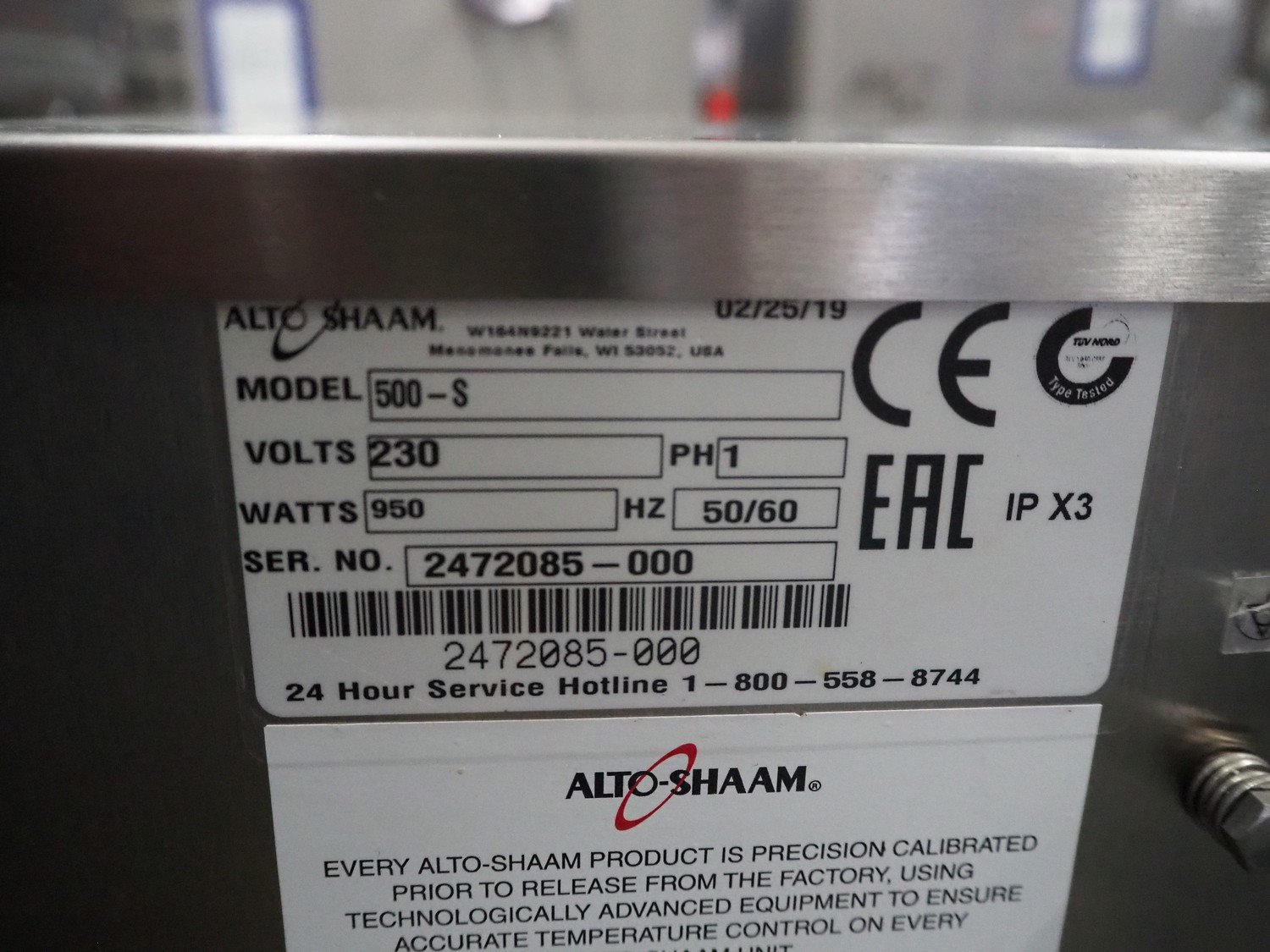 Alto-Shaam mobile heated cabinet, model: 500-S, serial number: 2472085-000, 230 V, 1 Ph, 50/60 Hz, 950 W, 11 floors, dimensions: 450 mm x 600 mm x 800 mm.