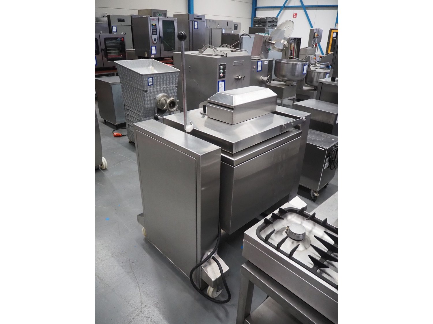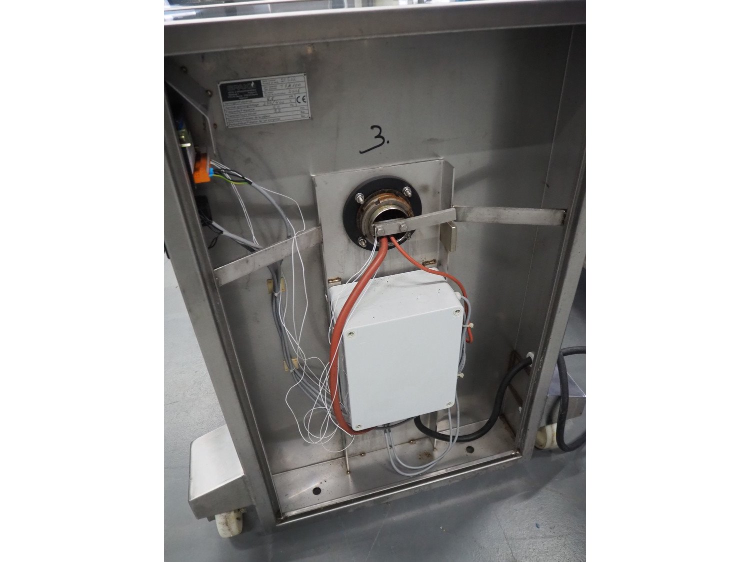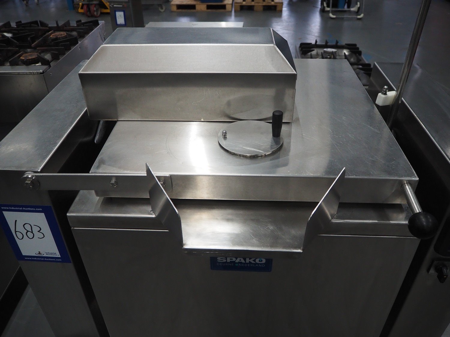 Spako cooking vessel with agitator, type: TRK100, serial number: 21.532, 230/400 V, 50 Hz, 9.5 kW, inside dimensions: Ø 600 mm x 400 mm, total dimensions: 1160 mm x 880 mm x 1590 mm.