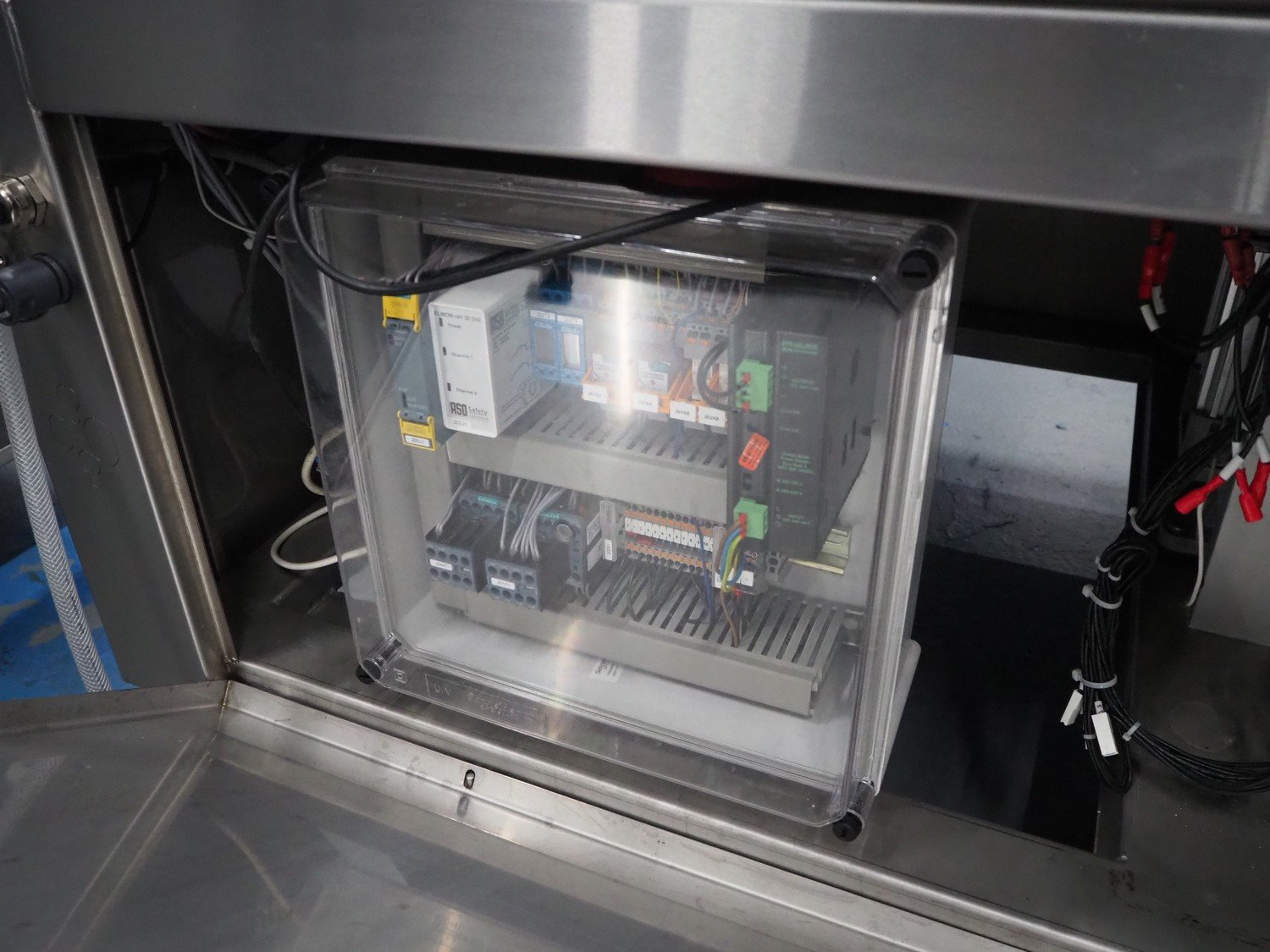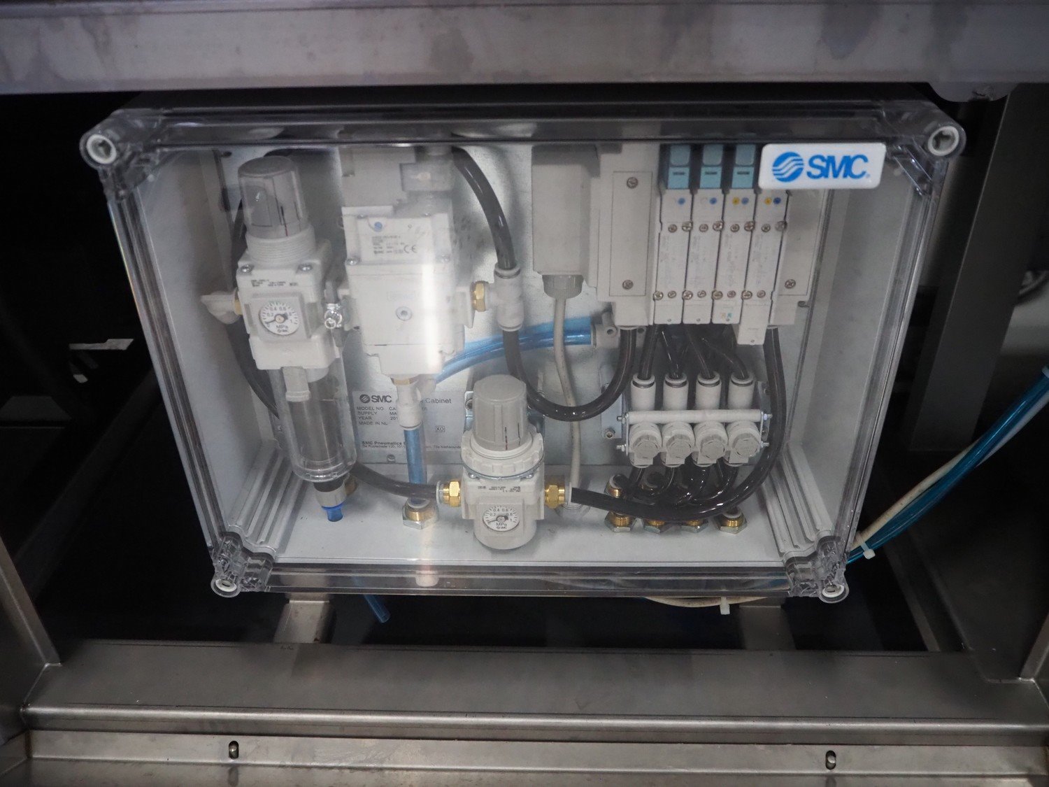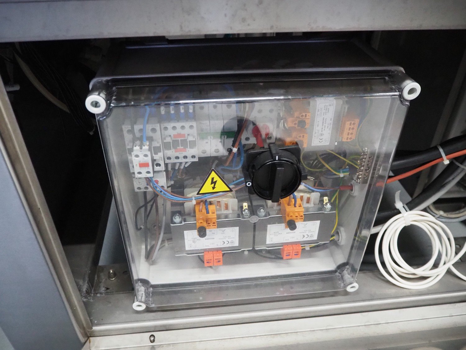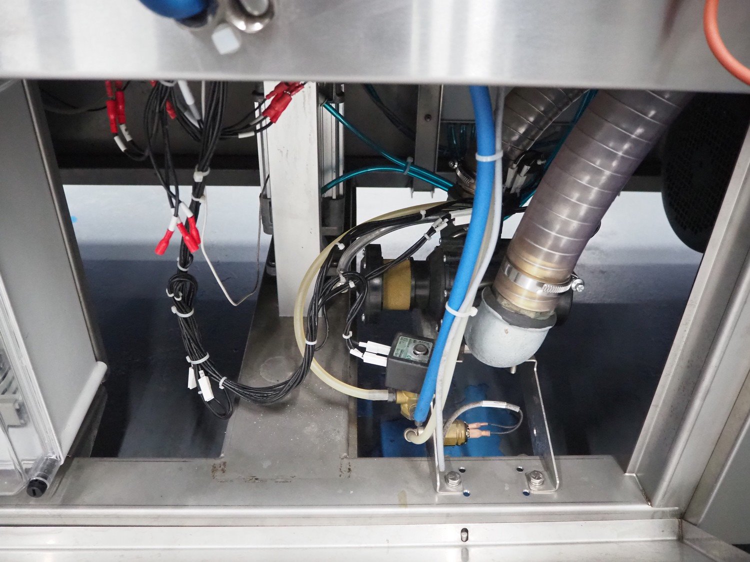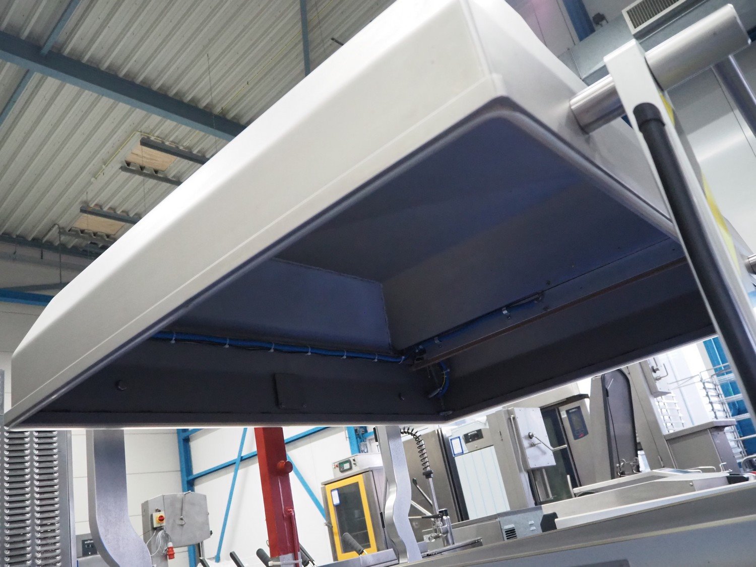 Henkelman mobile double chamber vacuum machine, type: Titaan 2-90, machine number: HTN10190004, year of construction: 2019, 400 V, 3 Ph, 50 Hz, 5.5 kW, seal length: (4x) 850 mm, chamber dimensions: (2x) 850 mm x 900 mm, working hours: 46:32, Busch vacuum pump, type: RD 0360 A 5H3, capacity: 300 m³ per hour, total dimensions: 2500 mm x 1200 mm x 1150 mm. Only 40 working hours.