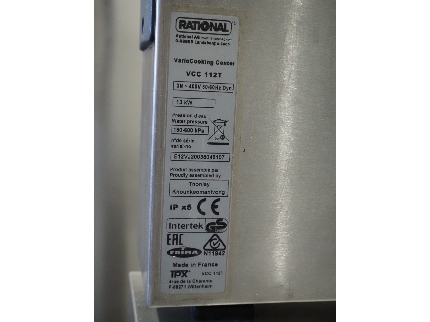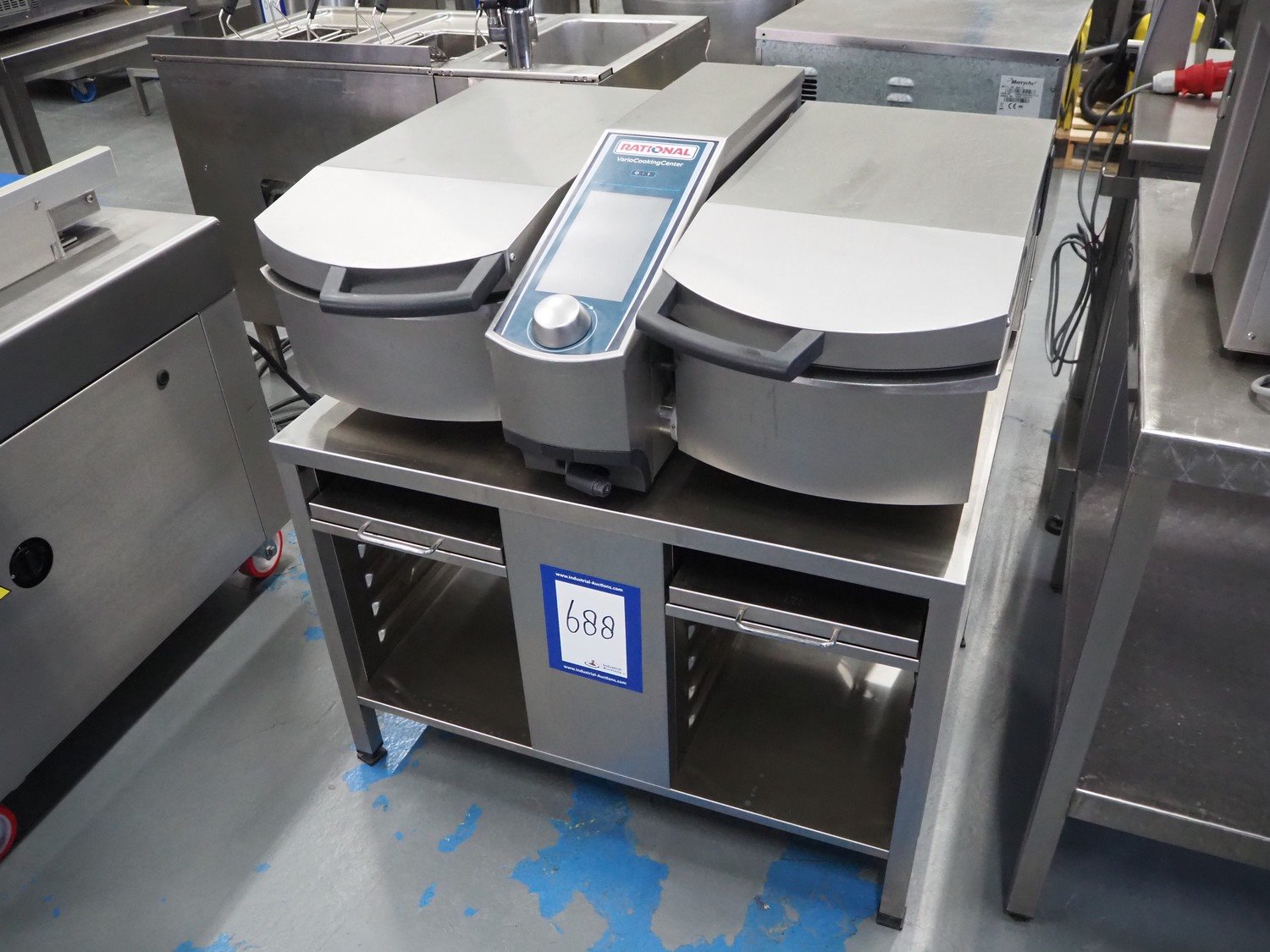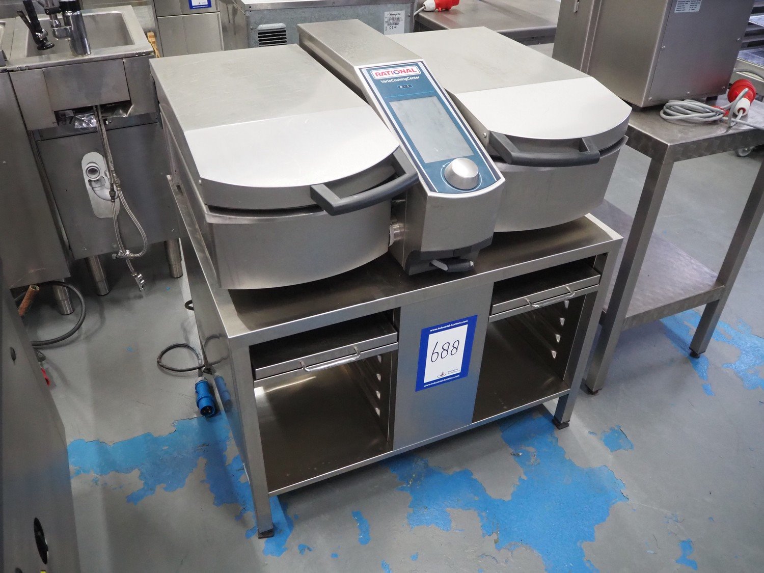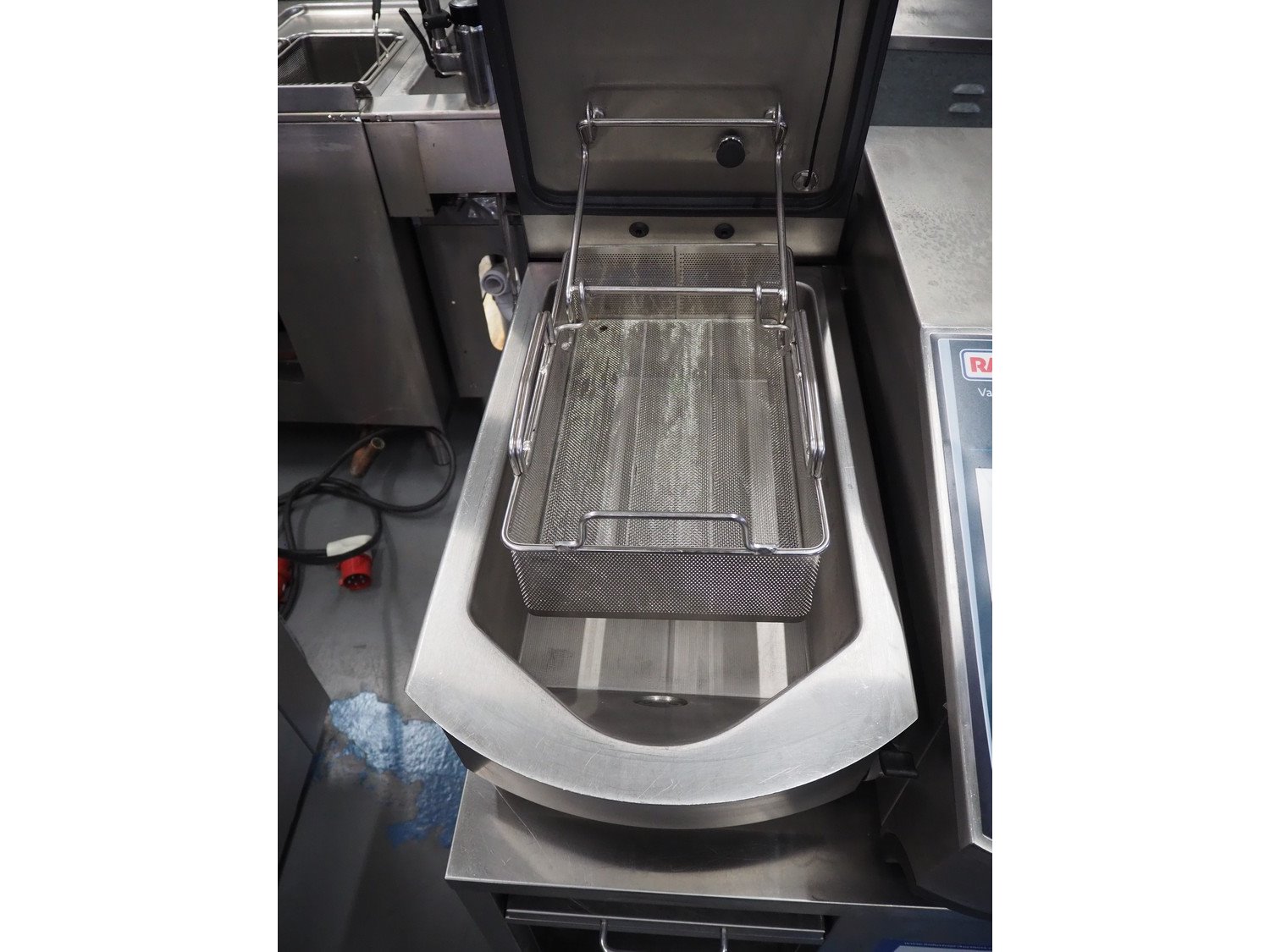 Rational Vario Cooking Center, type: VCC 112T, serial number: E12vj20038046107, year of construction: 2020, 400 V, 3 Ph, 50/60 Hz, 13 kW, temperature: 30-250 °C, water pressure: 150-600 kPa, volume: (2x) 14 liter, inside dimensions: (2x) 330 mm x 440 mm x 140 mm, total dimensions: 960 mm x 740 mm x 1040 mm. Including 2 s/s baskets.