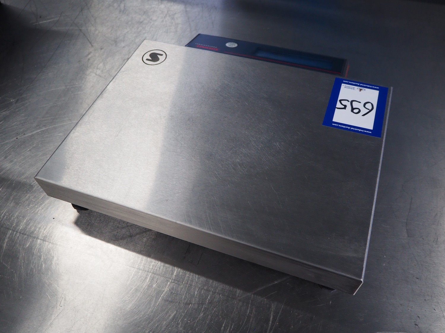 Soehnle weighing scale with indicator, model: 3700, serial number: 9121.052008026, 100-240 V, 50-60 Hz, maximum weight: 60 kg, d= 2 gram, dimensions: 400 mm x 380 mm x 80 mm.