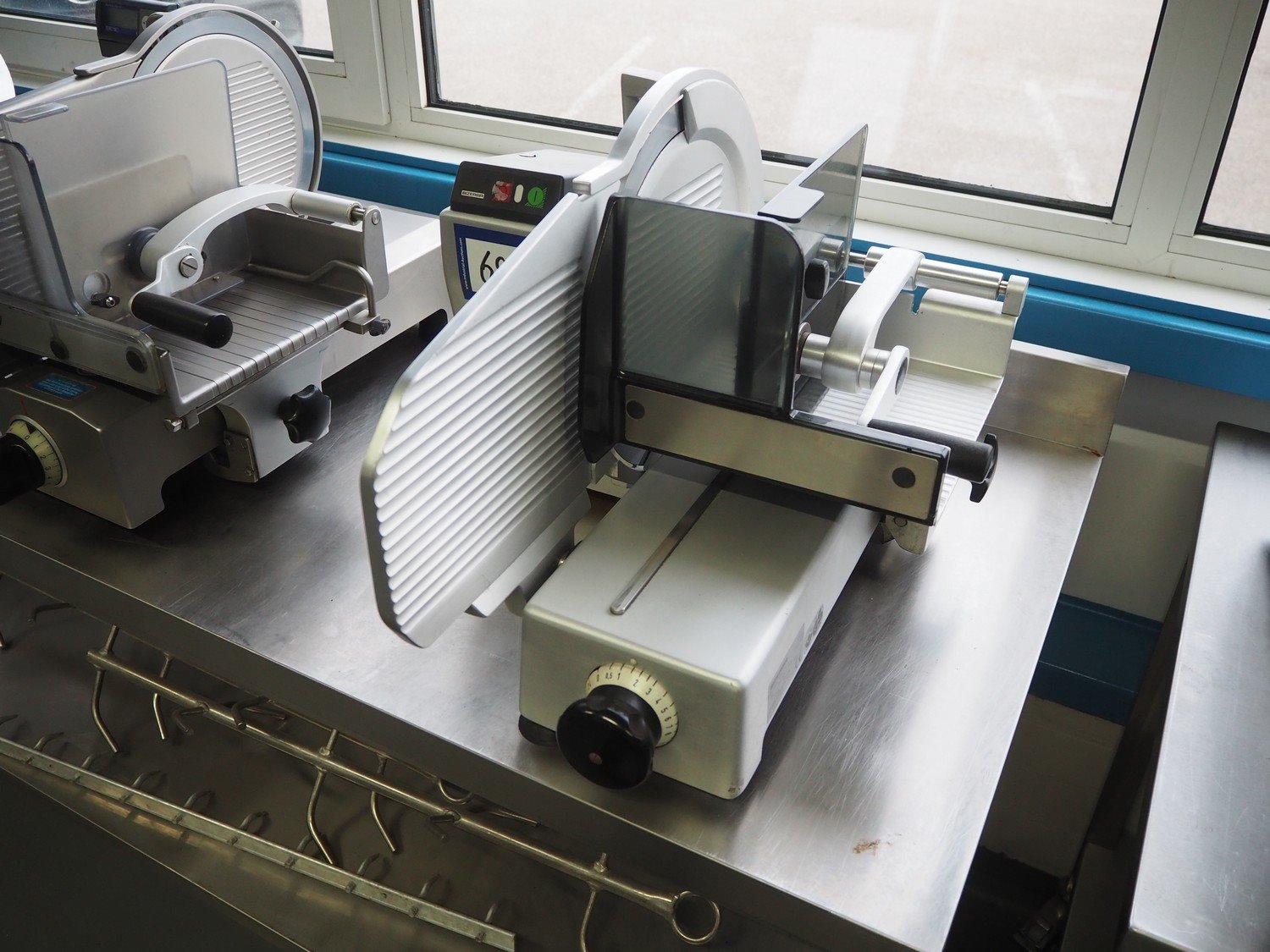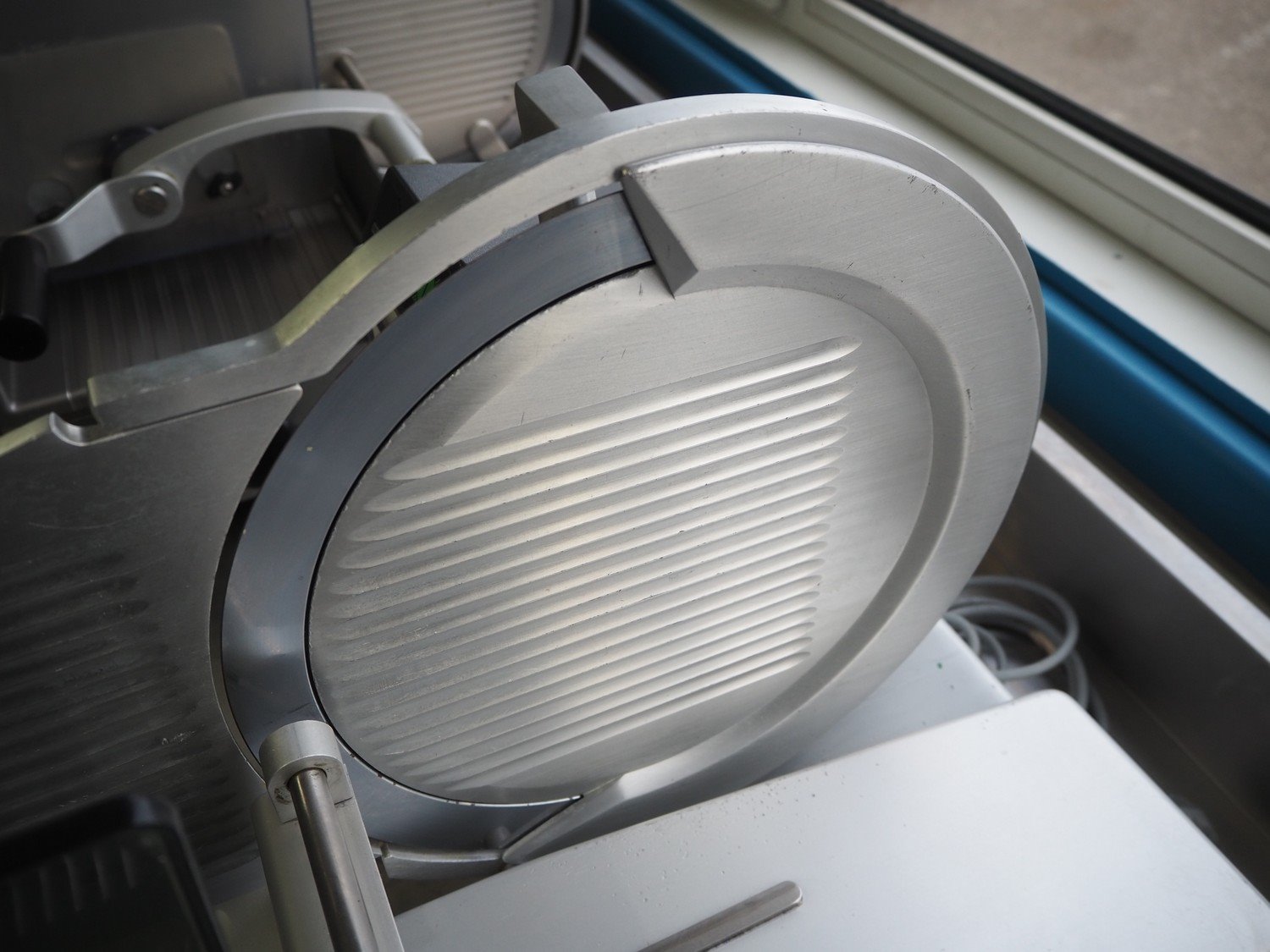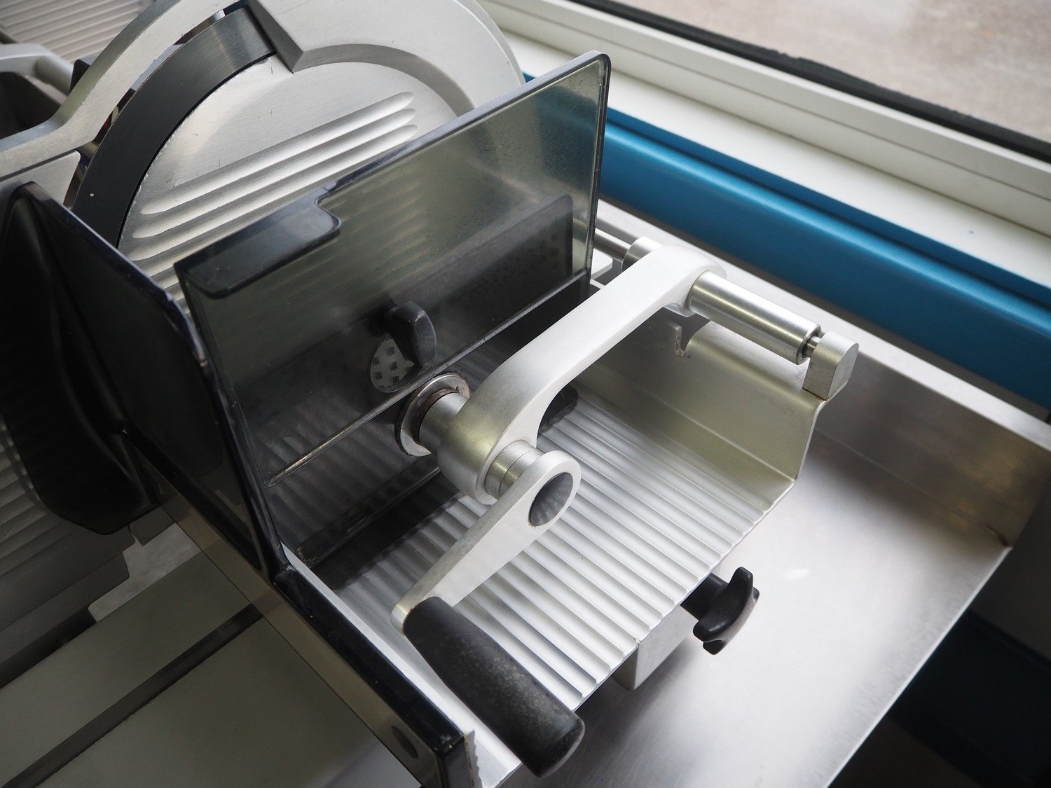 Bizerba slicer, type: VS 8, number: 1655141, year of construction: 1998, 230 V, 1 Ph, 50 Hz, 1.79 A, dimensions: 655 mm x 530 mm x 430 mm.