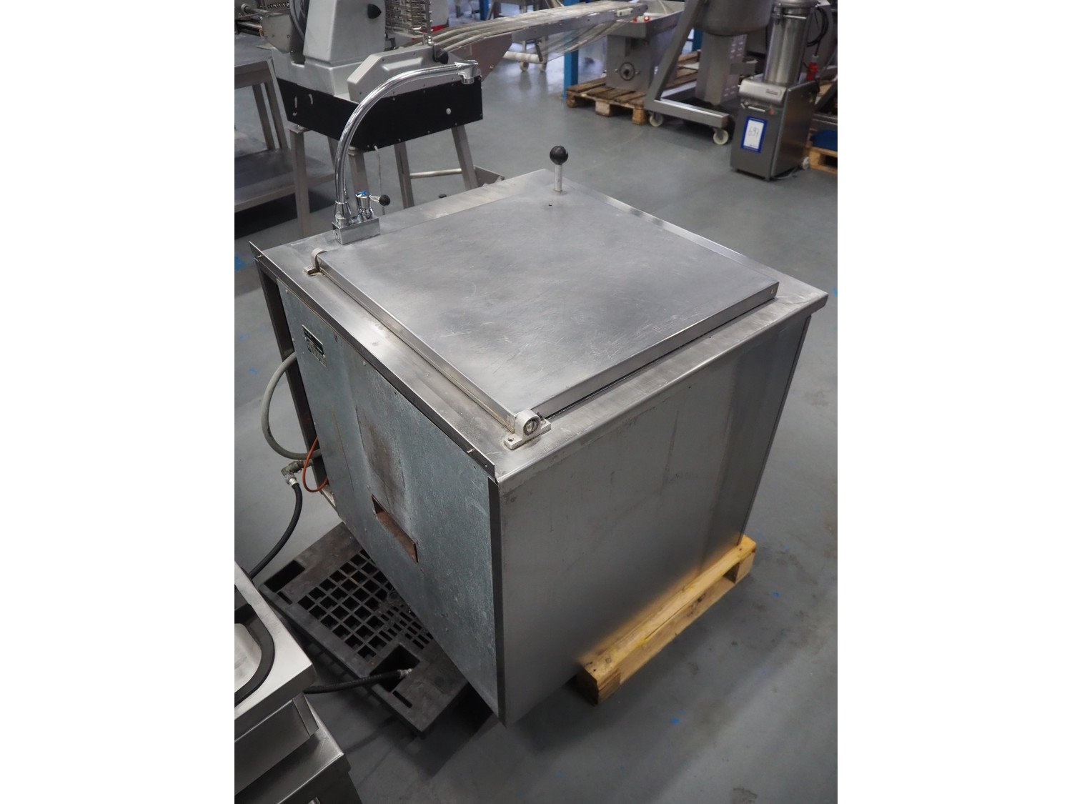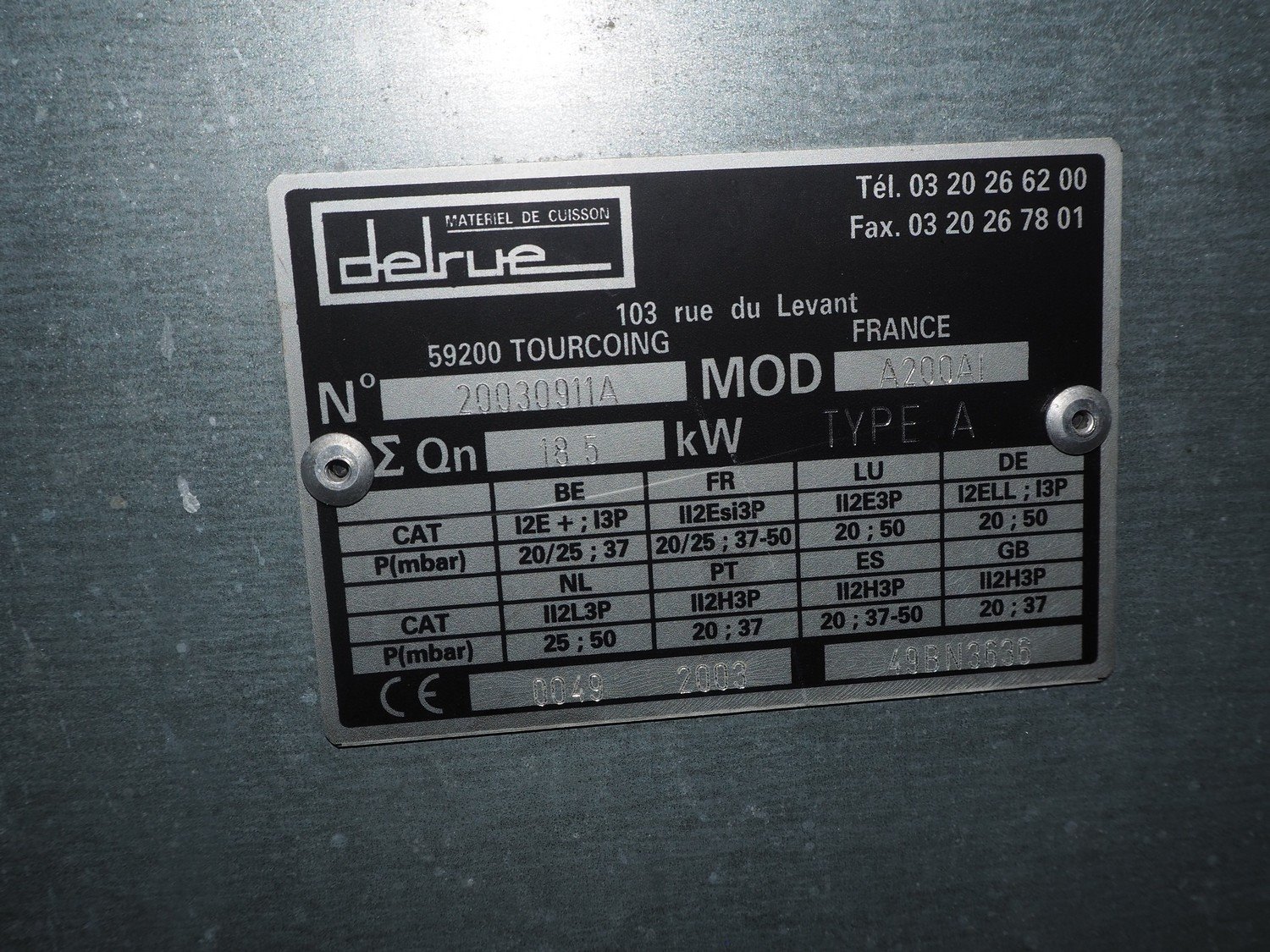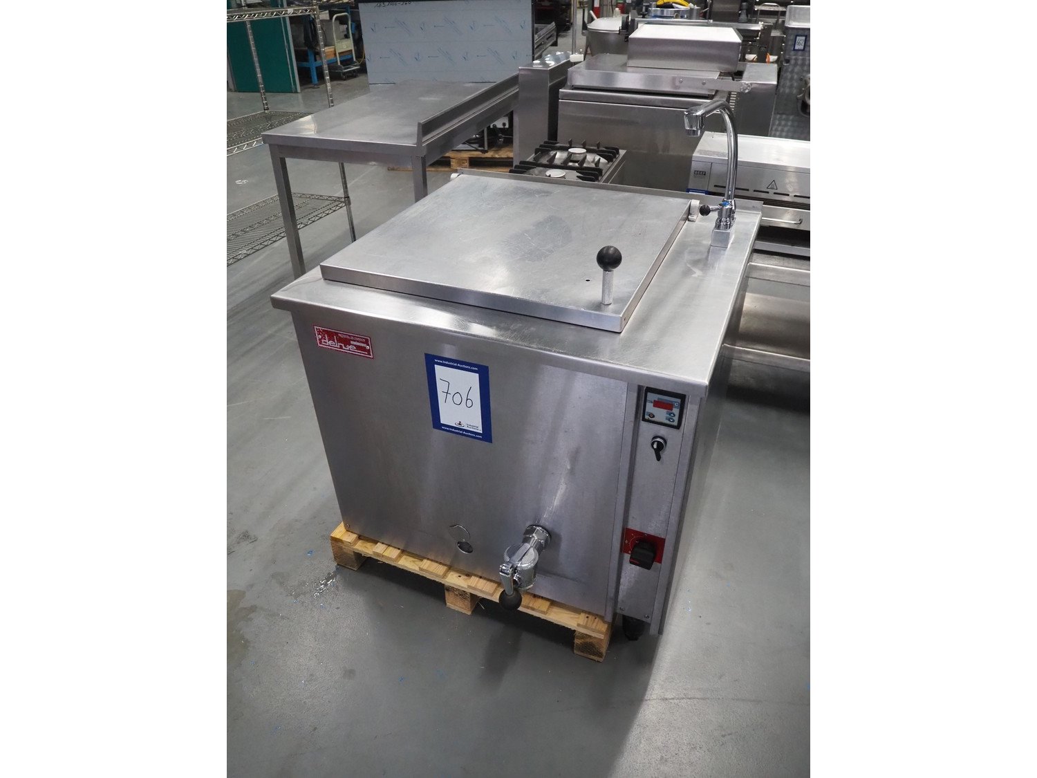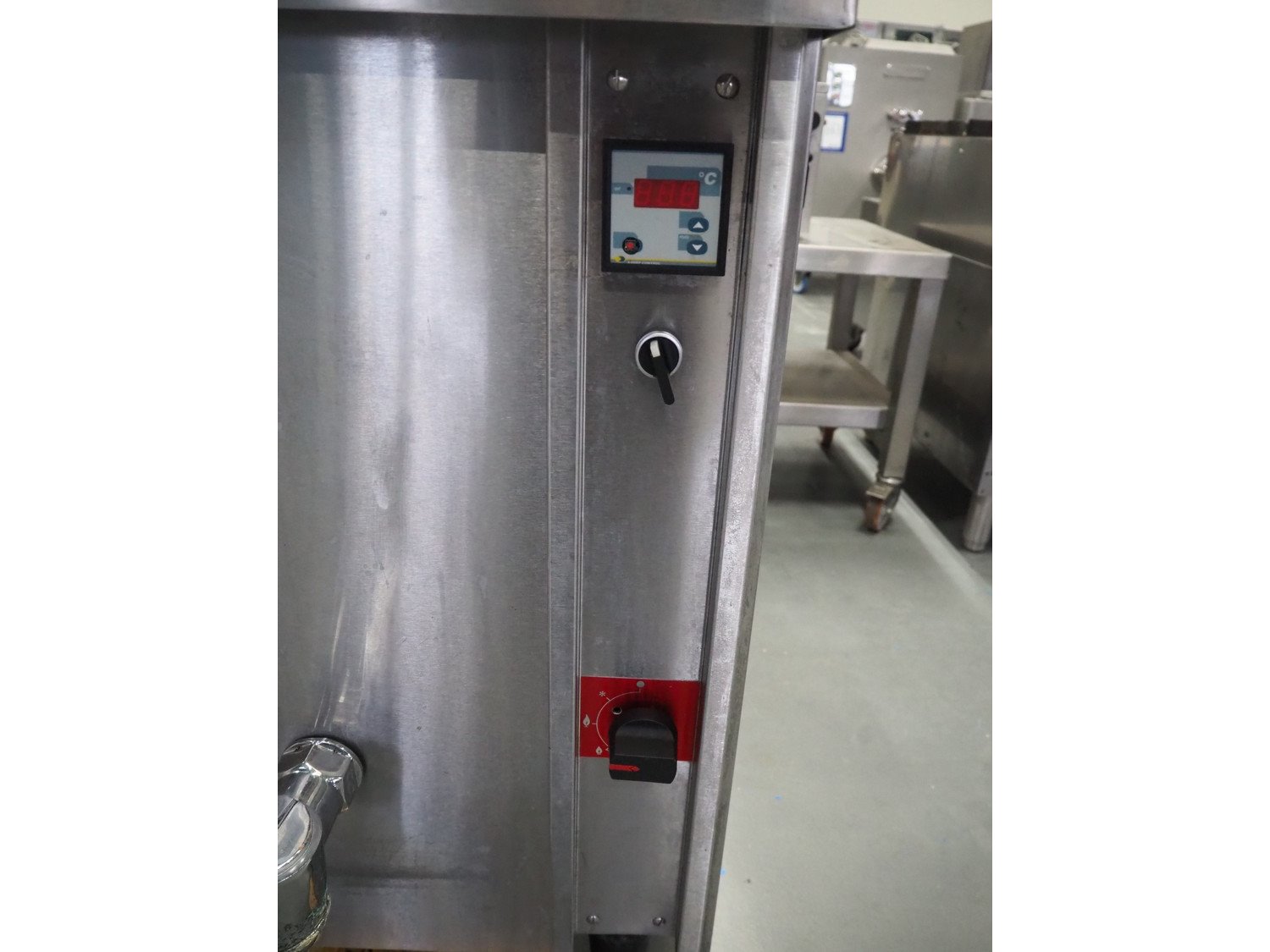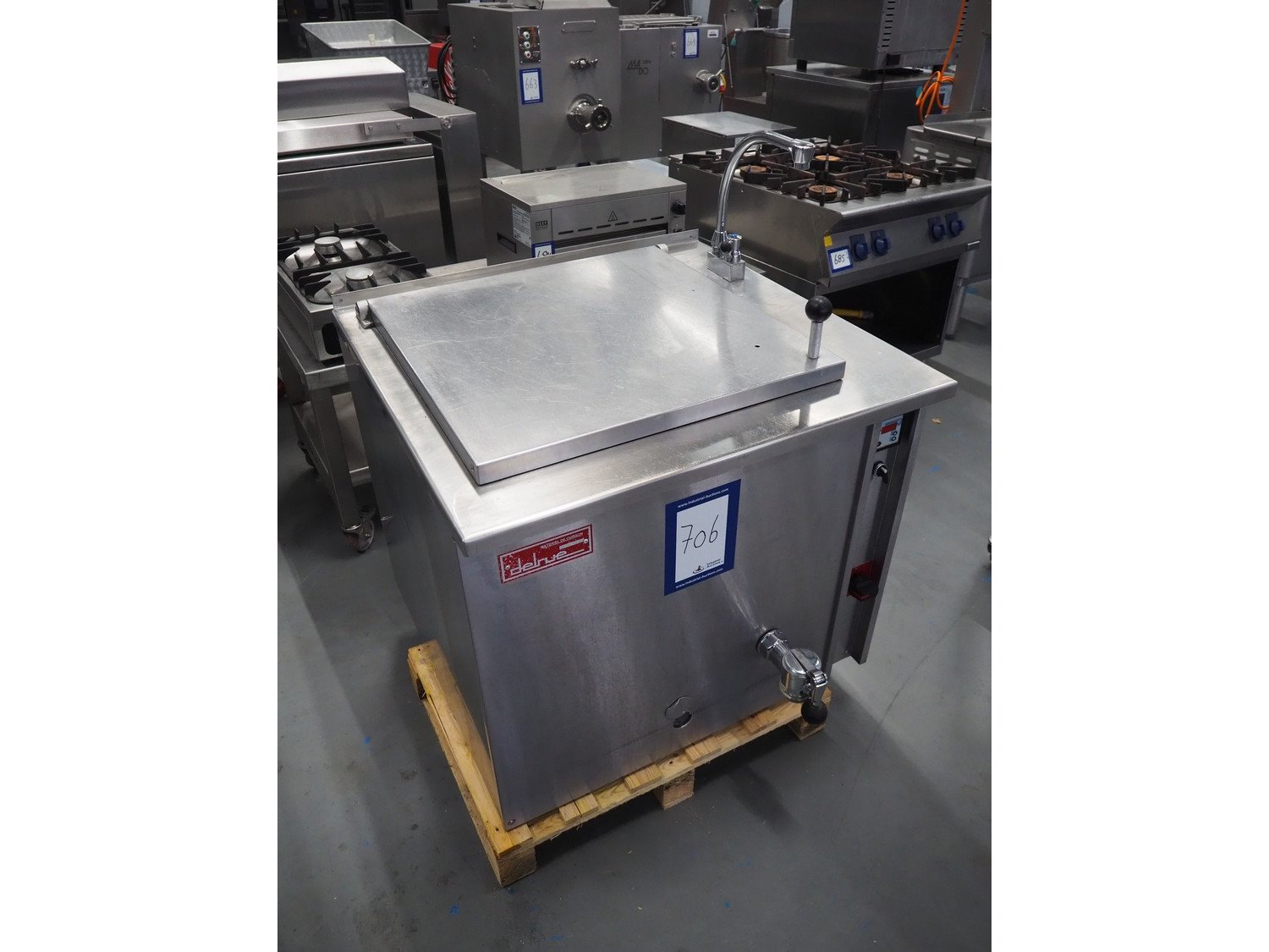 Delrue cooking vessel, model: A200A1, number: 20030911A, year of construction: 2003, 18.5 kW, inside dimensions: 620 mm x 620 mm x 540 mm, total dimensions: 900 mm x 940 mm x 1120 mm.