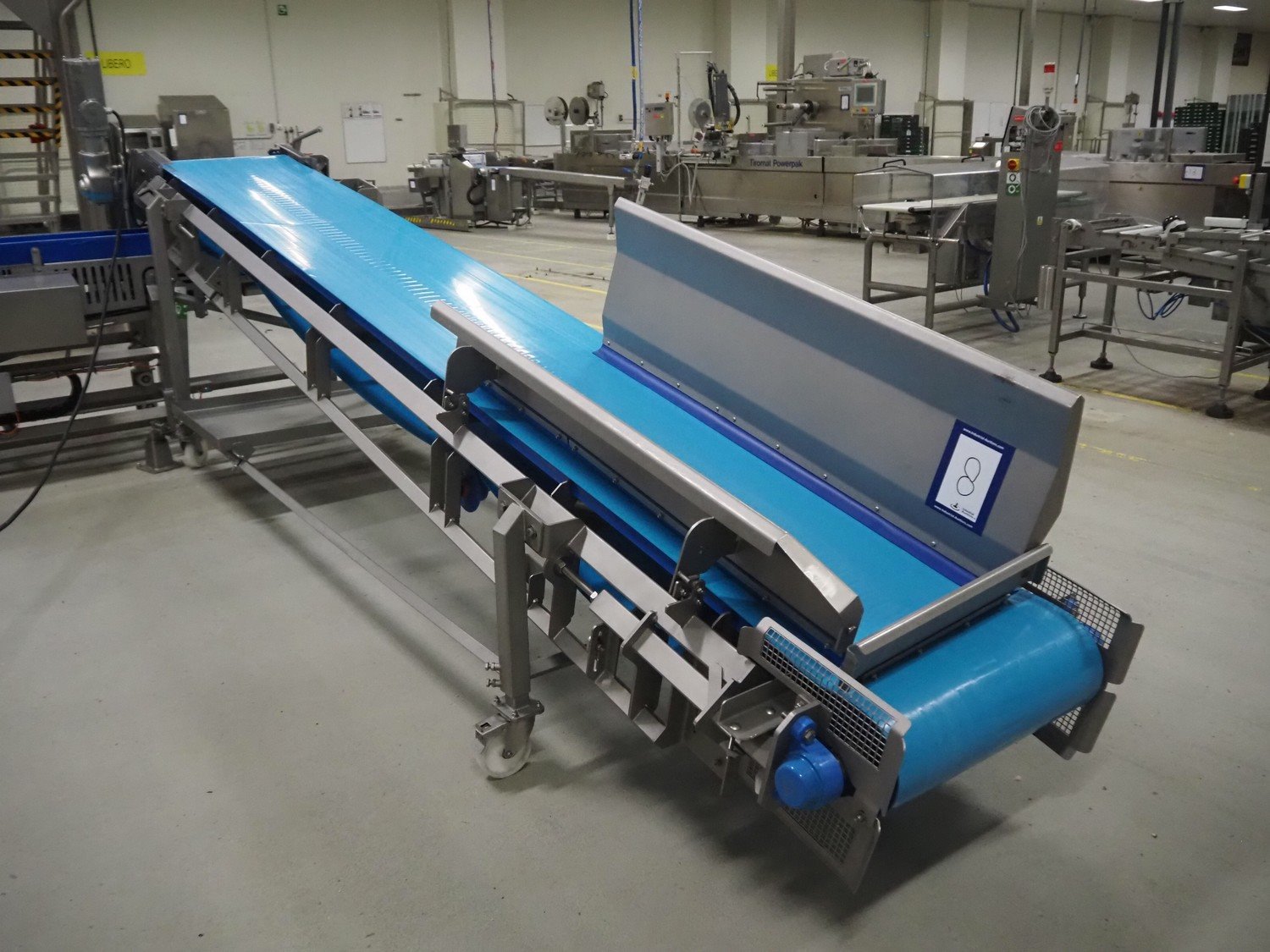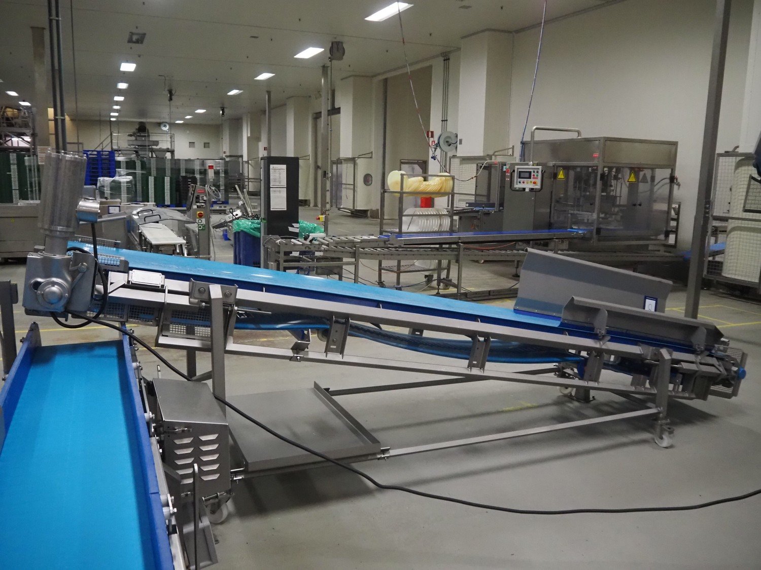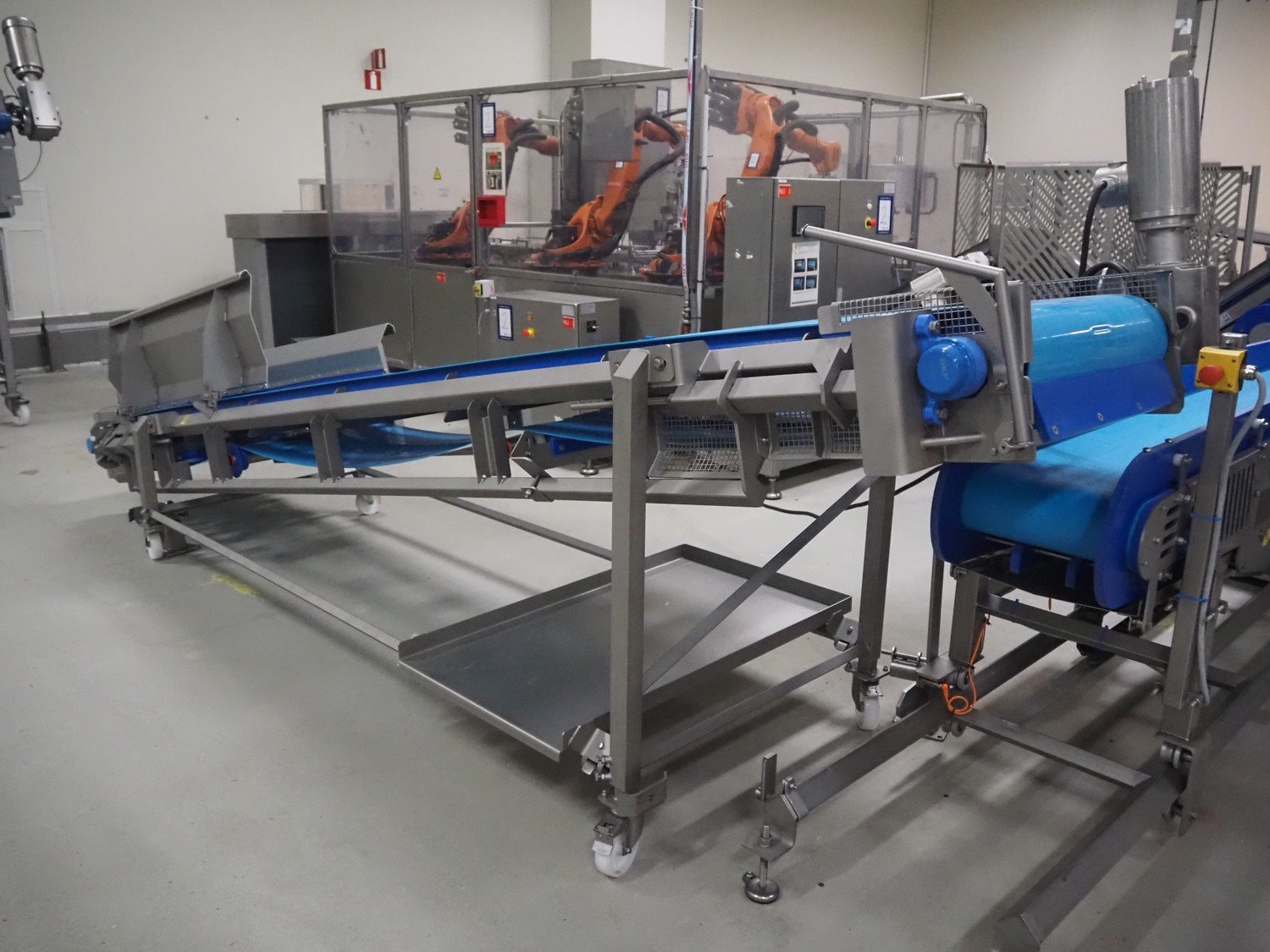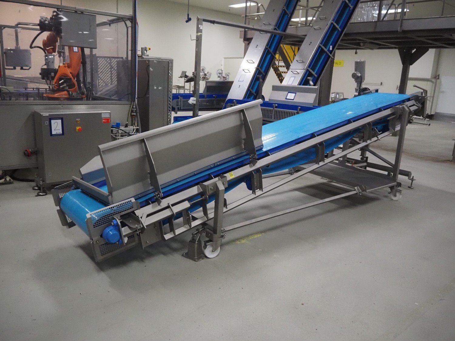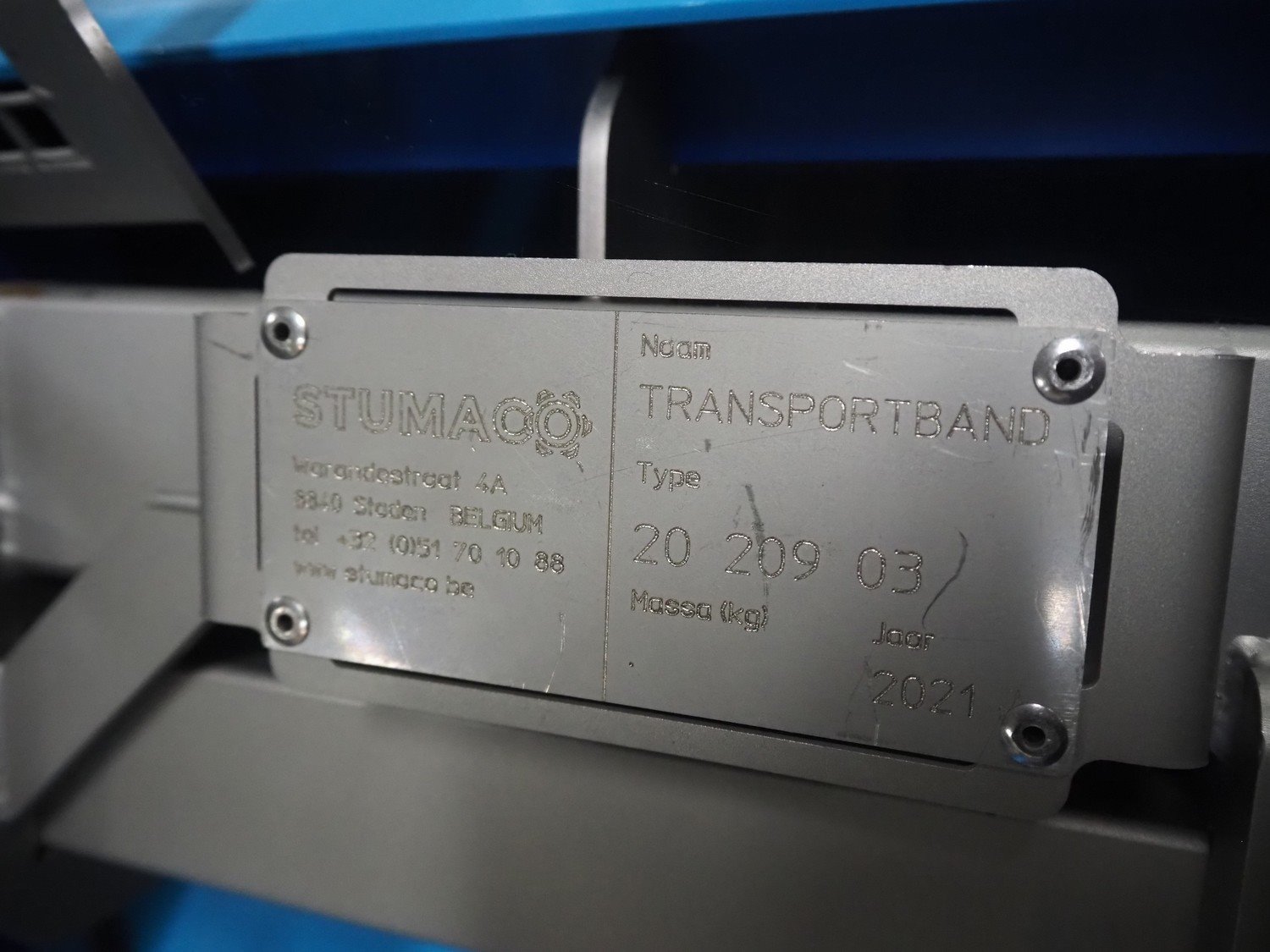 Stumaco mobile elevating belt, type: 20 209 03, year of construction: 2021, plastic belt, belt width: 600 mm, elevating height: 1270 mm, total dimensions: 4500 mm x 1200 mm x 1720 mm.