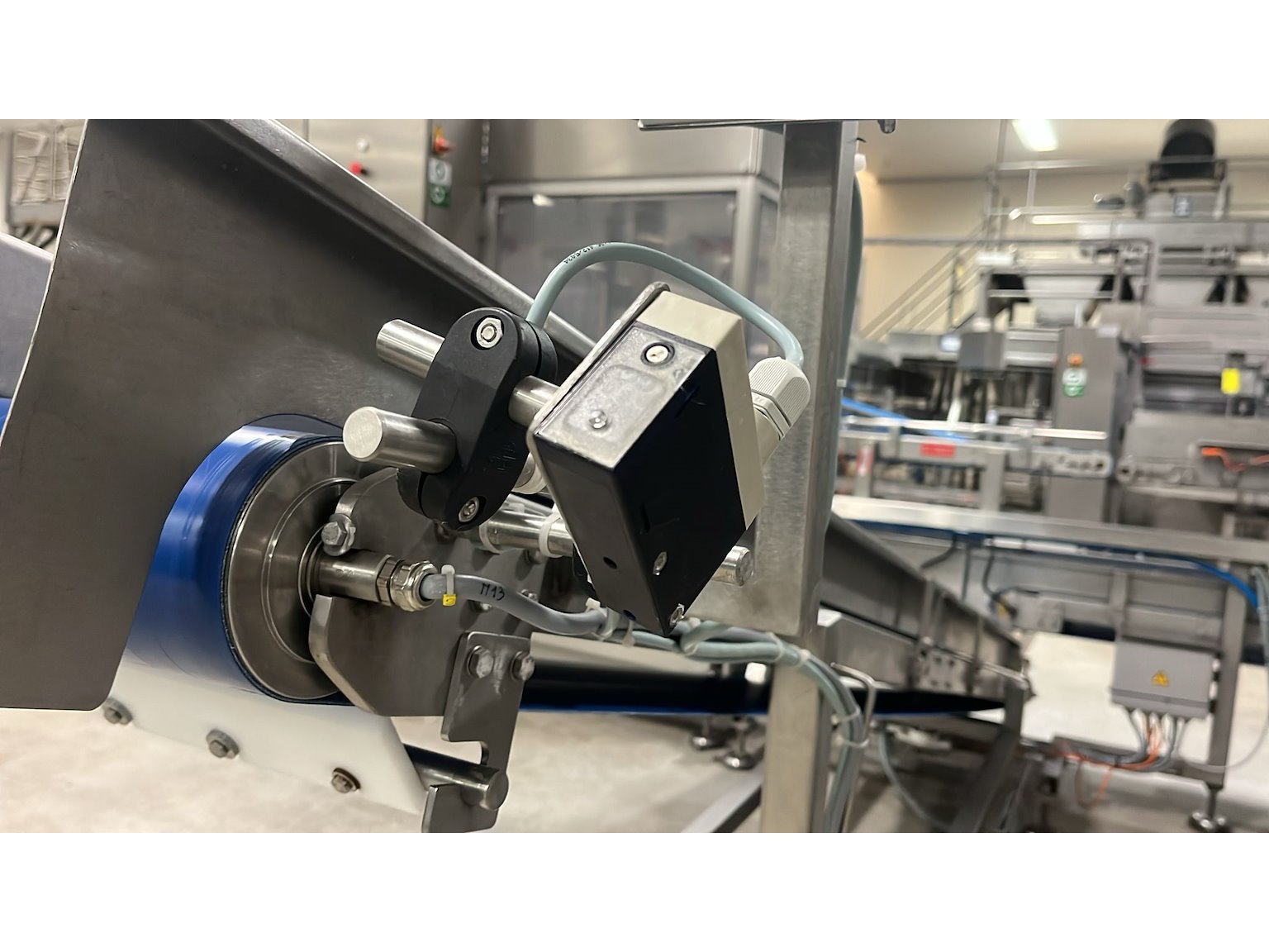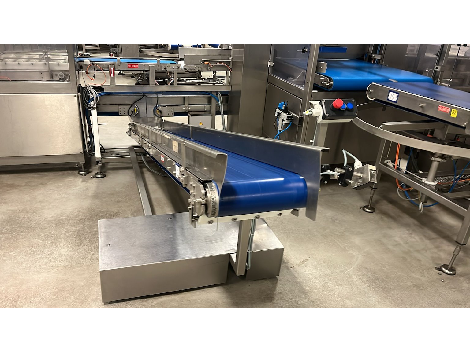 Elevating belt, s/s frame, plastic belt, belt width: 300 mm, elevating height: 1100 mm, total dimensions: 3600 mm x 1100 mm x 1330 mm.