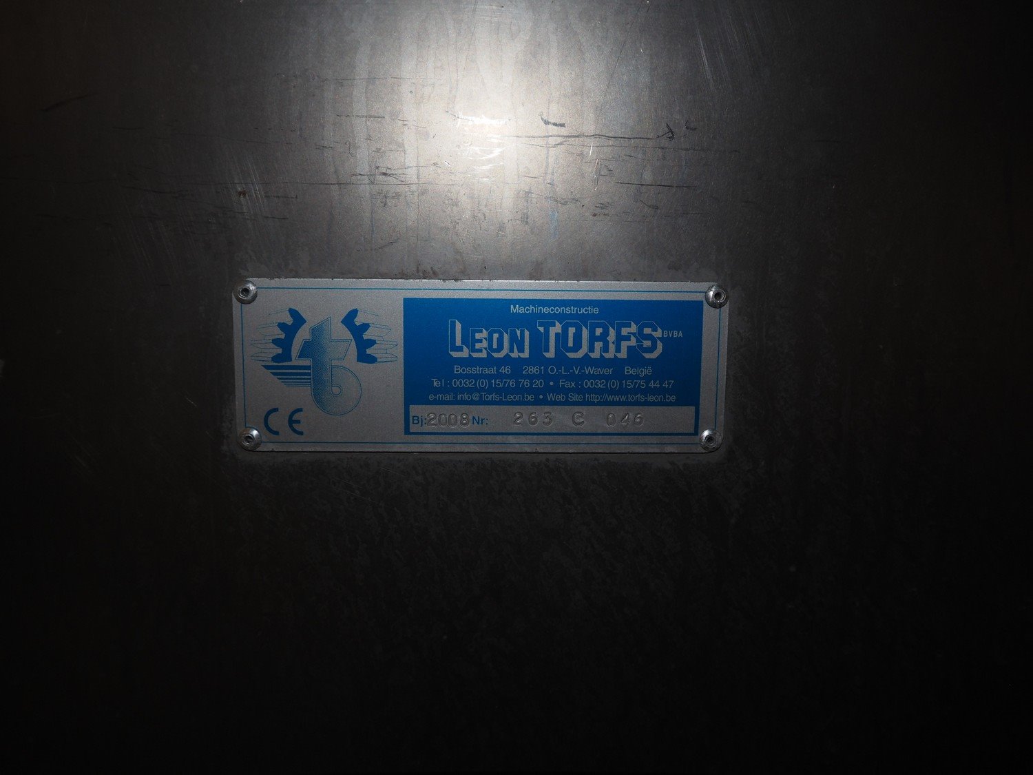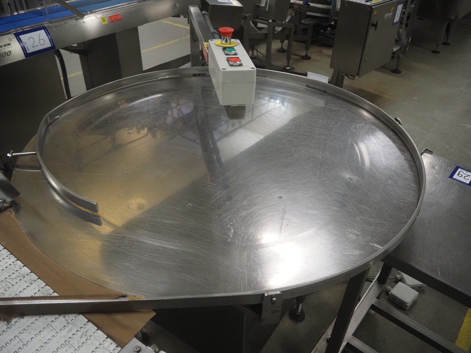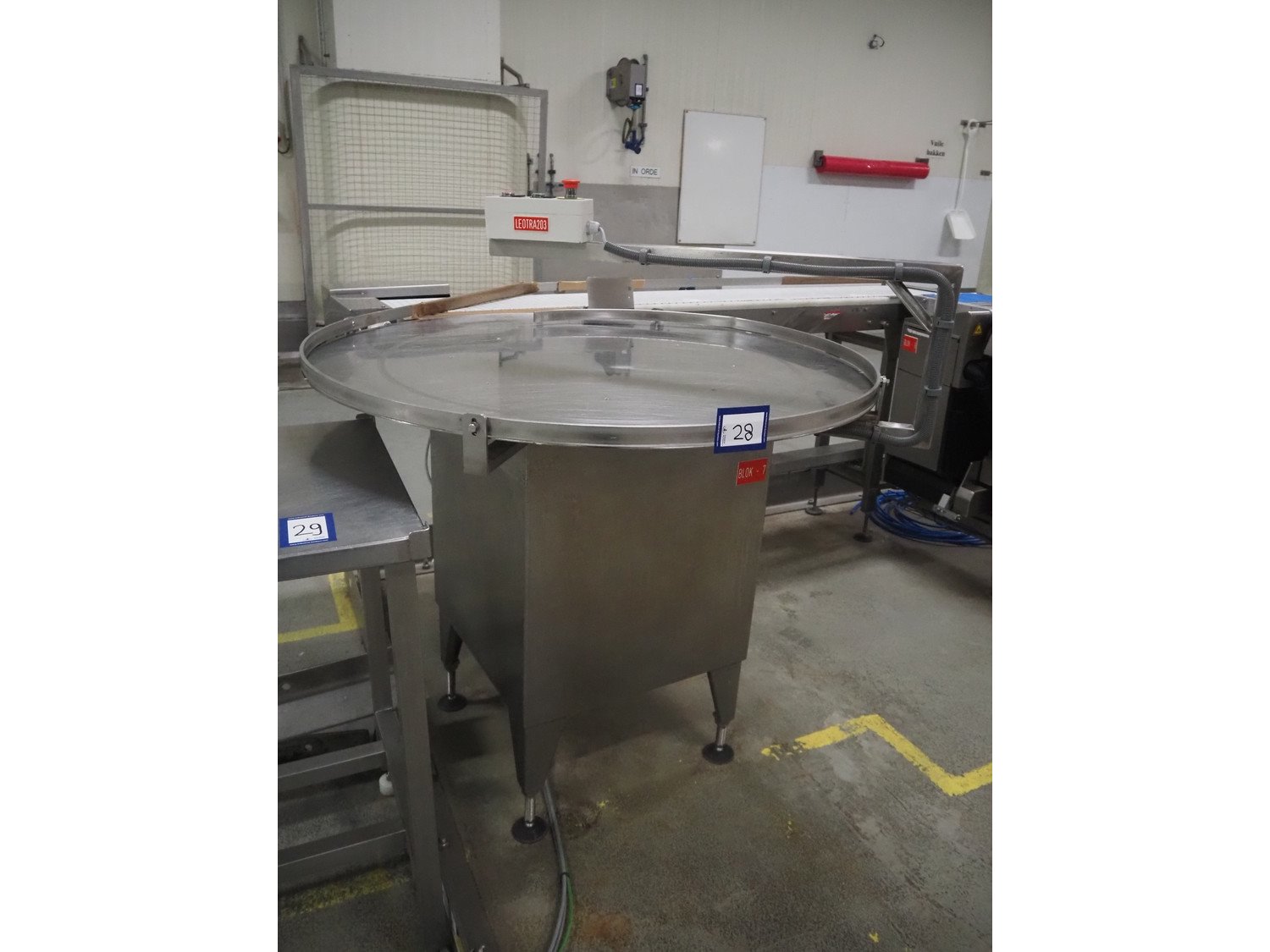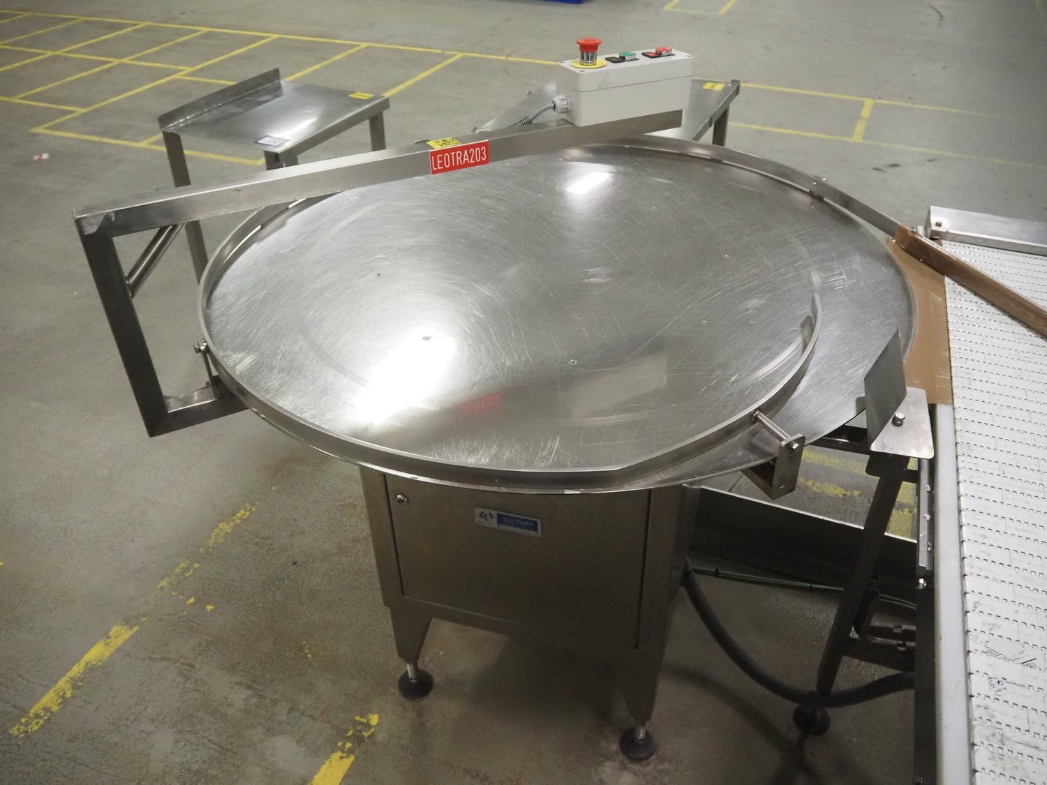 Leon Torfs s/s turning table, number: 263 V 046, year of construction: 2008, diameter table: 1230 mm, total dimensions: 1250 mm x 1250 mm x 1400 mm.