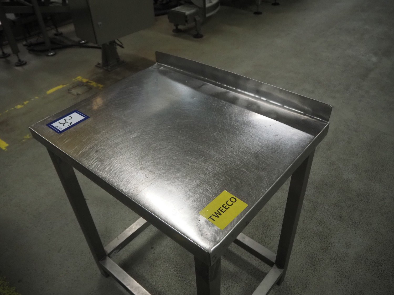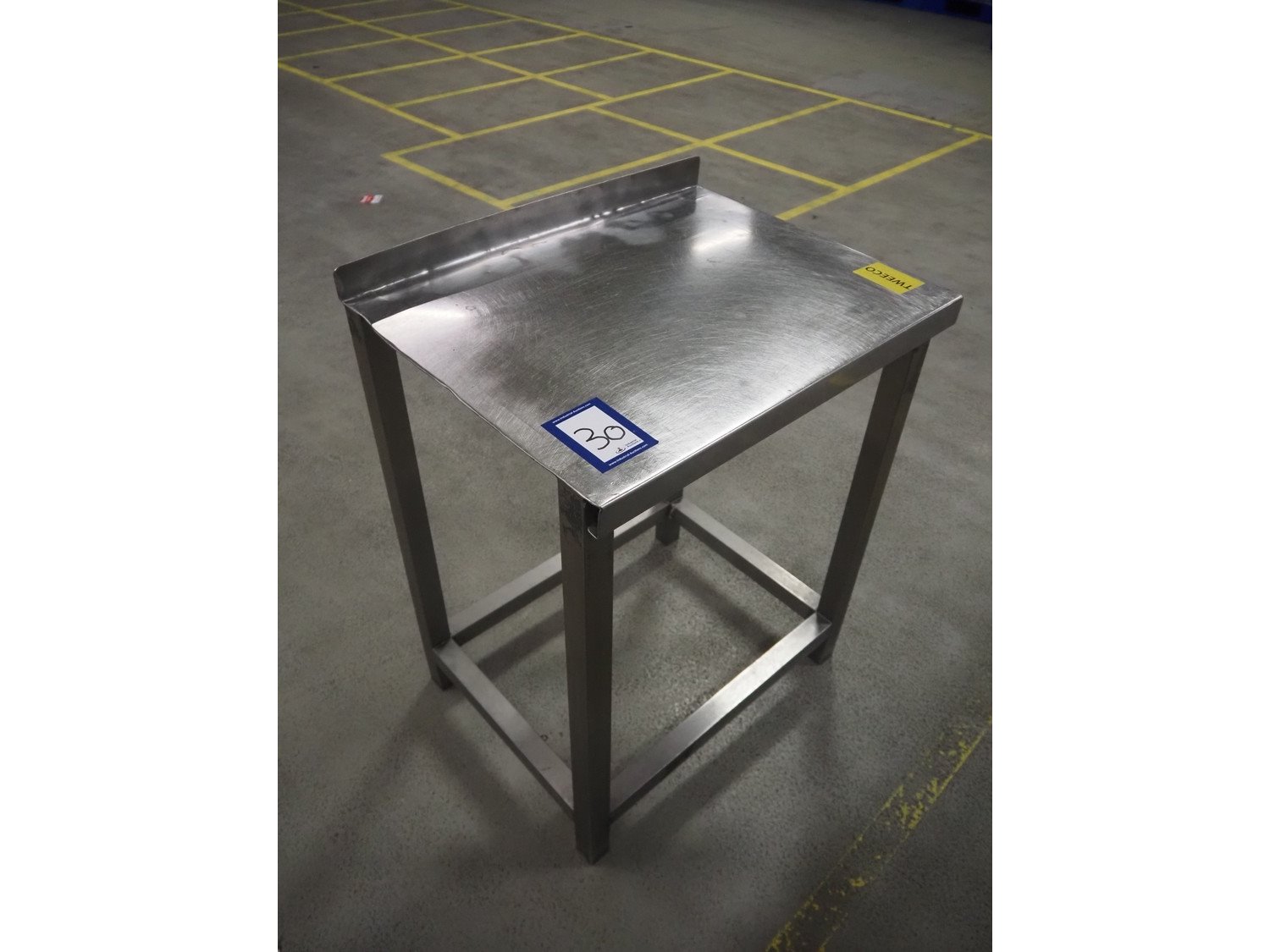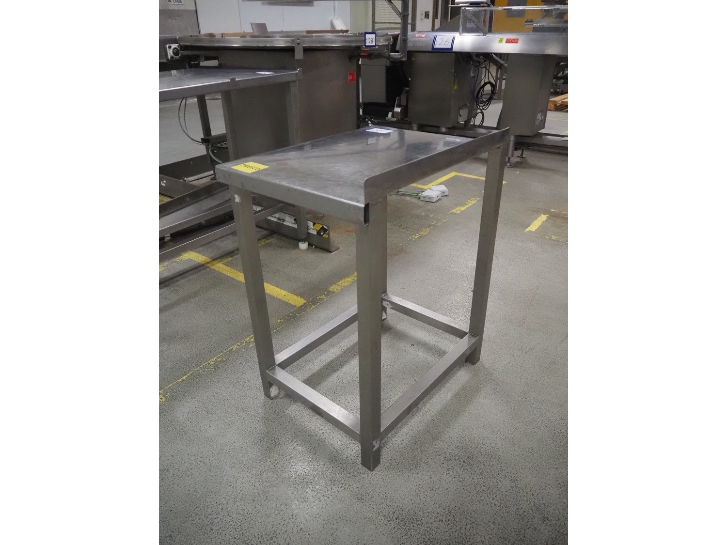 S/s table, dimensions: 650 mm x 500 mm x 840 mm.