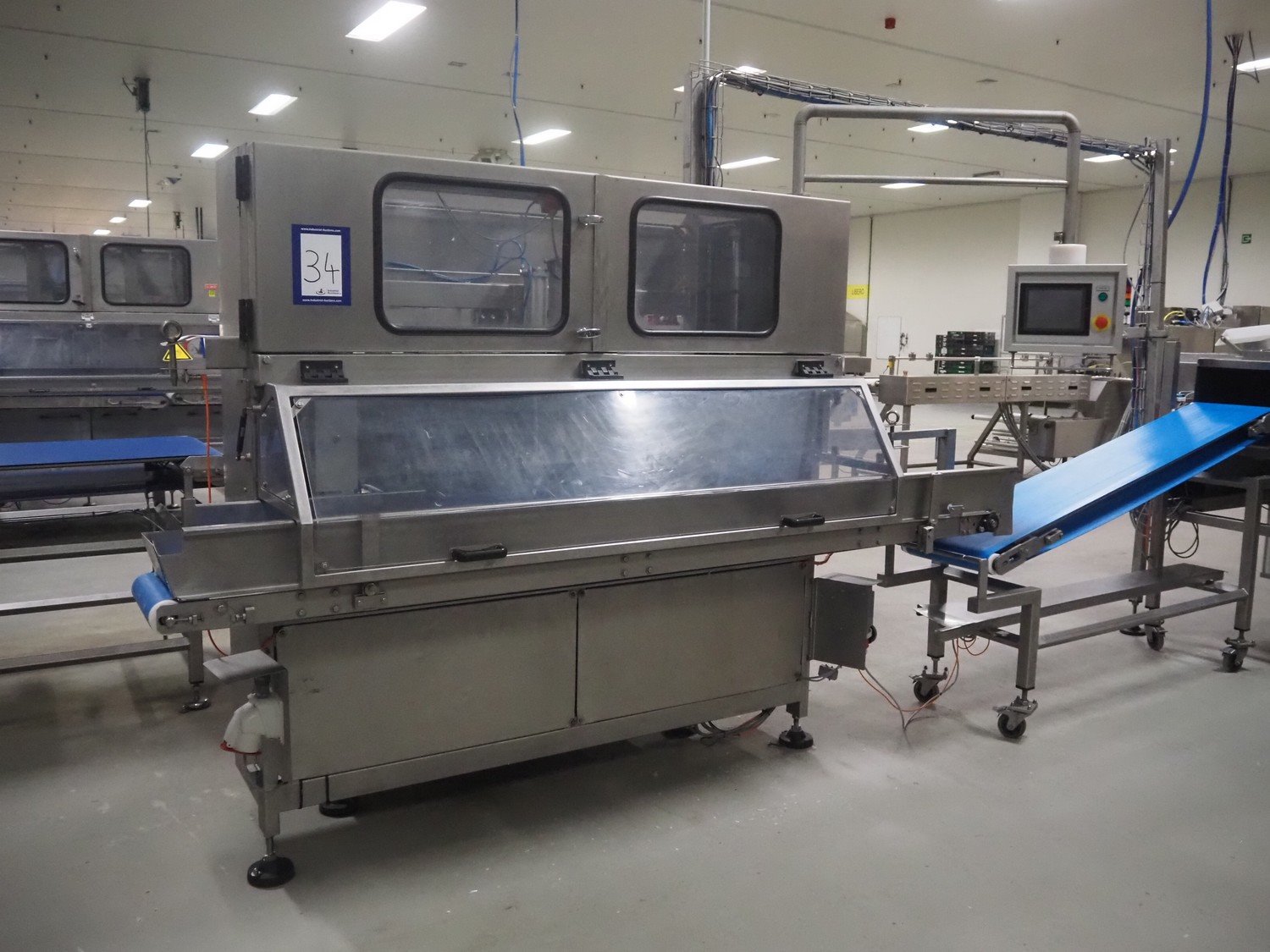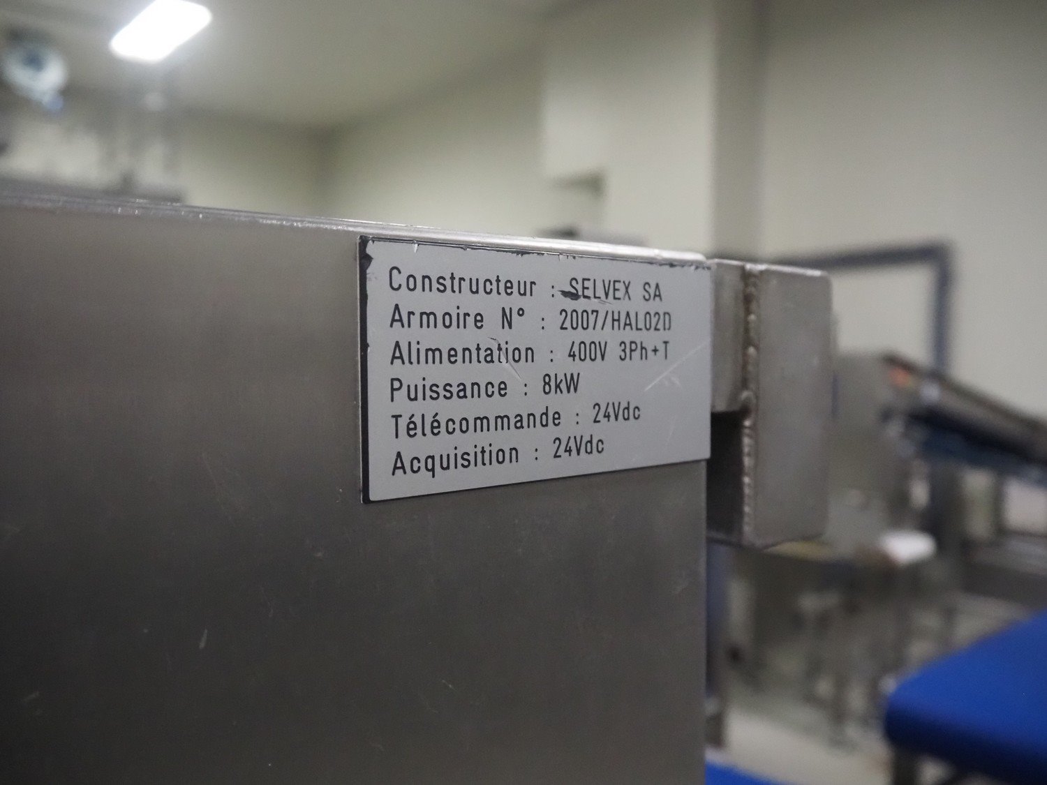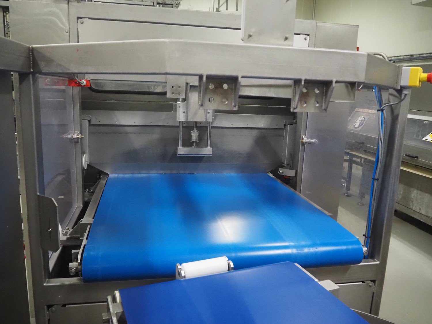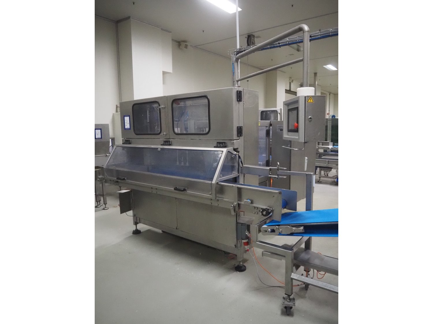 Selvex SA portioning machine, type: Ligne de découpe de fromages, registration: HAL02X, year of construction: 2007, 400 V, 3 Ph, 8 kW, clearance: 1150 mm x 490 mm, plastic belt, belt width: 1000 mm and 300 mm, knive width: 1100 mm, total dimensions: 2850 mm x 2700 mm x 2250 mm.