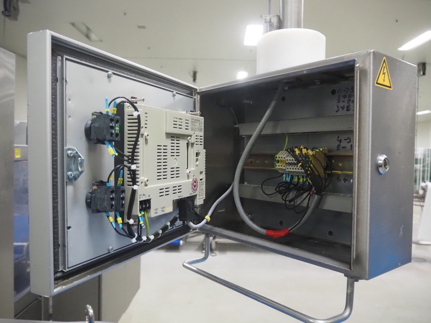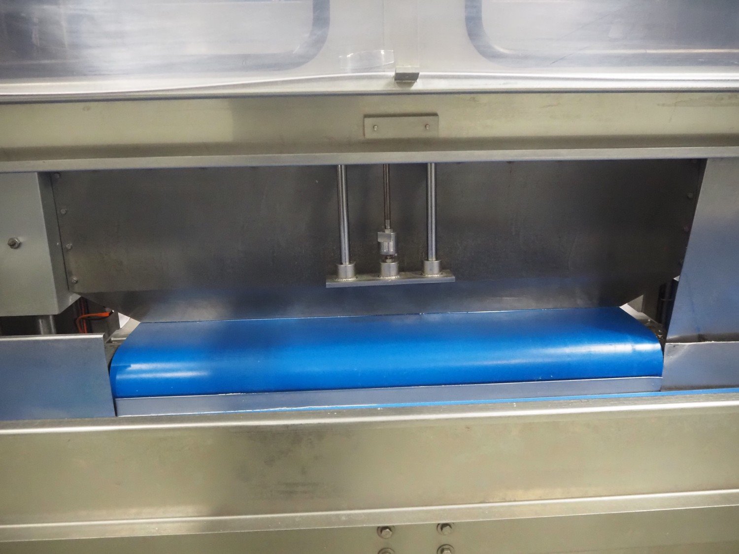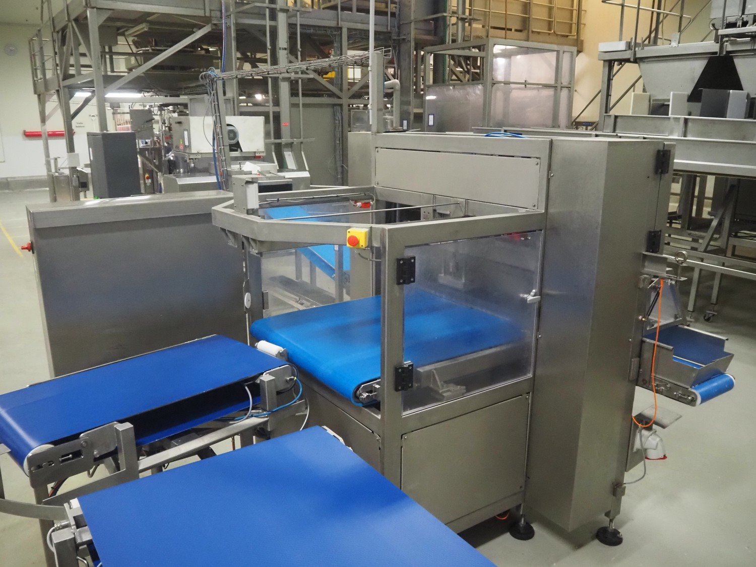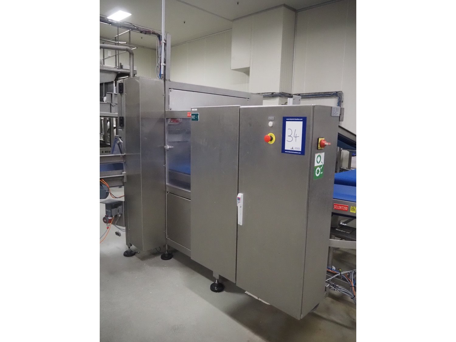 Selvex SA portioning machine, type: Ligne de découpe de fromages, registration: HAL02X, year of construction: 2007, 400 V, 3 Ph, 8 kW, clearance: 1150 mm x 490 mm, plastic belt, belt width: 1000 mm and 300 mm, knive width: 1100 mm, total dimensions: 2850 mm x 2700 mm x 2250 mm.