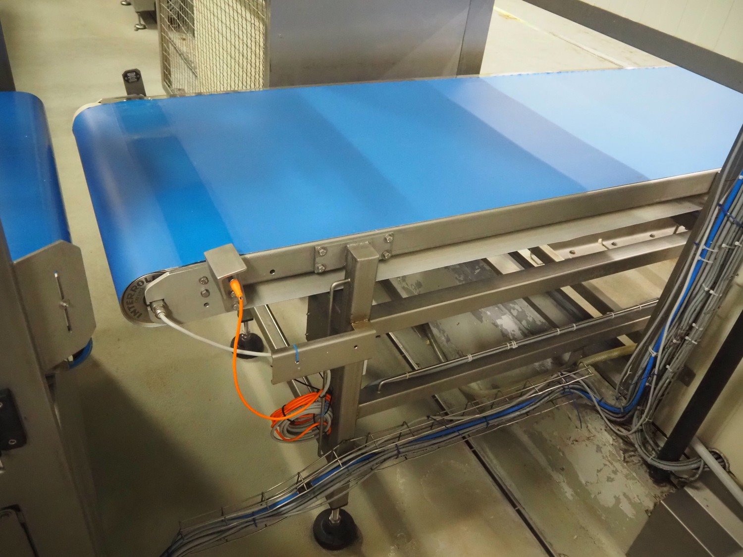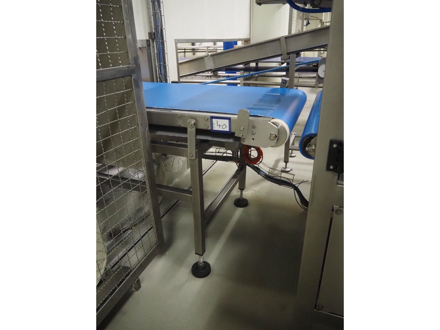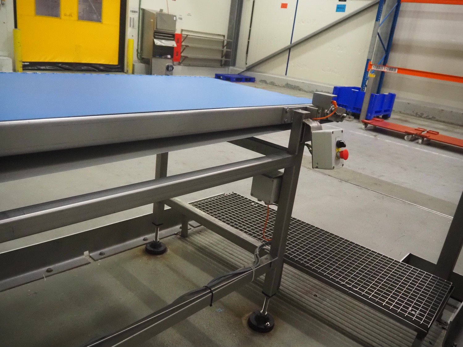 Transport belt, s/s frame, plastic belt, belt width: 780 mm, total dimensions: 3150 mm x 1050 mm x 1070 mm.