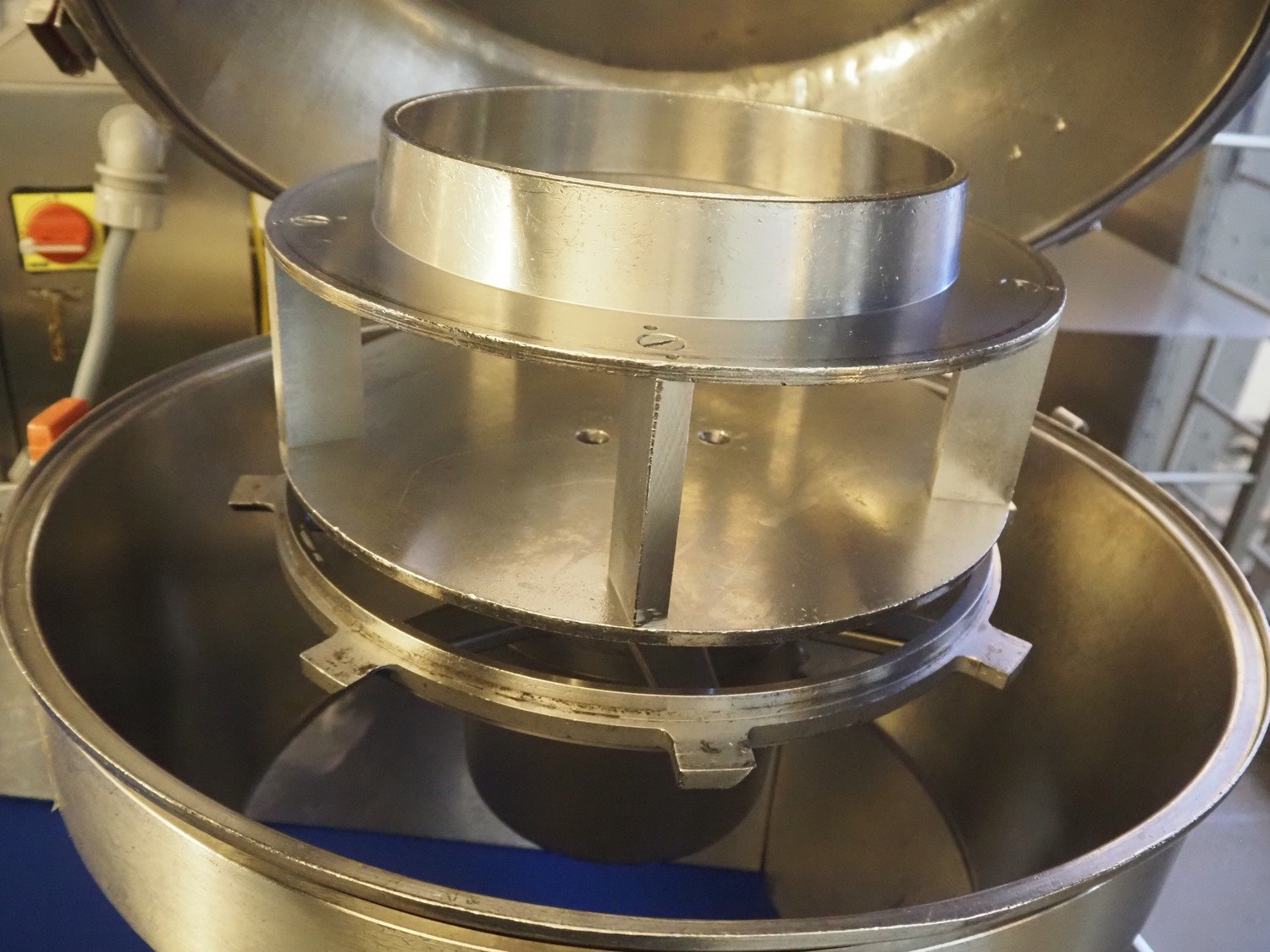 Urschel slicer/shredder, model: CC, serial number: 4601, year of construction: 2005, infeed diameter: 450 mm, knive diameter: 410 mm, knive width: 100 mm, total dimensions: 1550 mm x 1300 mm x 2240 mm. Including 2 extra knives.