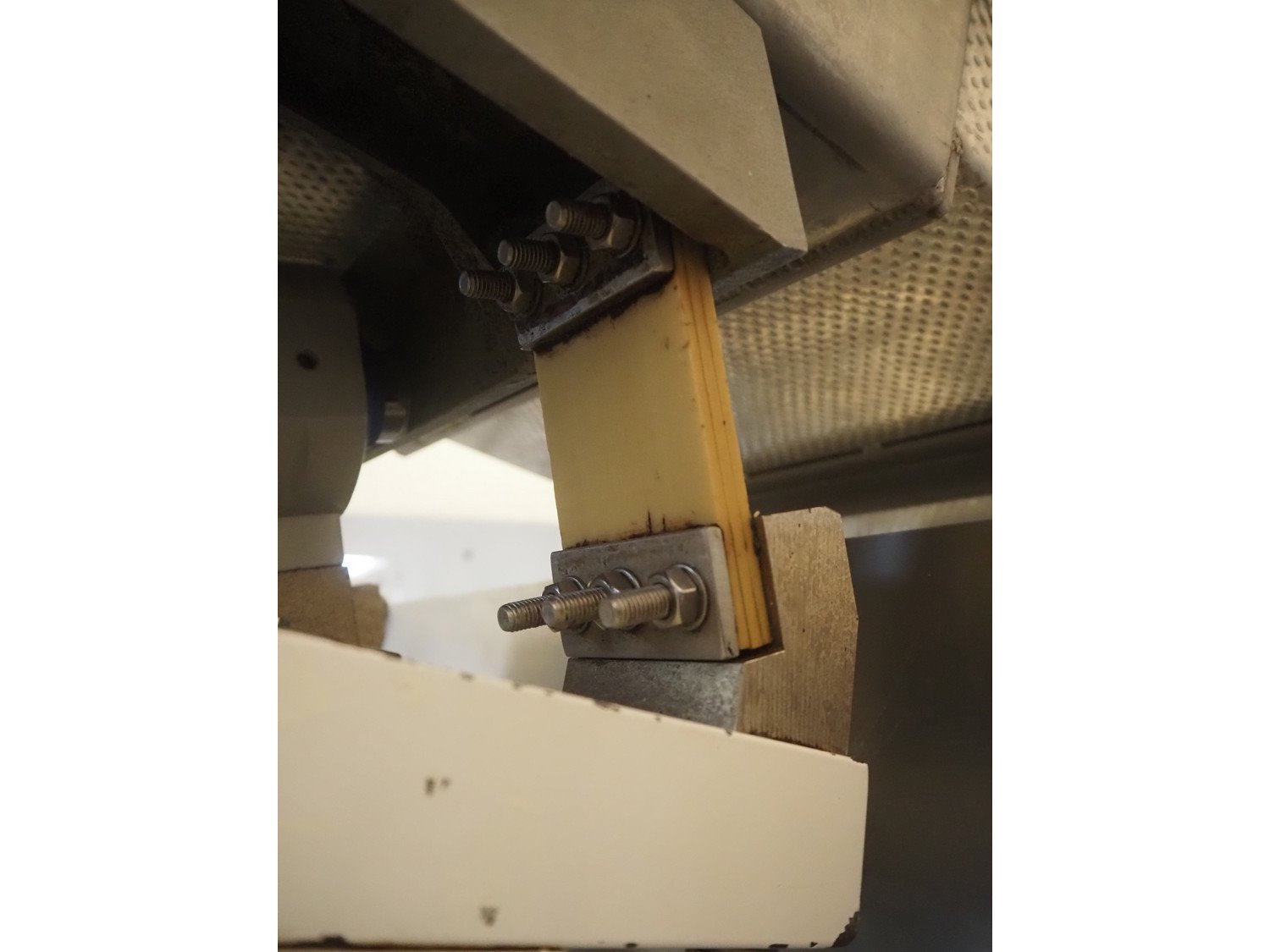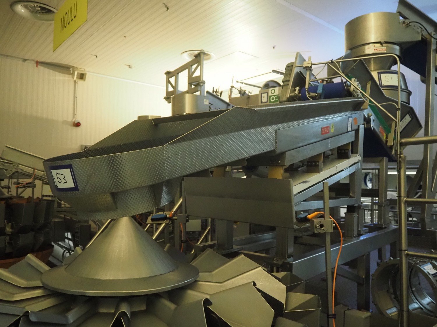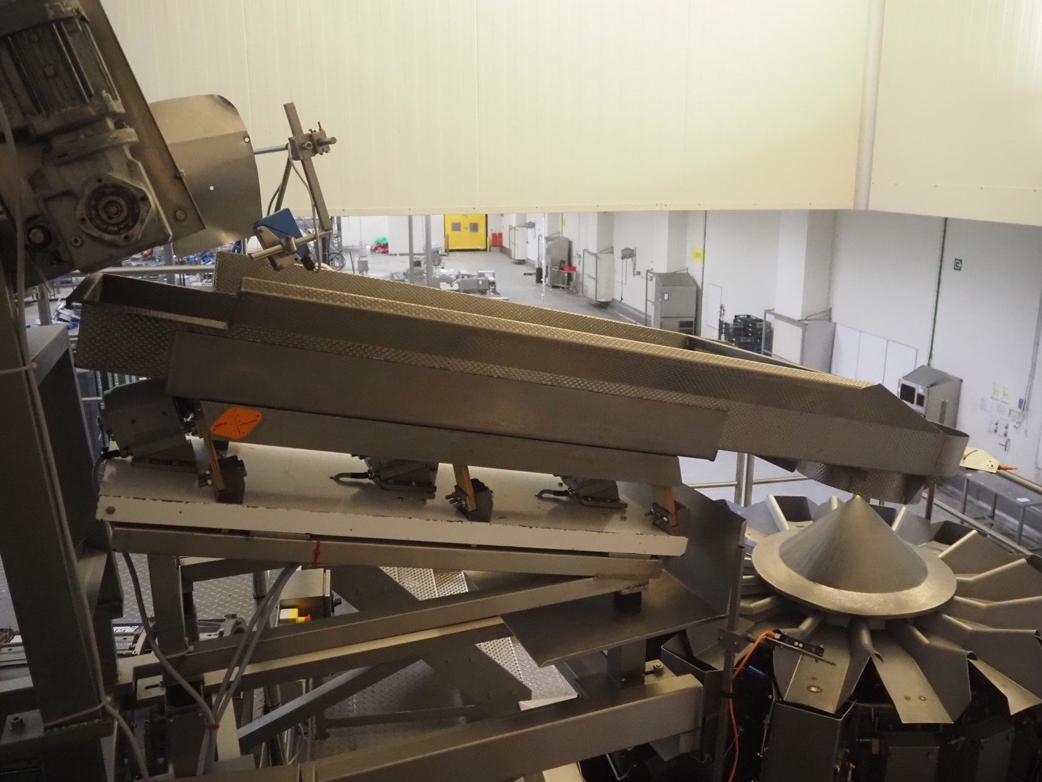 Bodijn vibrating gutter, gutter length: 1900 mm, gutter width: 450 mm, outfeed: Ø 300 mm, total dimensions: 1970 mm x 850 mm x 500 mm.