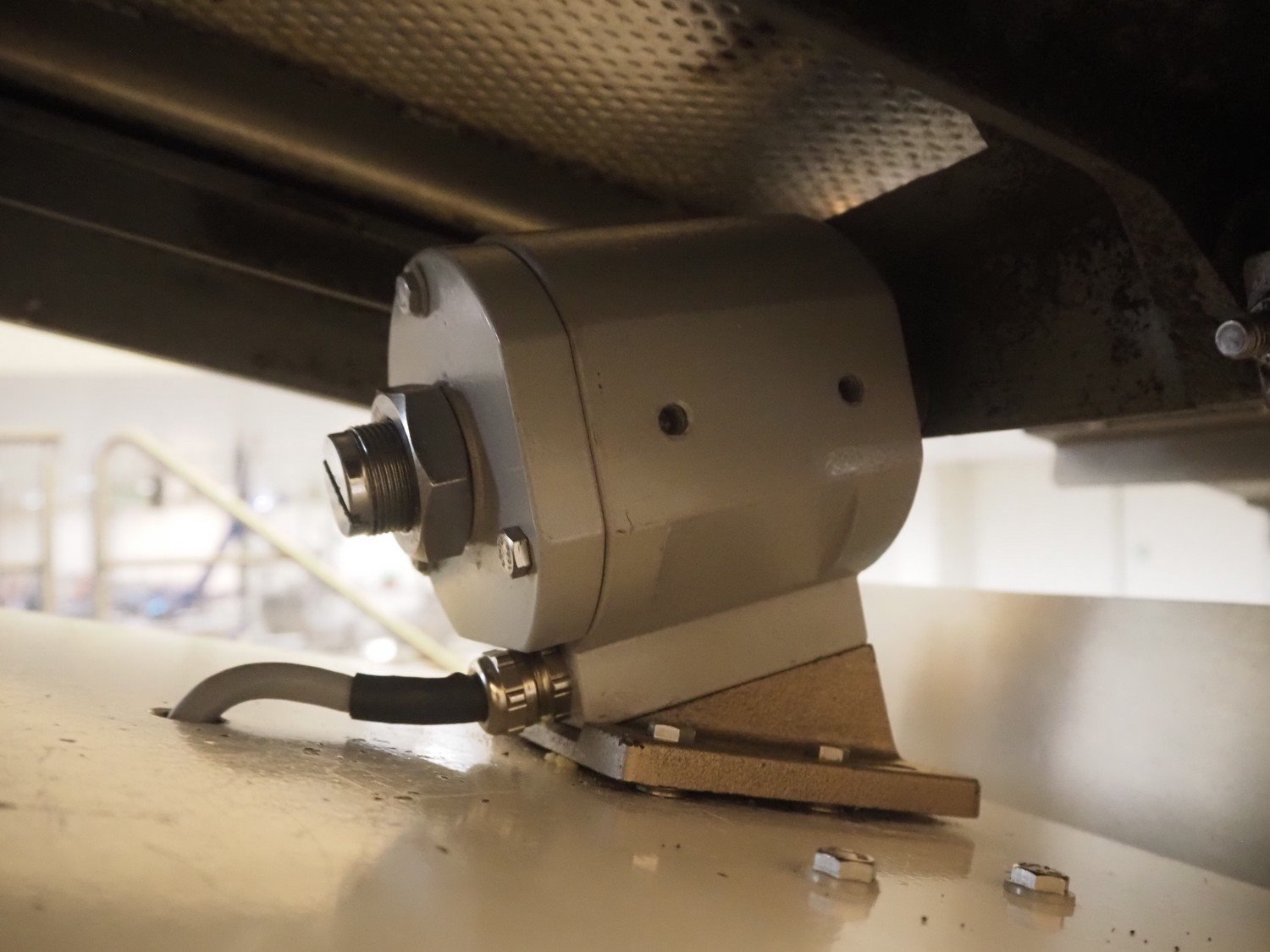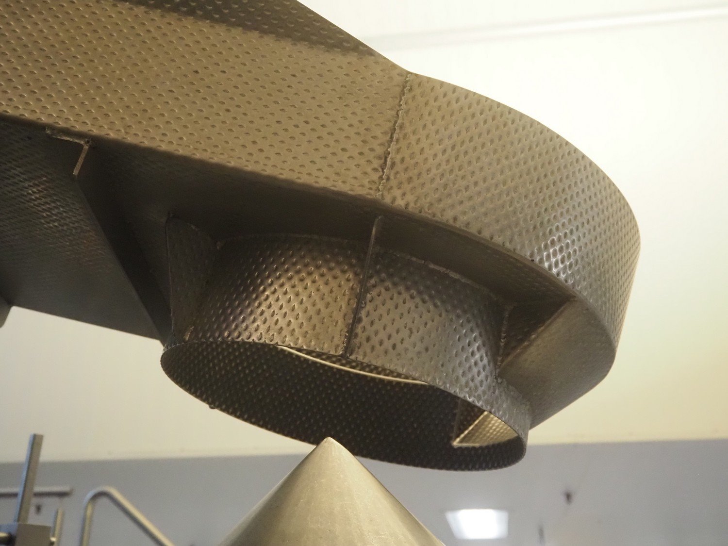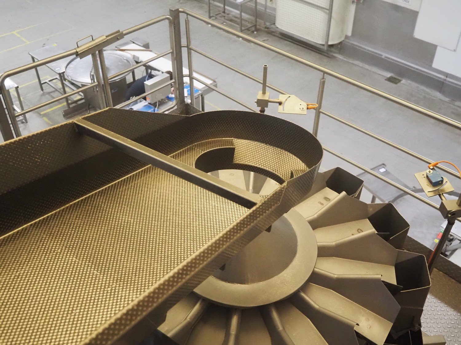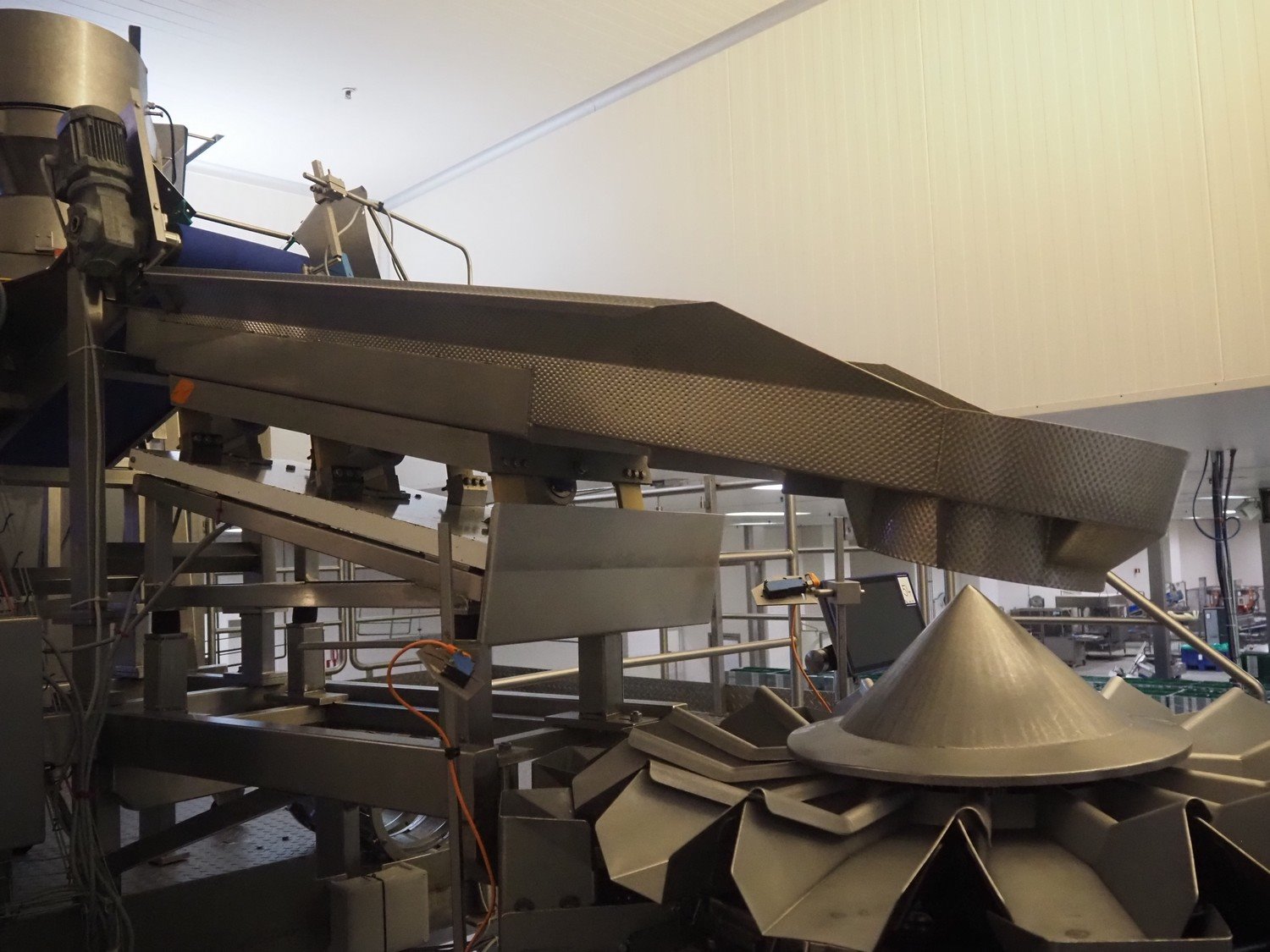 Bodijn vibrating gutter, gutter length: 1900 mm, gutter width: 450 mm, outfeed: Ø 300 mm, total dimensions: 1970 mm x 850 mm x 500 mm.