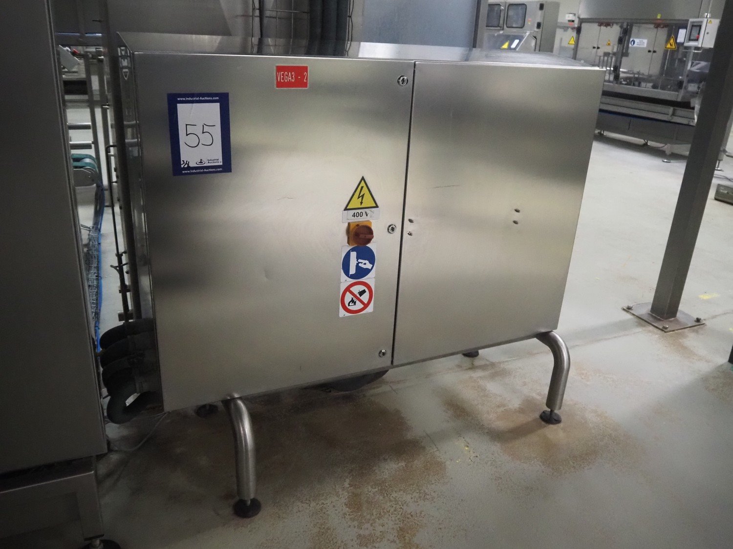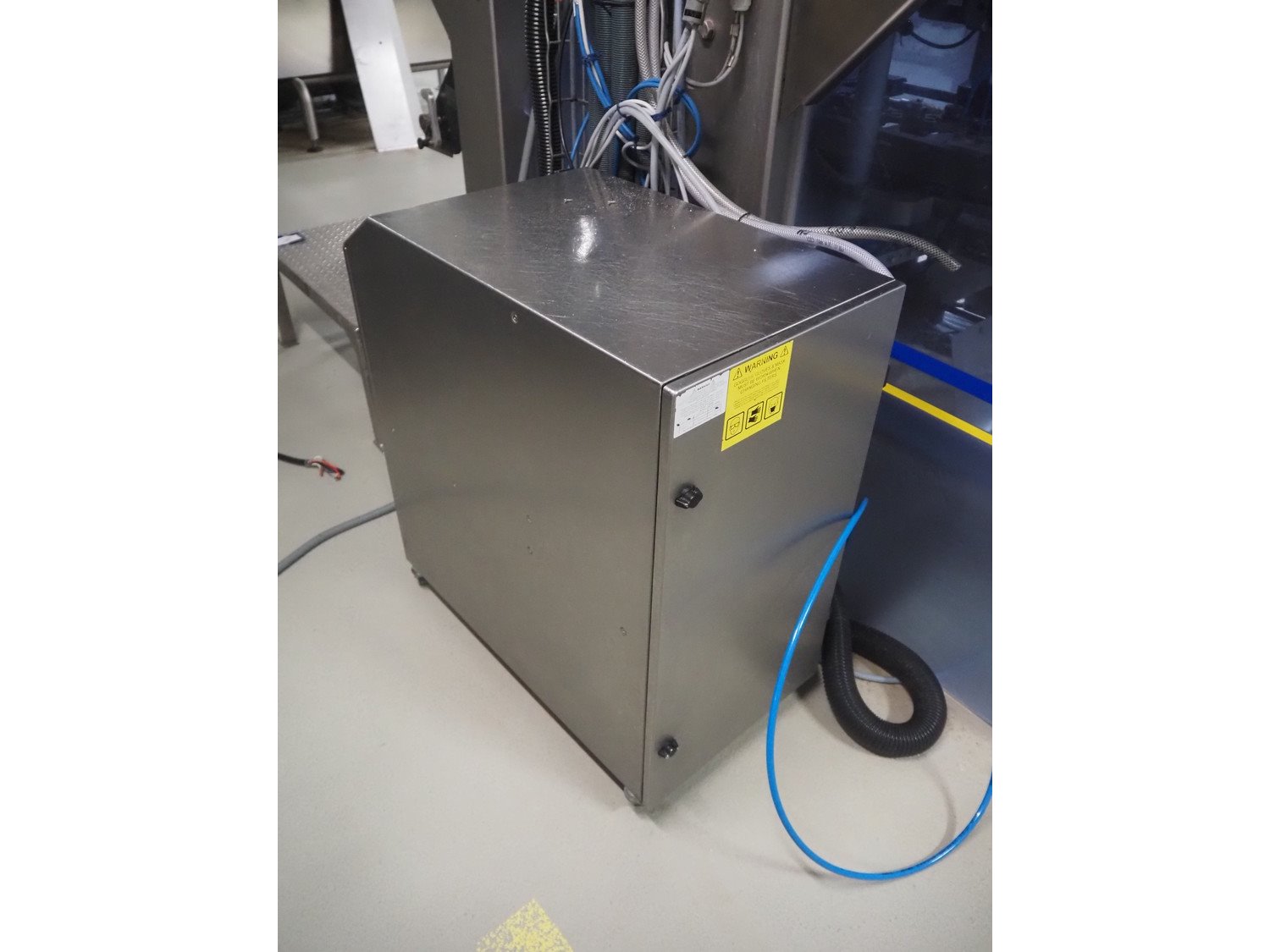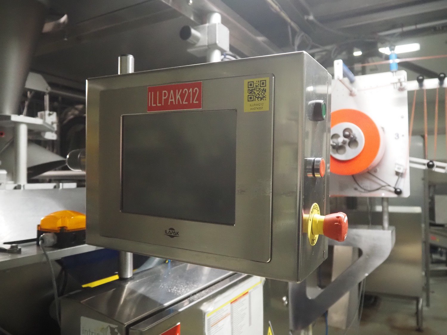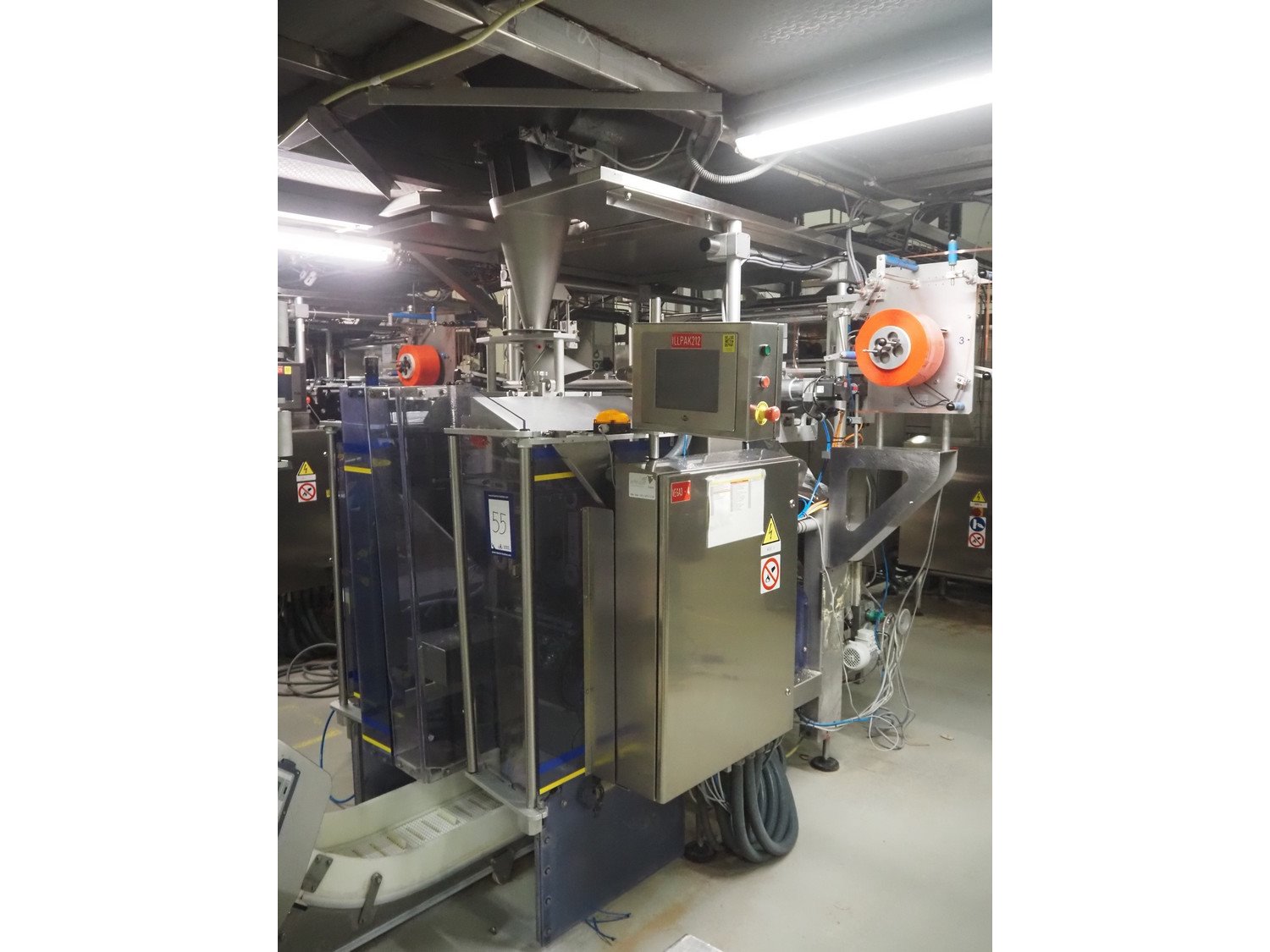Ilapak vertical bag form-, fill-, and seal machine, model: Vegatronic 2000 OF, serial number: 0741812003, year of construction: 2012, 400 V, 3 Ph, 50 Hz, 17 A, filling pipe: Ø 75 mm, vertical seal length: 650 mm, horizontal seal length: 320 mm, film width: 470 mm, total dimensions: 2800 mm x 2500 mm x 2450 mm. Markem laser unit, model: ES400i, serial number: 03/09/ES400i-1120, year of construction: 03/2009, 230 V, 50/60 Hz, 6.20 A, dimensions: 720 mm x 400 mm x 790 mm, s/s switch cabinet: 1450 mm x 600 mm x 1330 mm, 2 extra filling pipes: Ø (2x) 70 mm, 3 extra film holders, film holder width: (3x) 1320 mm.