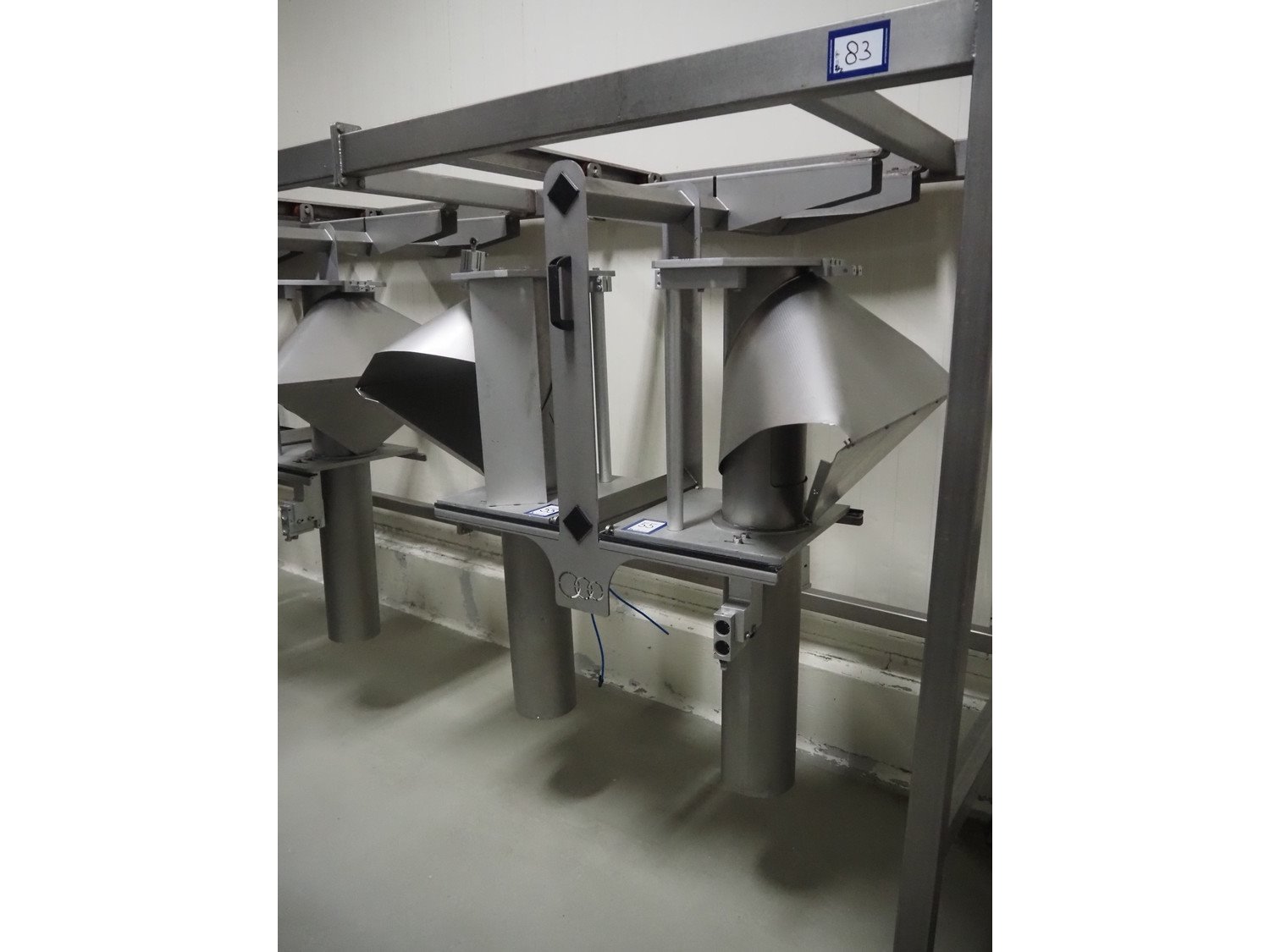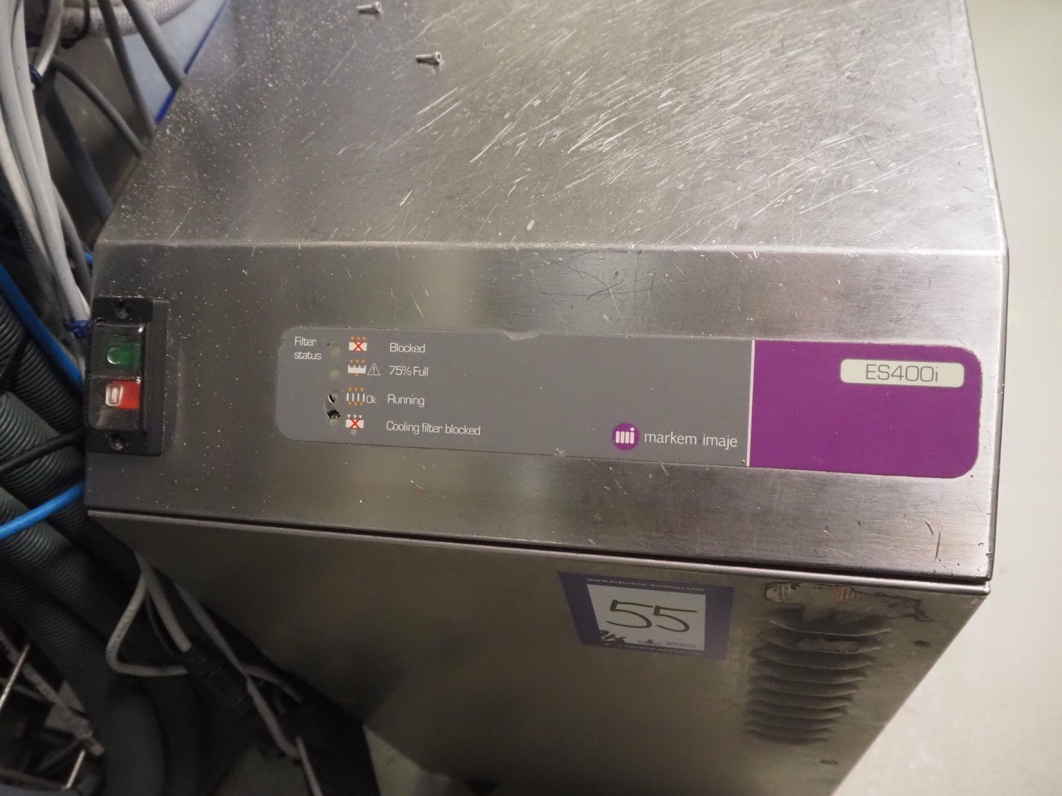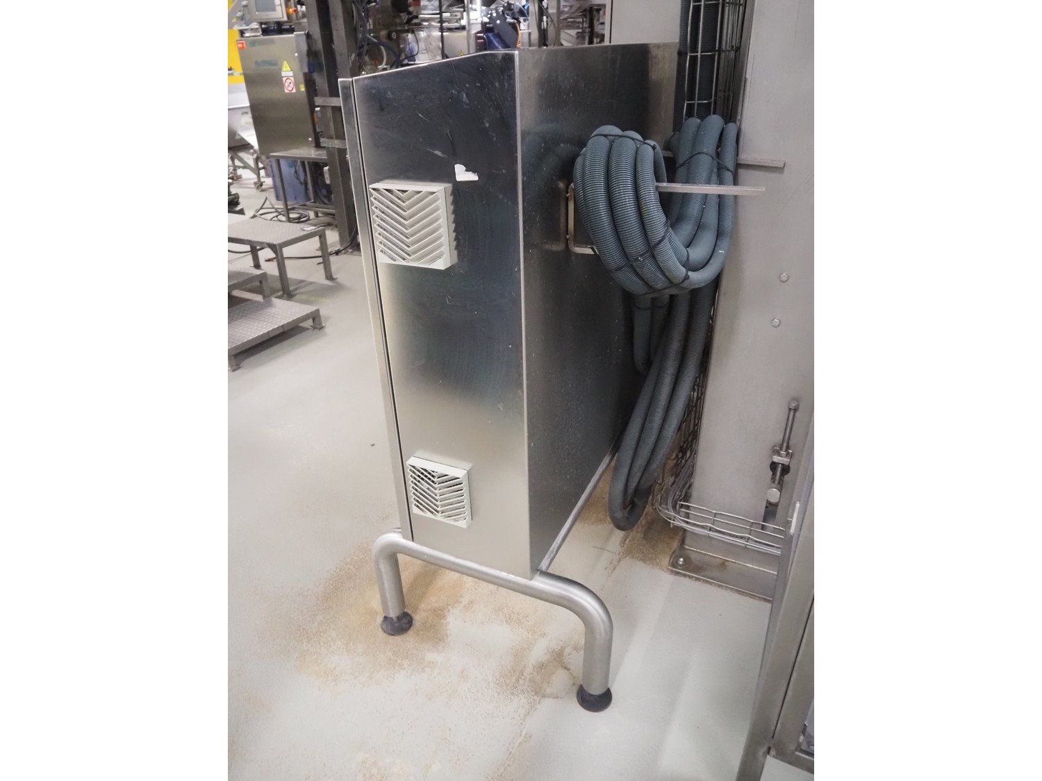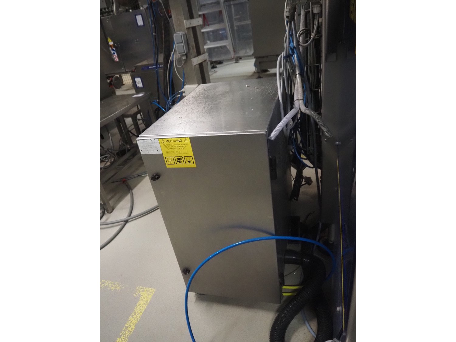 Ilapak vertical bag form-, fill-, and seal machine, model: Vegatronic 2000 OF, serial number: 0741812003, year of construction: 2012, 400 V, 3 Ph, 50 Hz, 17 A, filling pipe: Ø 75 mm, vertical seal length: 650 mm, horizontal seal length: 320 mm, film width: 470 mm, total dimensions: 2800 mm x 2500 mm x 2450 mm. Markem laser unit, model: ES400i, serial number: 03/09/ES400i-1120, year of construction: 03/2009, 230 V, 50/60 Hz, 6.20 A, dimensions: 720 mm x 400 mm x 790 mm, s/s switch cabinet: 1450 mm x 600 mm x 1330 mm, 2 extra filling pipes: Ø (2x) 70 mm, 3 extra film holders, film holder width: (3x) 1320 mm.