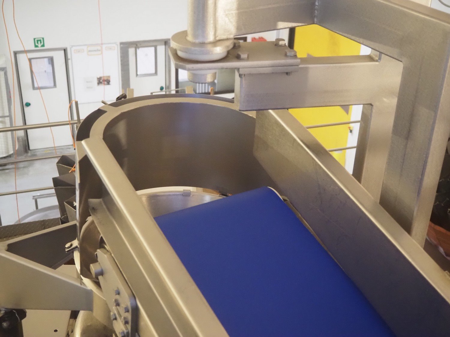 Elevating belt, s/s frame, plastic belt, belt width: 300 mm, clearance bunker: 830 mm x 690 mm, total dimensions: 2000 mm x 700 mm x 1050 mm.