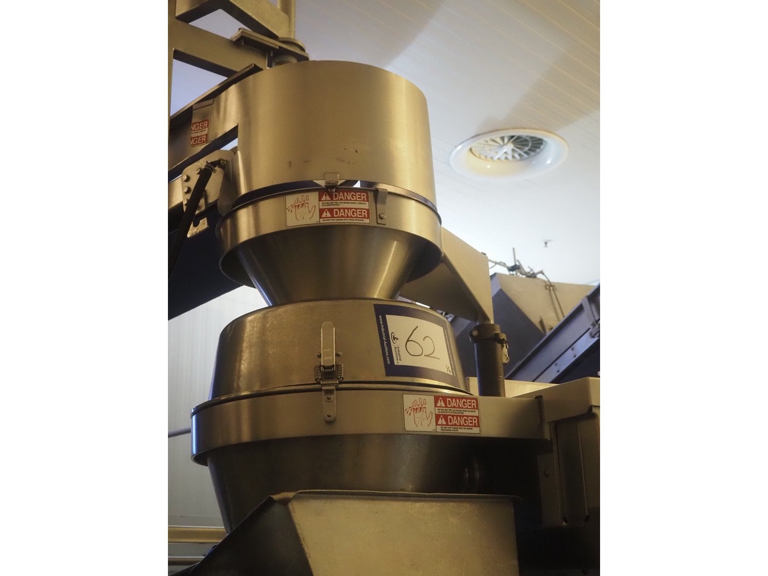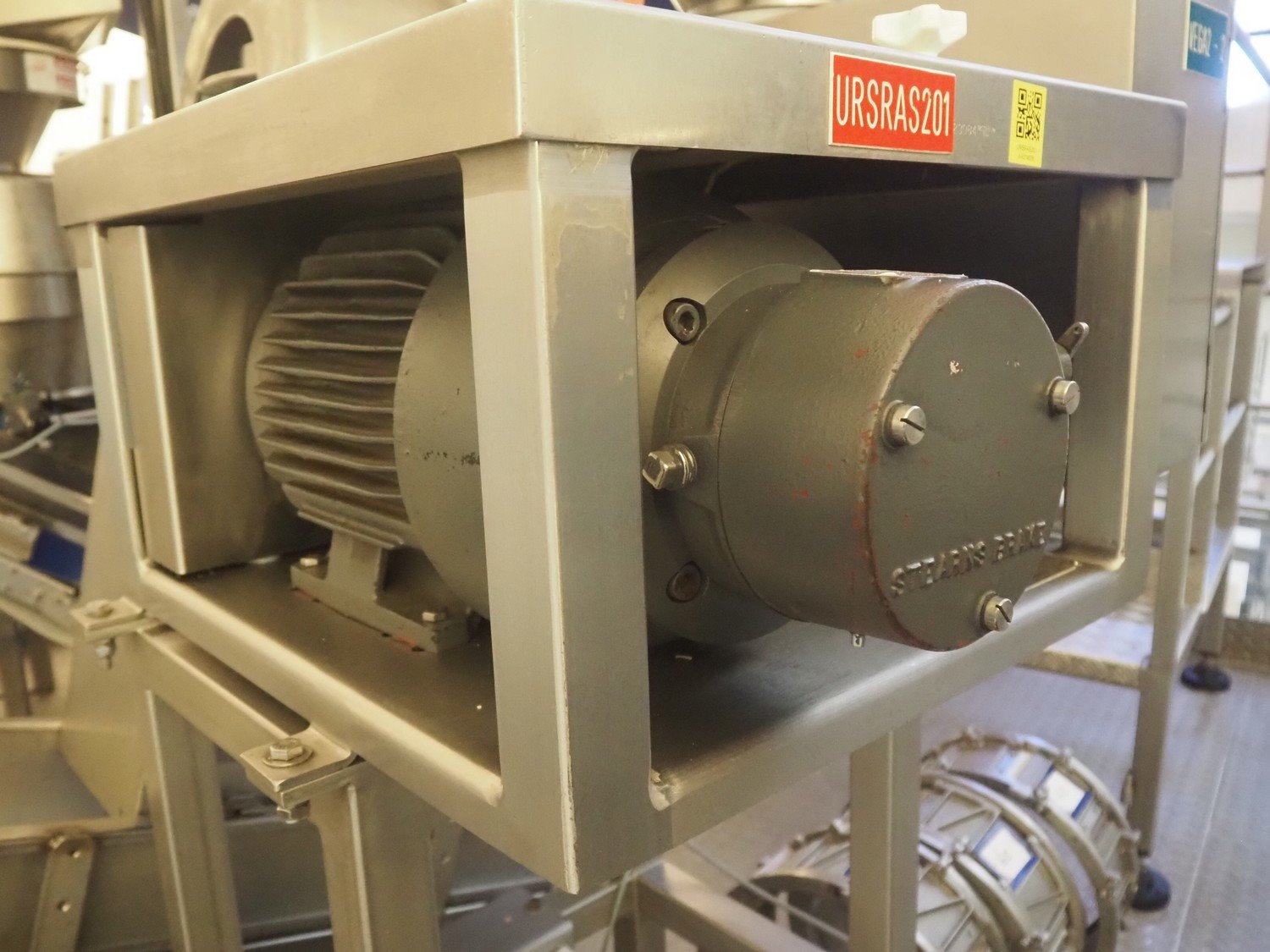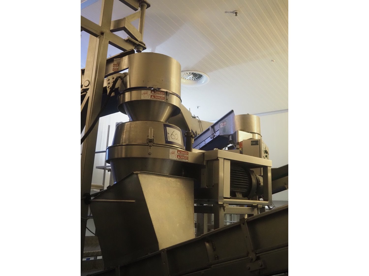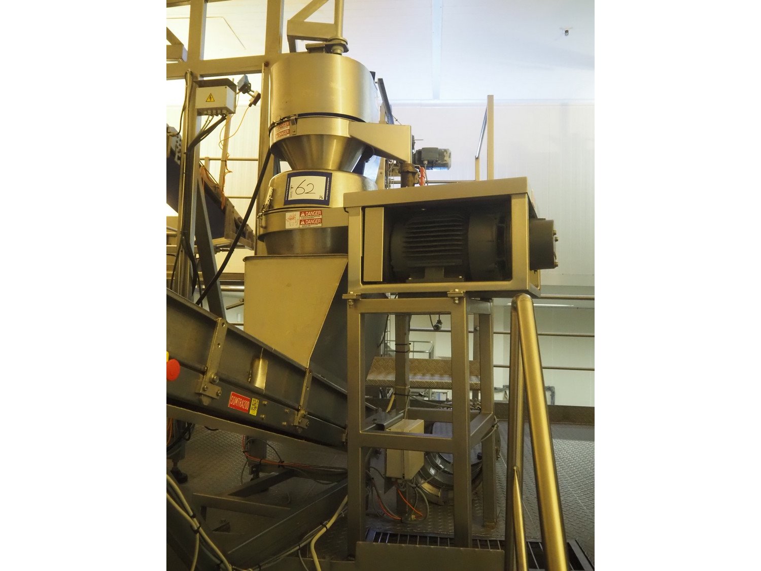 Urschel slicer/shredder, model: CC, serial number: 5003, year of construction: 2007, infeed diameter: 450 mm, knive diameter: 410 mm, knive width: 100 mm, total dimensions: 1550 mm x 1300 mm x 2240 mm. Including 2 extra knives.