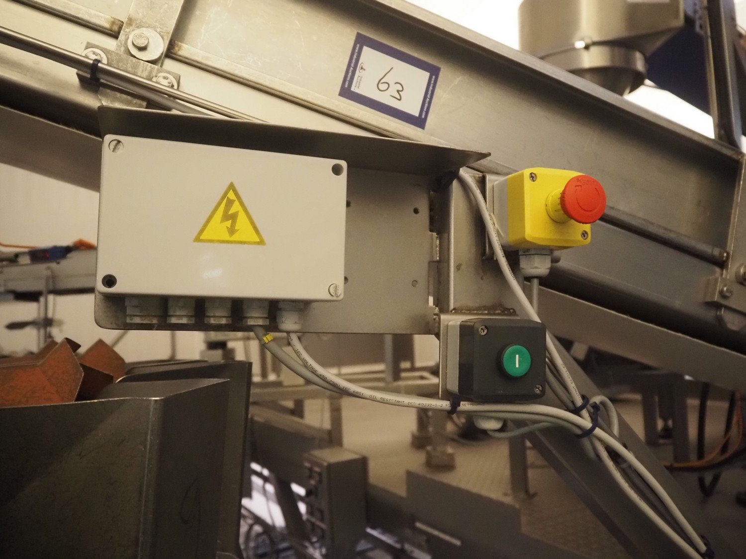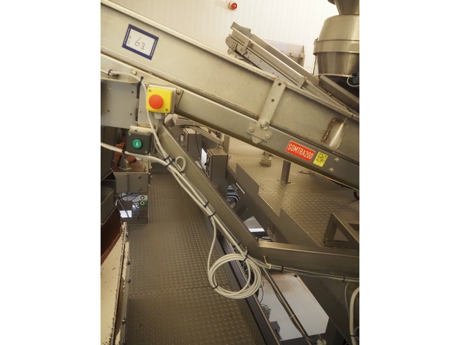 Elevating belt, s/s frame, plastic belt, belt width: 320 mm, clearance bunker: 600 mm x 470 mm, elevating height: 800 mm, total dimensions: 2500 mm x 600 mm x 1180 mm.