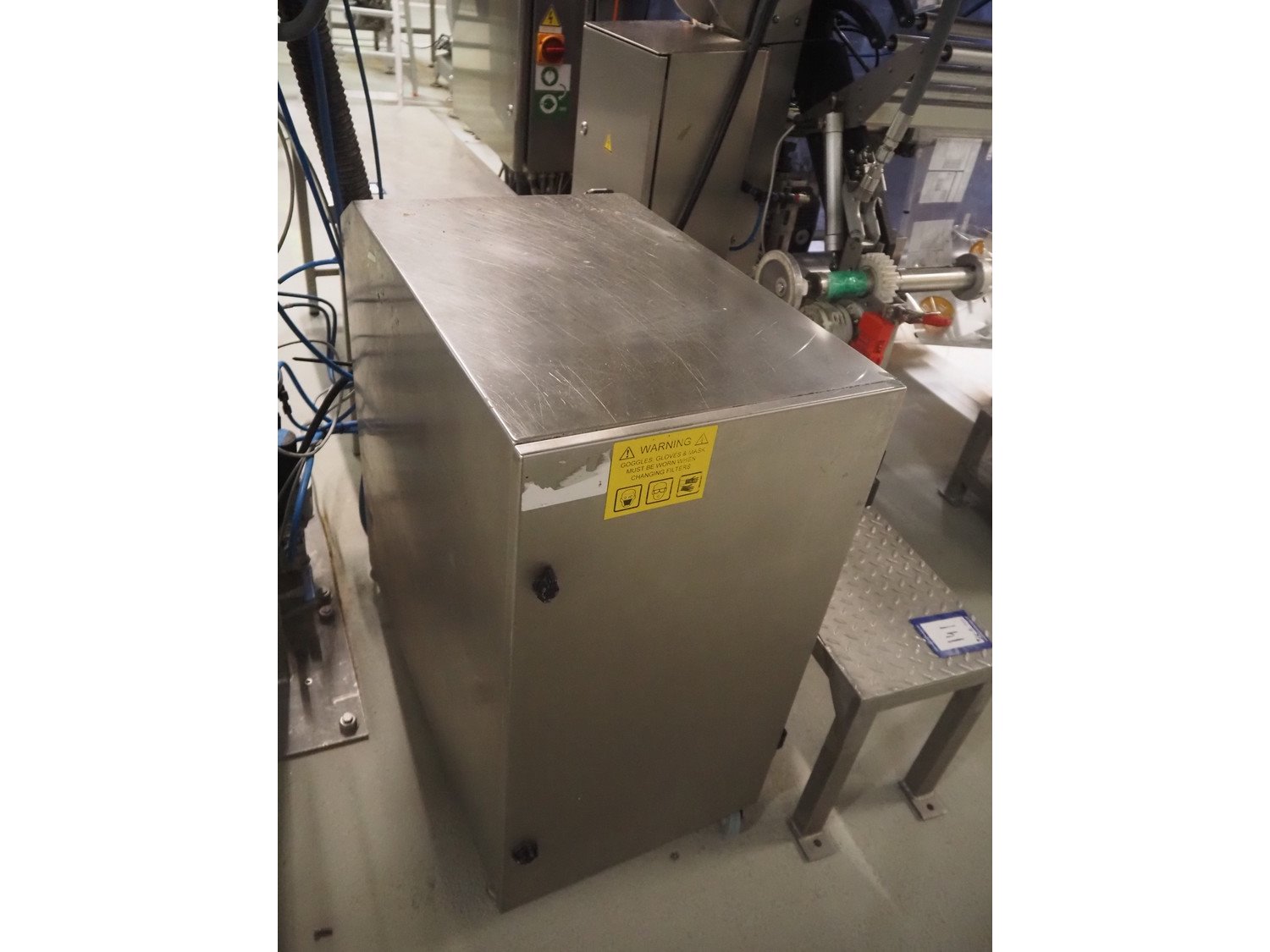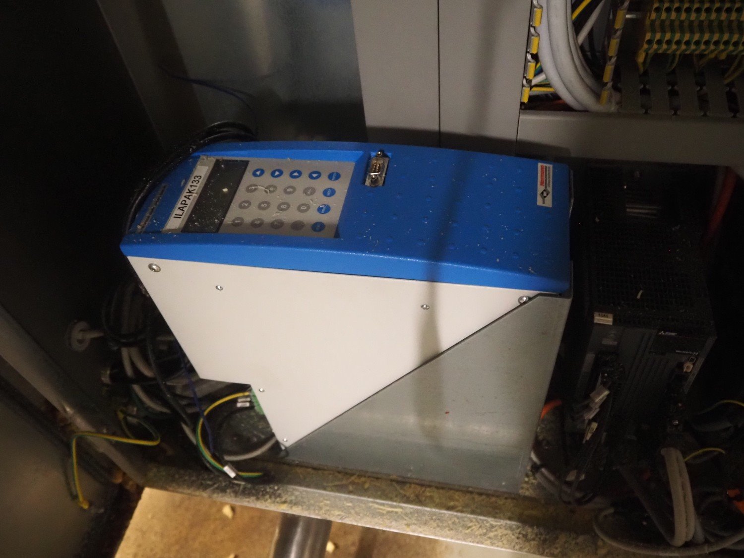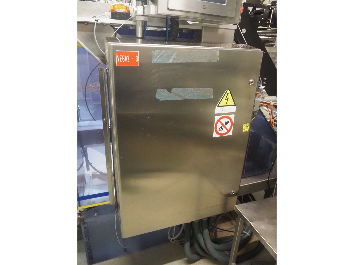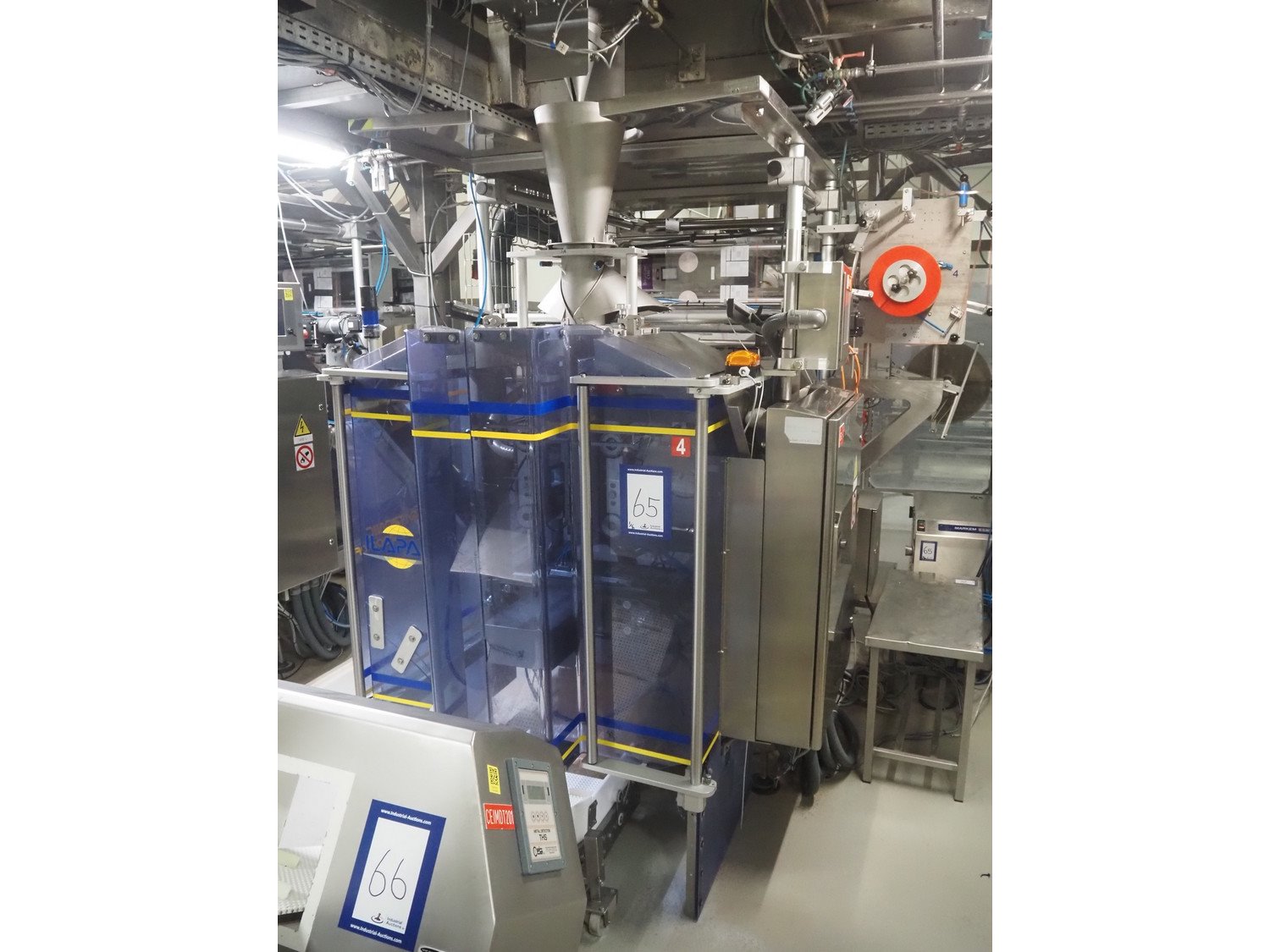 Ilapak vertical bag form-, fill-, and seal machine, model: Vegatronic 2000 OF, serial number: 0741812004, 400 V, 3 Ph, 50 Hz, 17 A, vertical seal length: 650 mm, horizontal seal length: 320 mm, filling pipe: Ø 130 mm, film width: 480 mm, total dimensions: 2700 mm x 2350 mm x 2450 mm, Markem laser unit, model: ES400i, serial number: ES400i-521 Issue 2, year of construction: 2006 03, 220/240 V, 1 Ph, 50/60 Hz, dimensions: 700 mm x 400 mm x 770 mm, switch cabinet: 1450 mm x 600 mm x 1330 mm, 2 extra filling pipes: Ø 80 mm and Ø 170 mm, film holders width: (3x) 1320 mm.