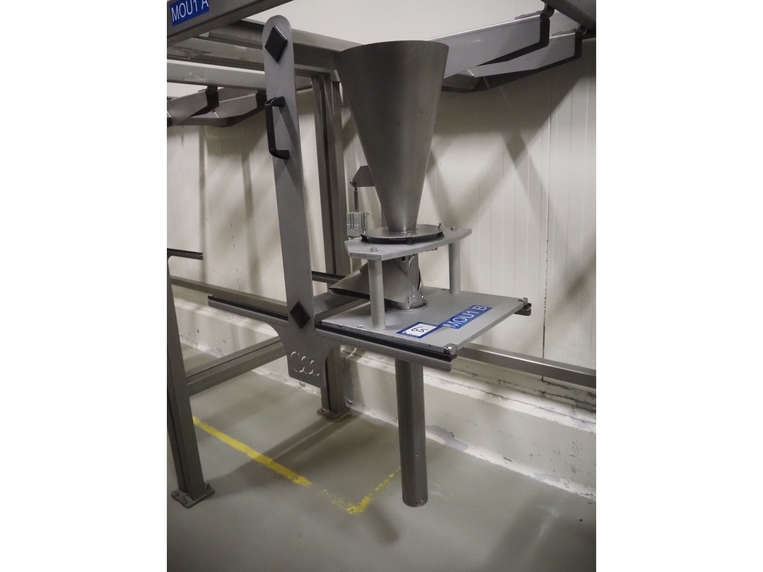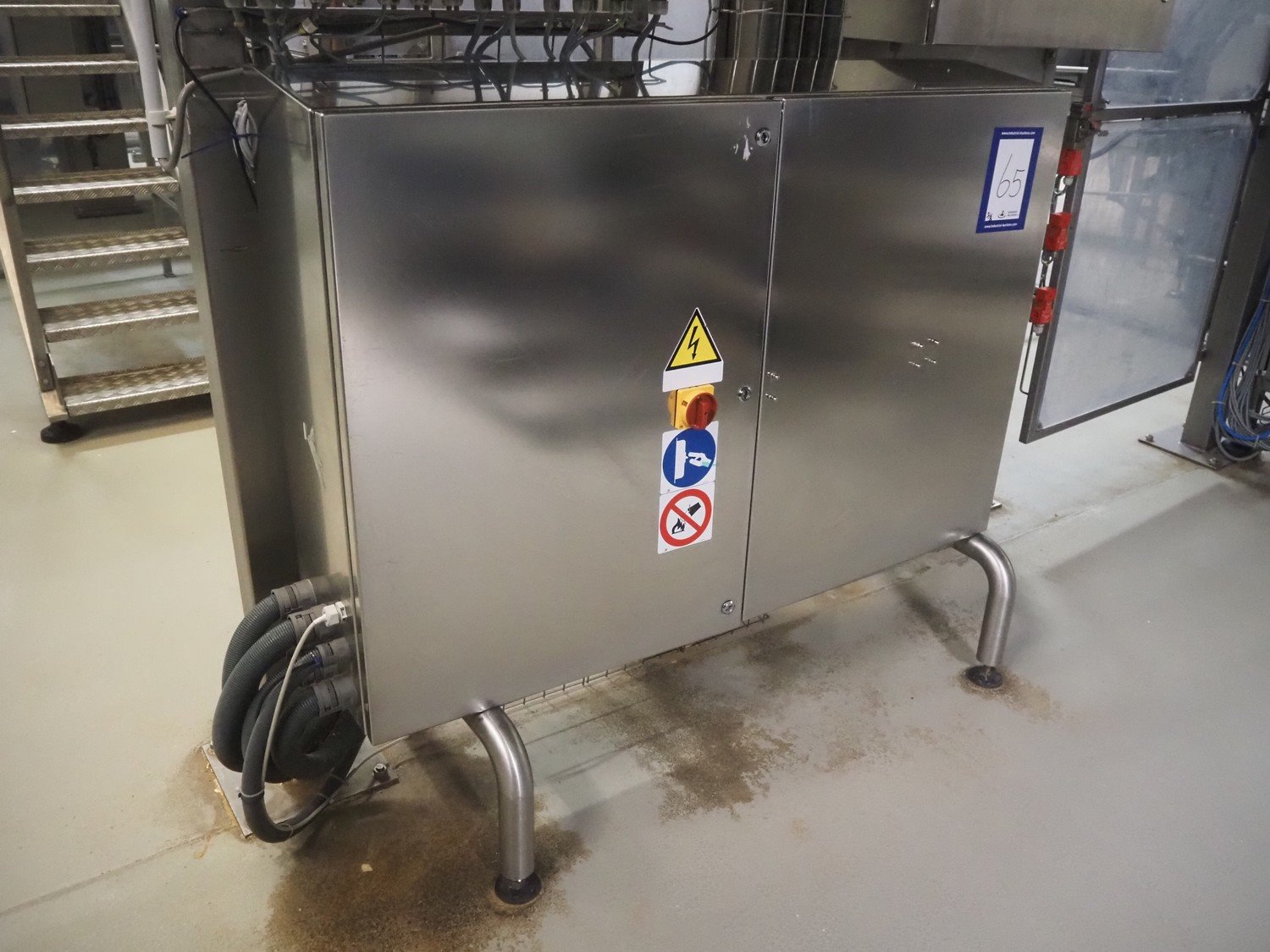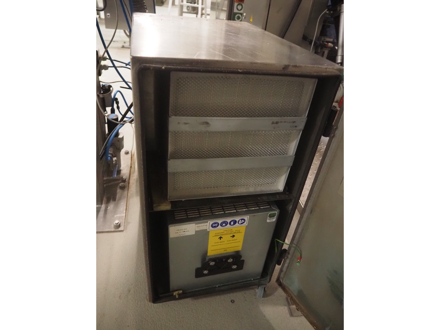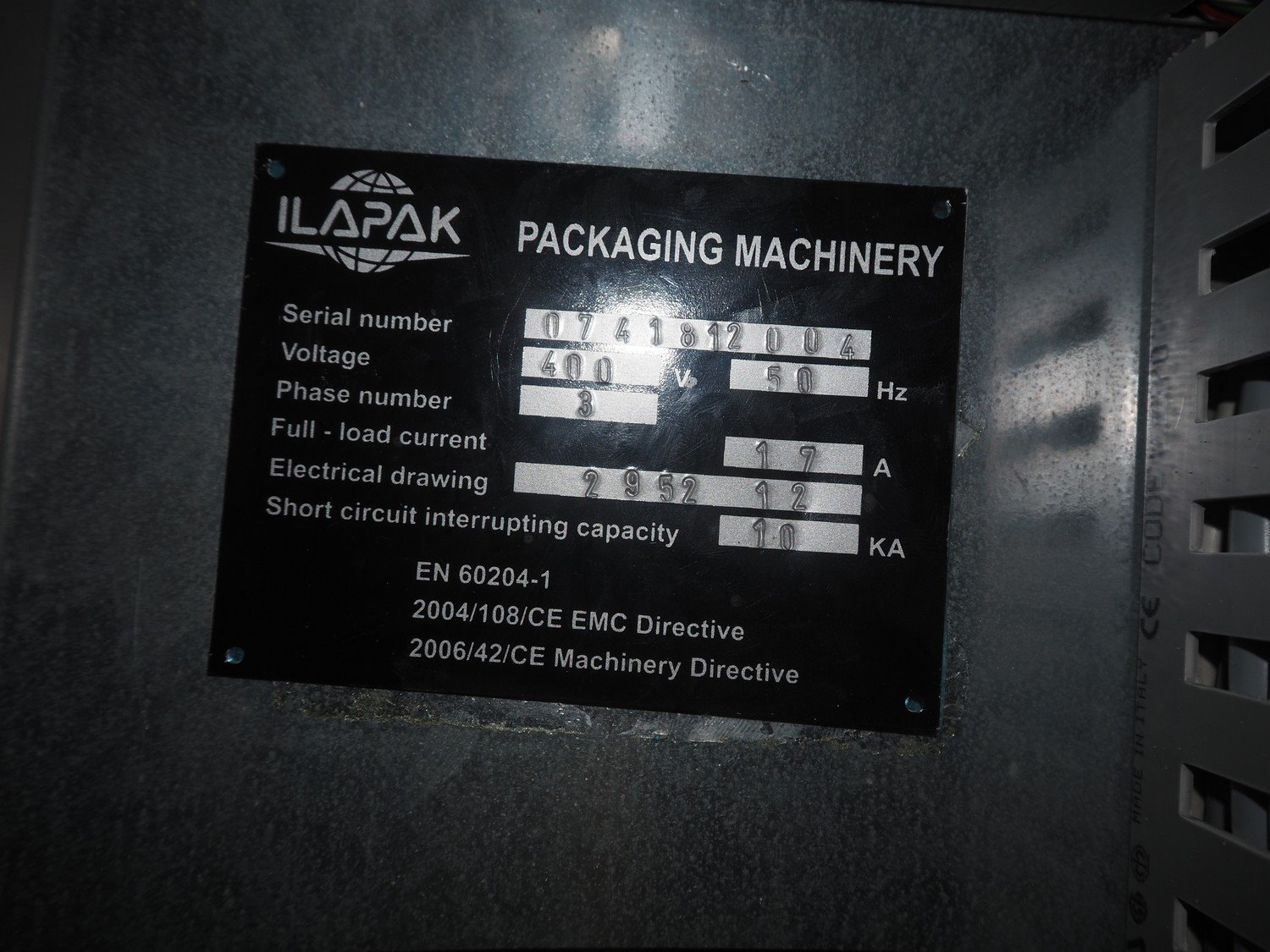Ilapak vertical bag form-, fill-, and seal machine, model: Vegatronic 2000 OF, serial number: 0741812004, 400 V, 3 Ph, 50 Hz, 17 A, vertical seal length: 650 mm, horizontal seal length: 320 mm, filling pipe: Ø 130 mm, film width: 480 mm, total dimensions: 2700 mm x 2350 mm x 2450 mm, Markem laser unit, model: ES400i, serial number: ES400i-521 Issue 2, year of construction: 2006 03, 220/240 V, 1 Ph, 50/60 Hz, dimensions: 700 mm x 400 mm x 770 mm, switch cabinet: 1450 mm x 600 mm x 1330 mm, 2 extra filling pipes: Ø 80 mm and Ø 170 mm, film holders width: (3x) 1320 mm.