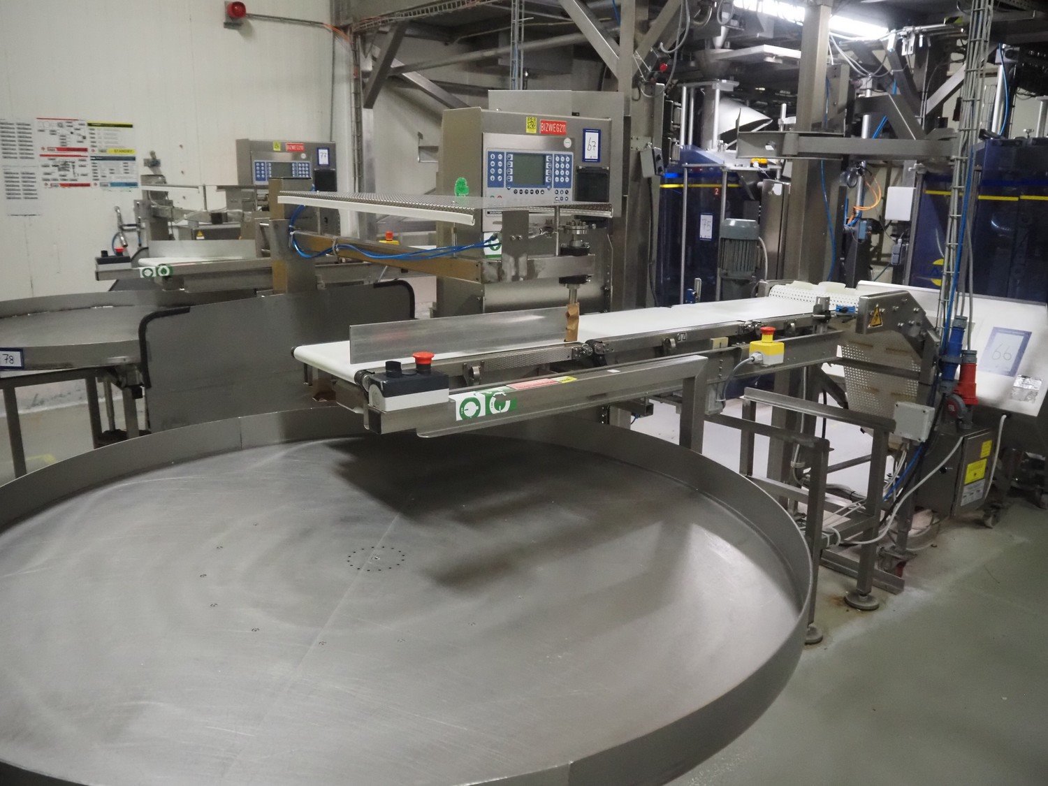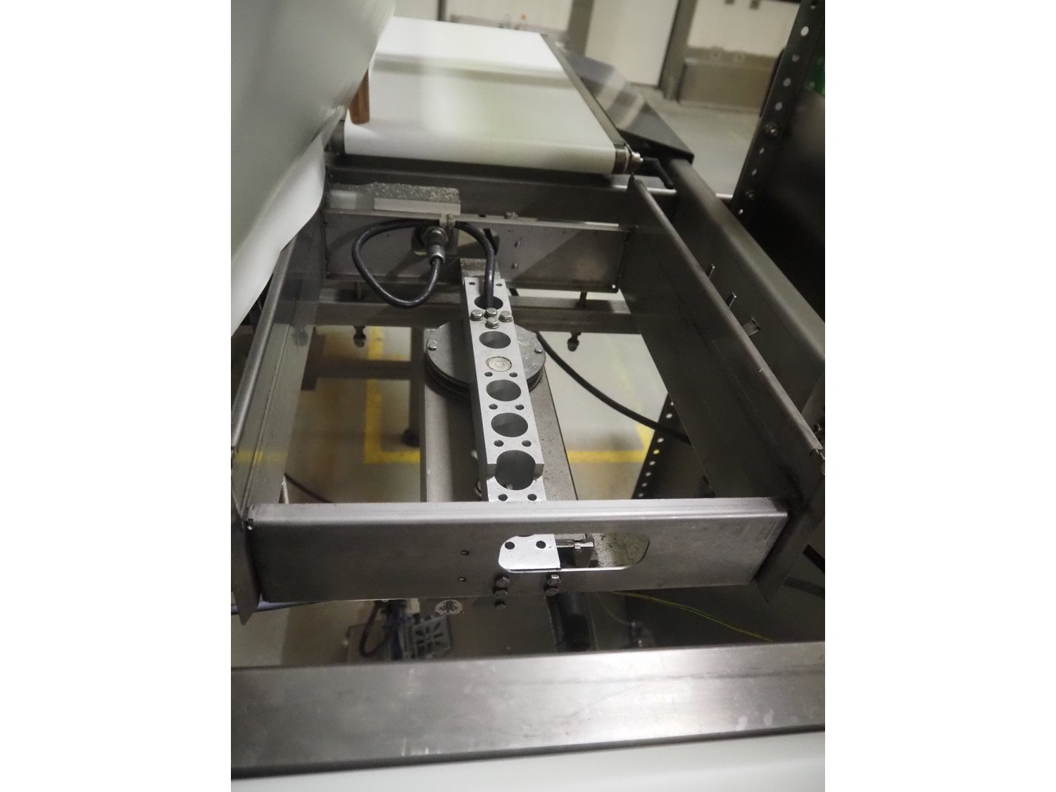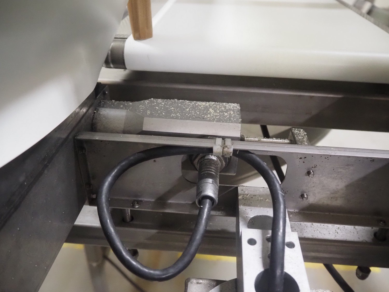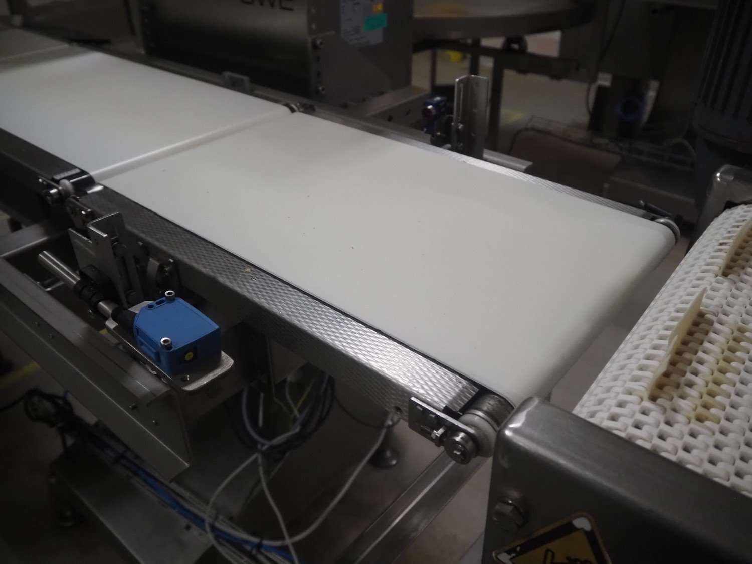 Bizerba checkweigher with rejector, model: CWE, serial number: 10754552, year of construction: M 11, 220/240 V, 50/60 Hz, 5.0/3.0 A, maximum: 1500/3000 g, minimum: 50 g, e=d= 0.5/1 g, plastic belt, belt width: (3x) 300 mm, total dimensions: 1820 mm x 930 mm x 1700 mm.