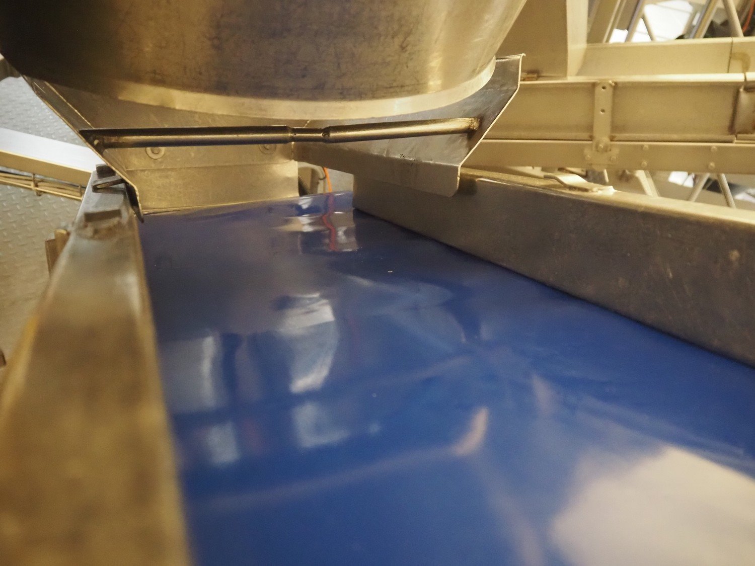 Elevating belt, s/s frame, plastic belt, belt width: 330 mm, elevating height: 1230 mm, total dimensions: 1640 mm x 550 mm x 1400 mm.