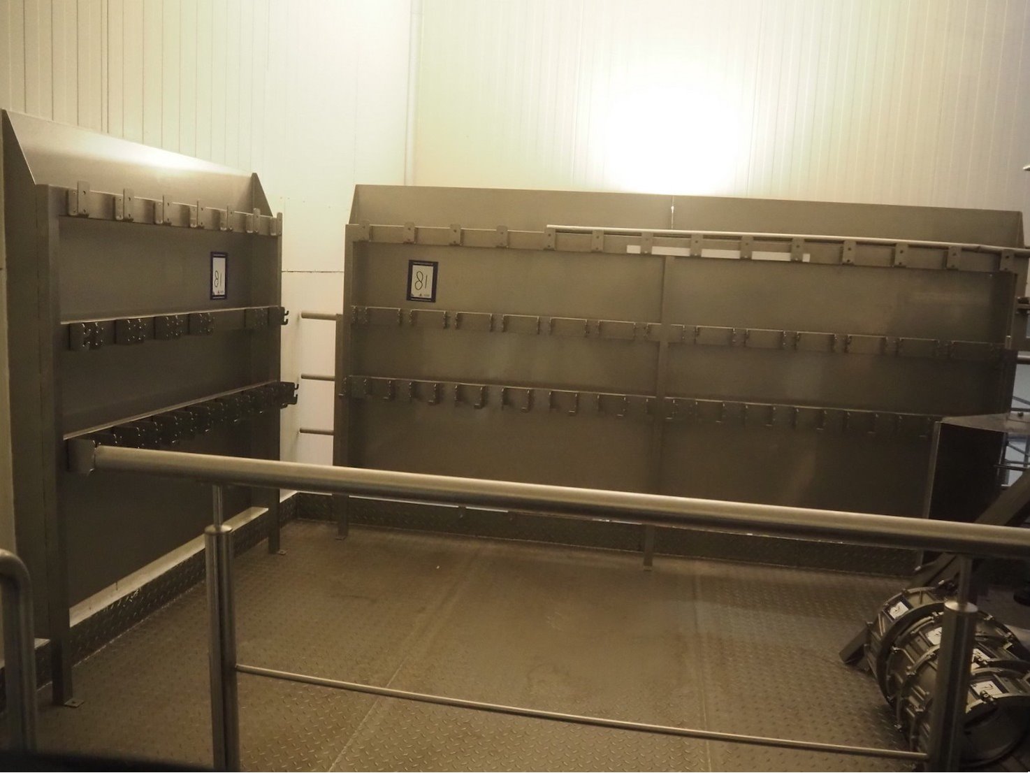 2 s/s frames for cleaning baskets from multihead weigher, 41 places, total dimensions: (1x) 1500 mm x 250 mm x 1700 mm, (1x) 3000 mm x 250 mm x 1700 mm.