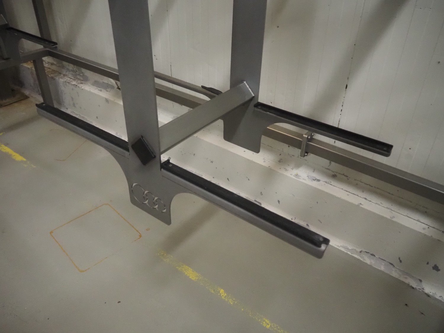 2 s/s racks for filling pipes, (2x) 6 places, total dimensions: (2x) 4800 mm x 1100 mm x 1930 mm. Without filling pipes.