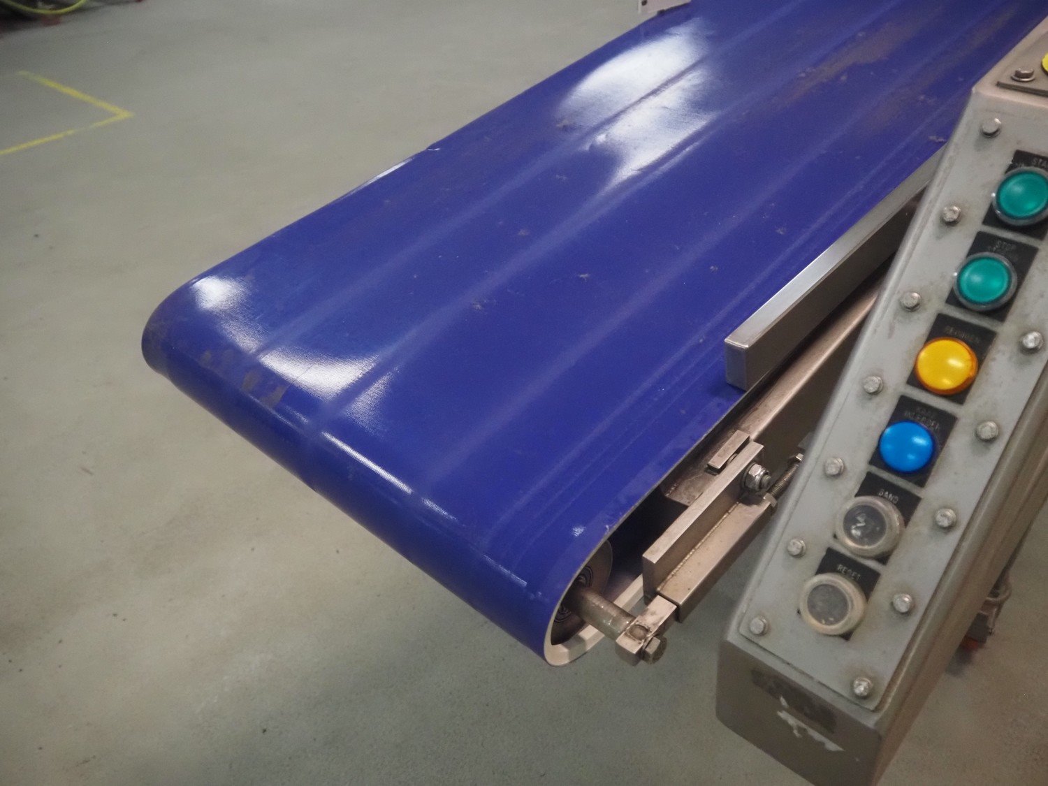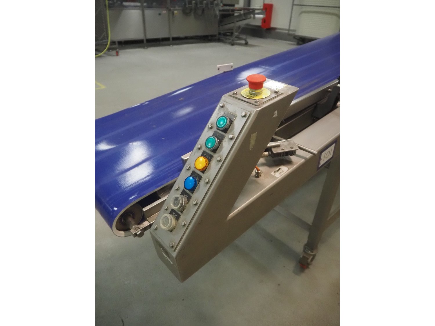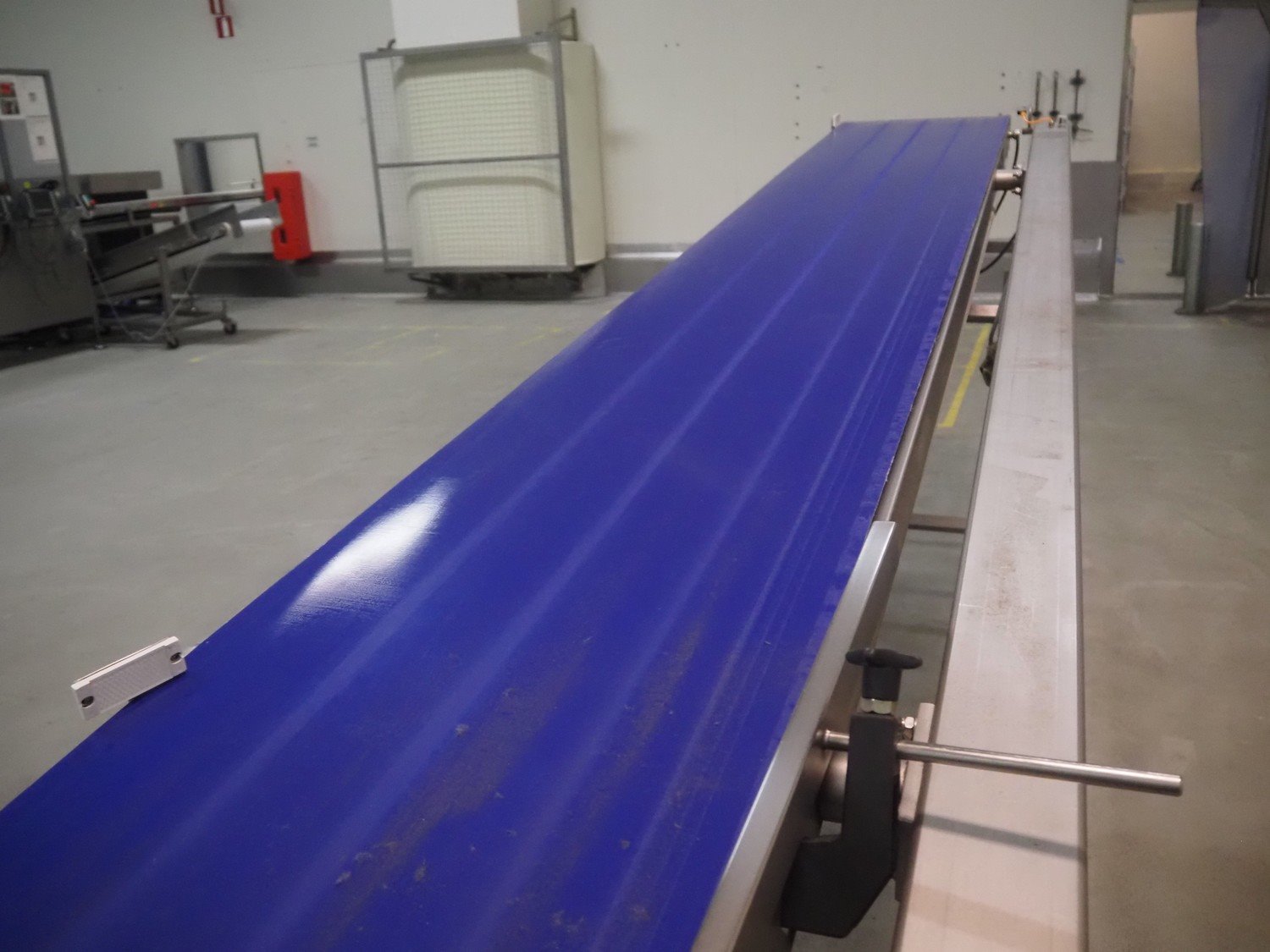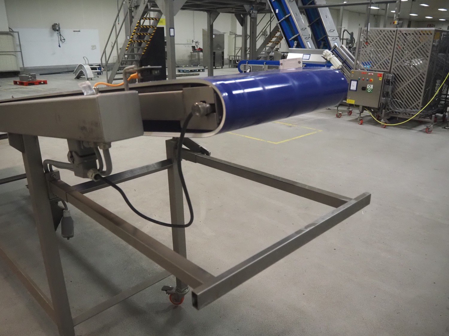 Groba mobile elevating belt, type: TB-504, year of construction: 2005, weight: 230 kg, plastic belt, belt width: 500 mm, elevating height: 1330 mm, total dimensions: 4000 mm x 770 mm x 1350 mm.