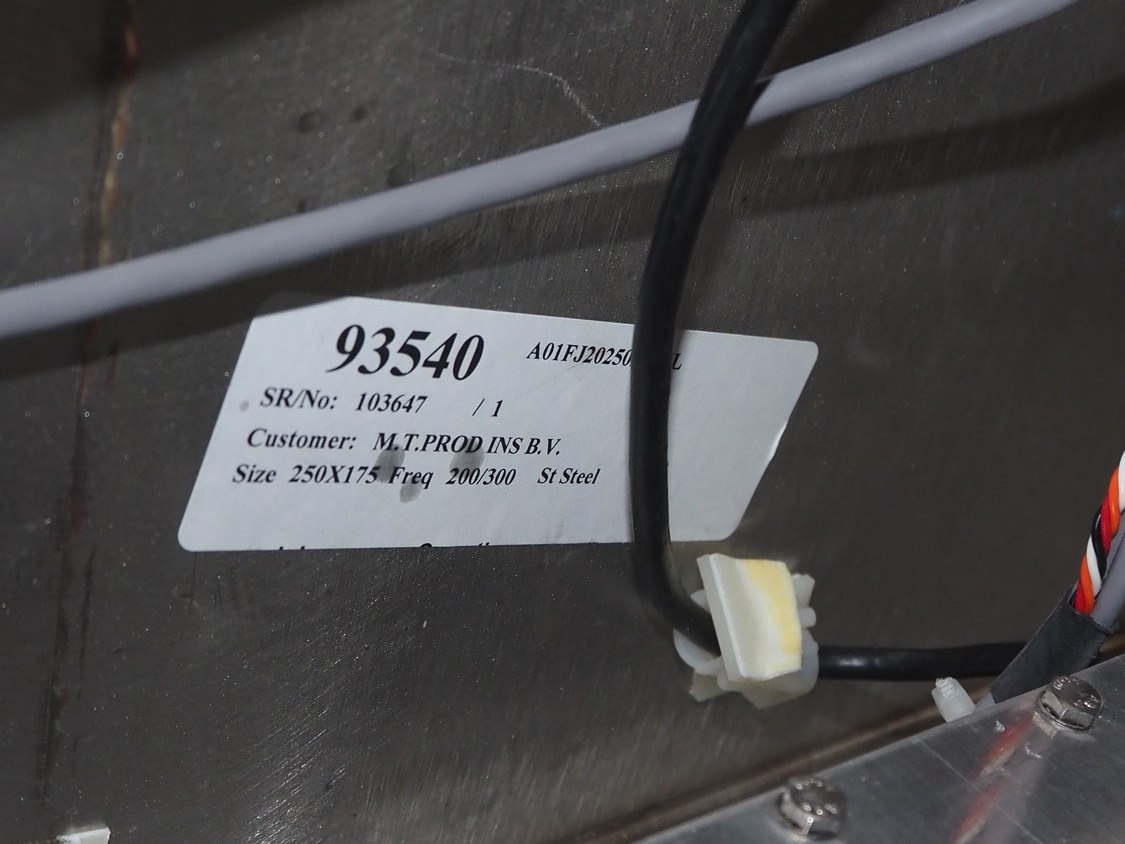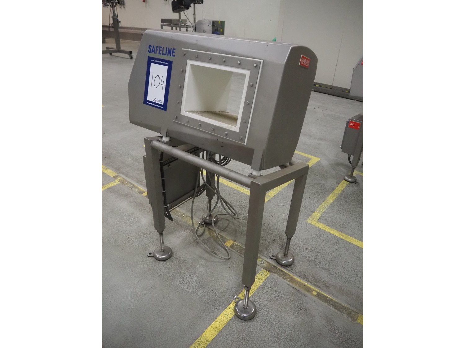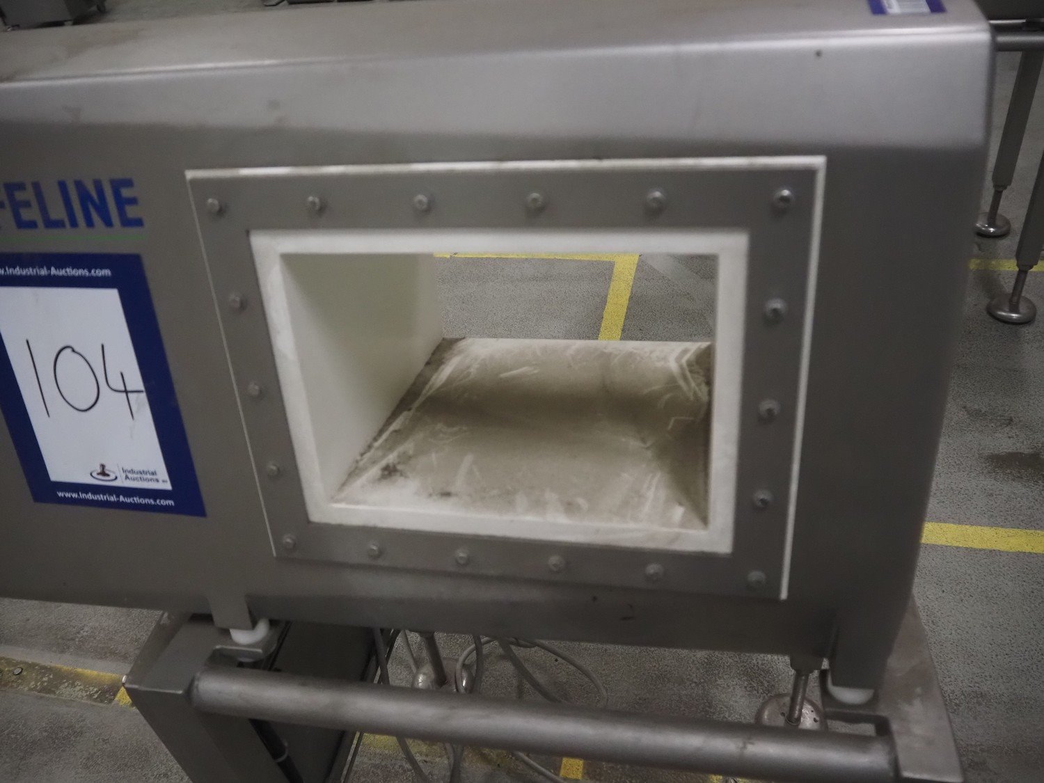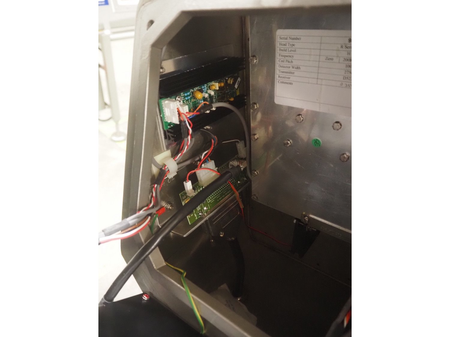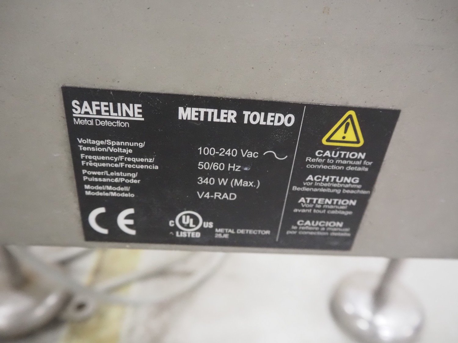 Safeline / Mettler Toledo metal detector head on s/s frame, type: R series profile, model: V4-RAD, serial number: 93540, 100-240 V, 50/60 Hz, 340 W, clearance: 250 mm x 170 mm, total dimensions: 800 mm x 450 mm x 1100 mm.