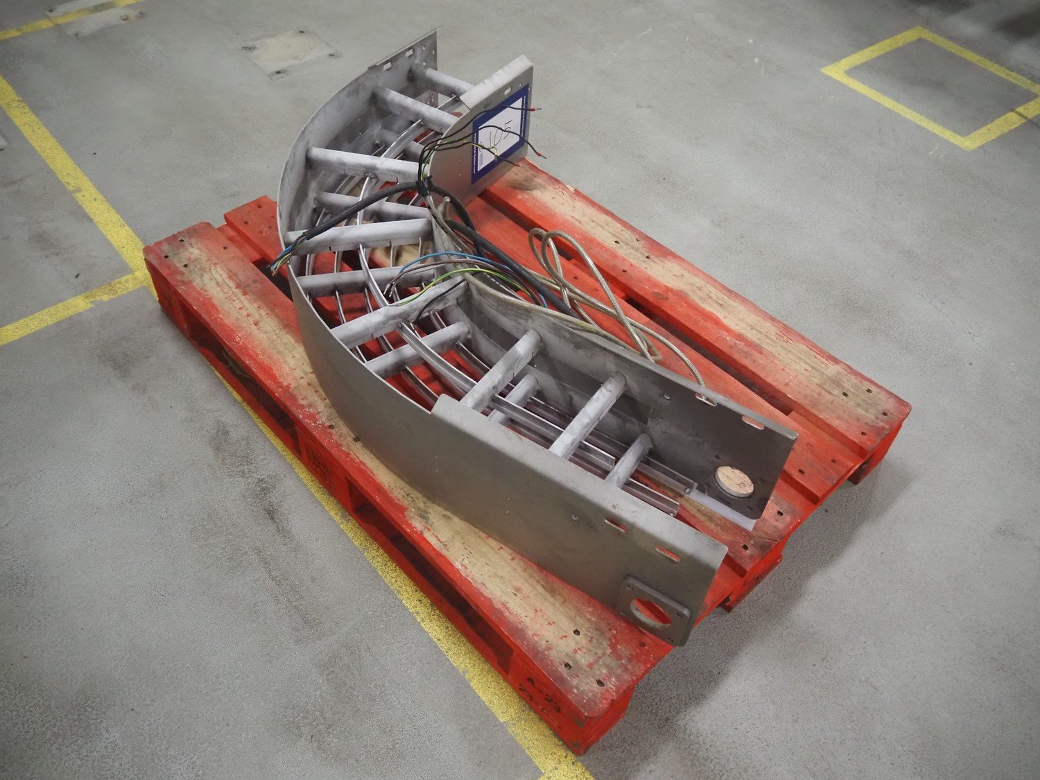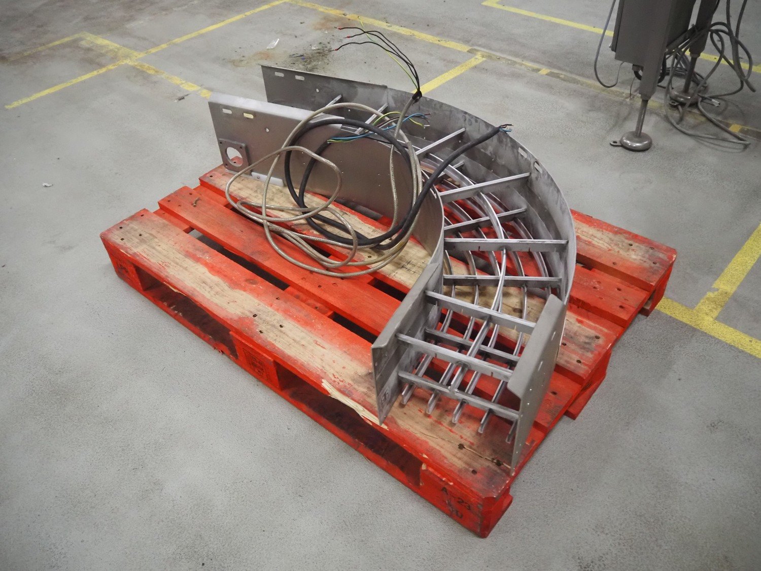 S/s 90° curve conveyor, belt width: 240 mm, total dimensions: 1150 mm x 850 mm x 240 mm. Missing belt.