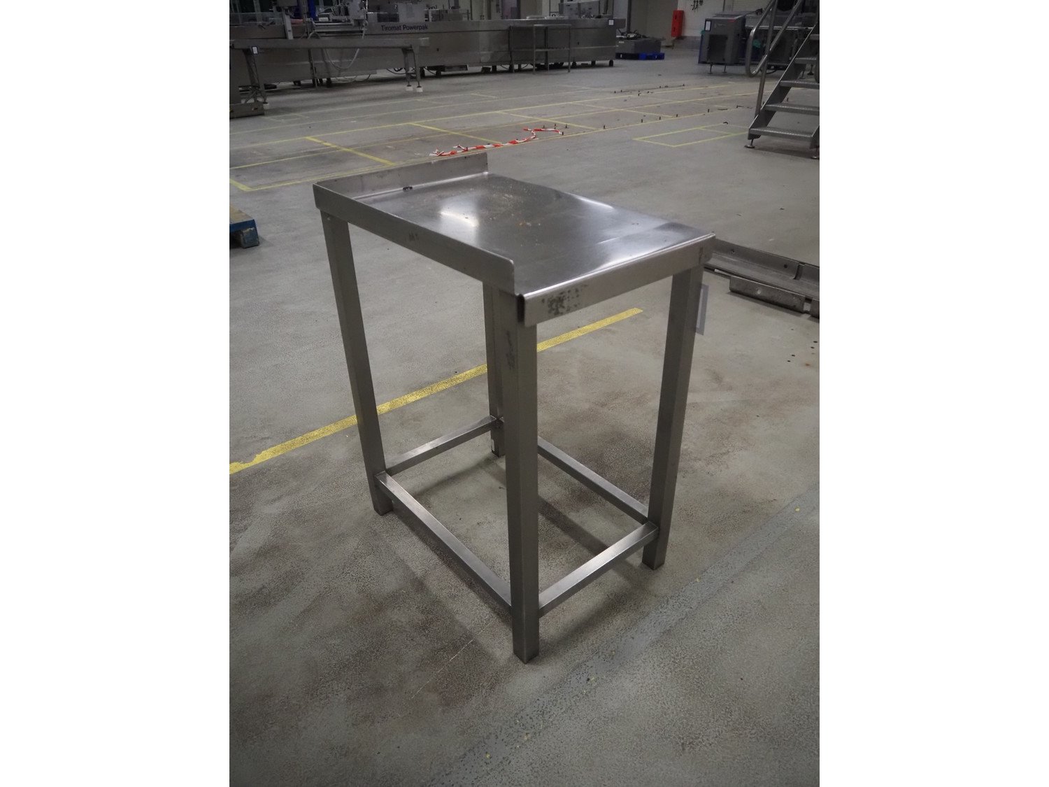 S/s table, dimensions: 670 mm x 460 mm x 850 mm.