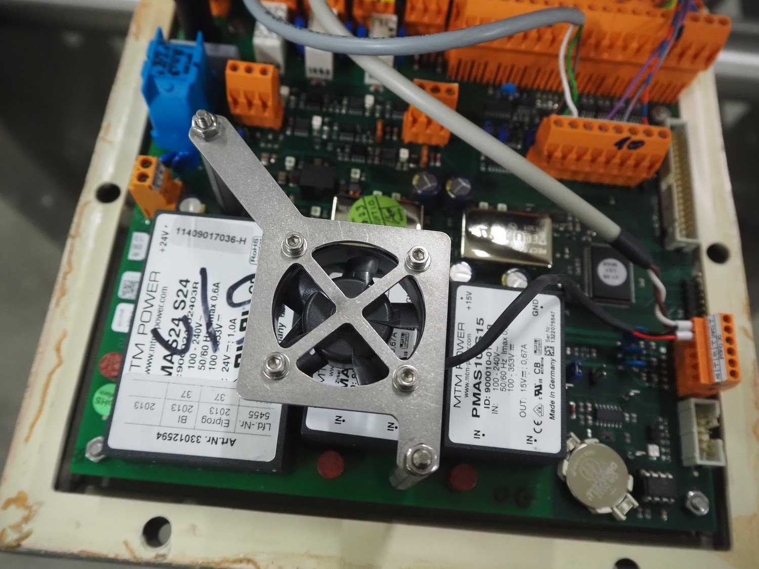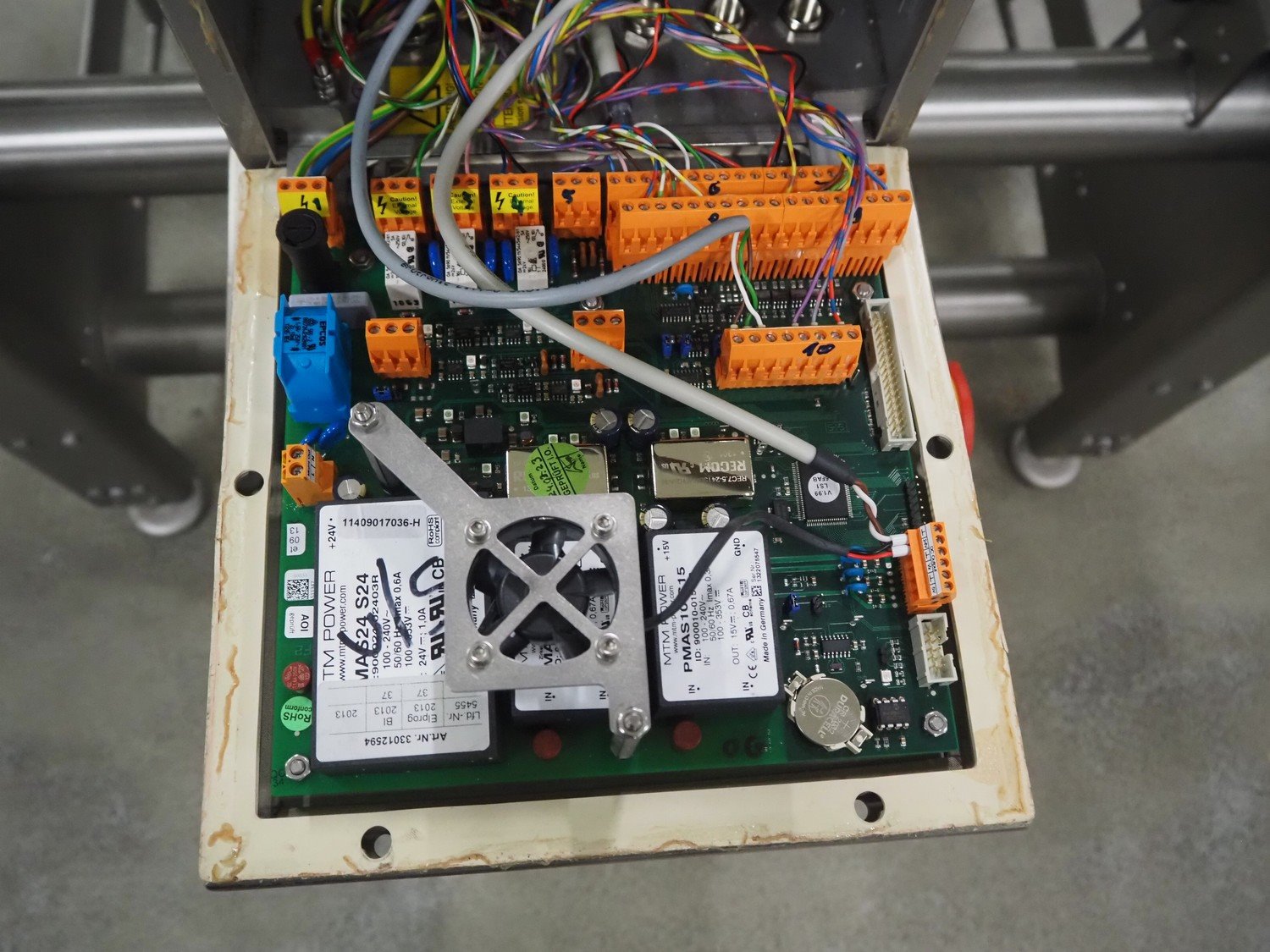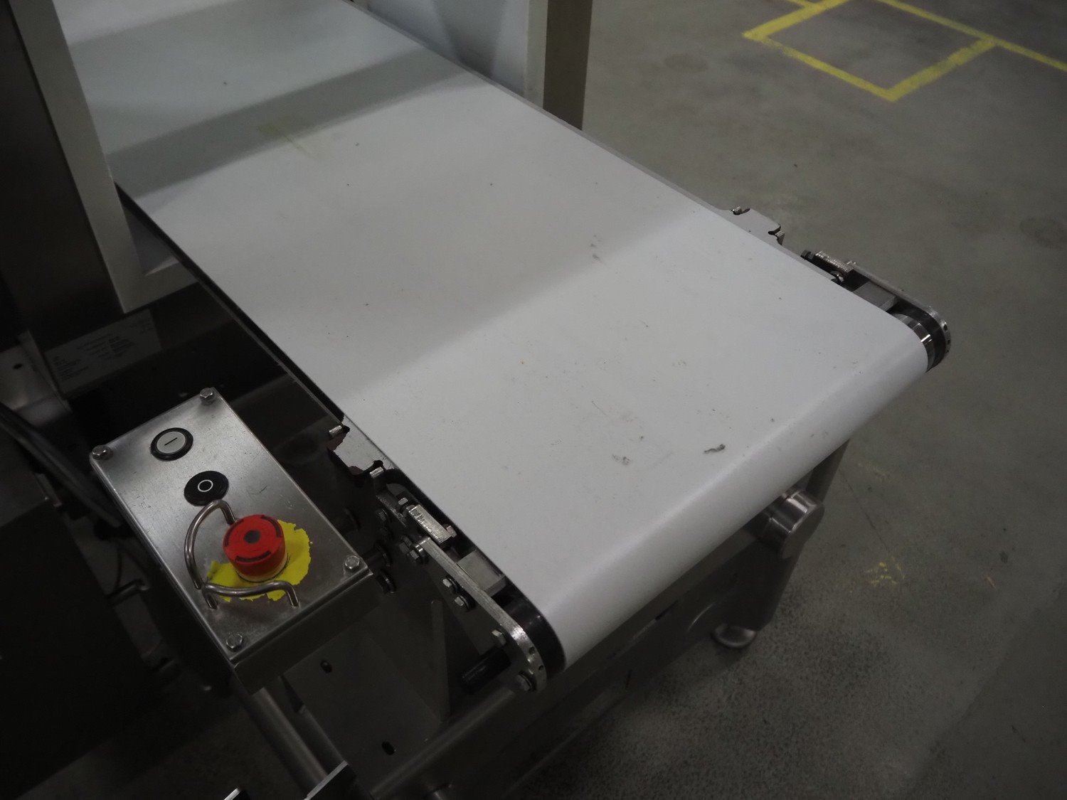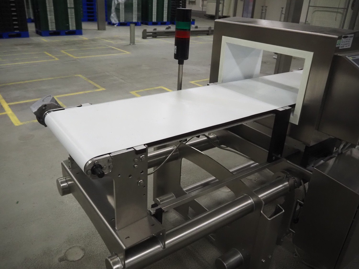 Sesotec metal detector, type: GLS 450/250/125/289/143, serial number: 11227009665-H, year of construction: 2012, 100-240 VAC, 50/60 Hz, 0.5-0.25 A, plastic belt, belt width: 390 mm, clearance: 450 mm x 200 mm, total dimensions: 1750 mm x 1000 mm x 1200 mm.