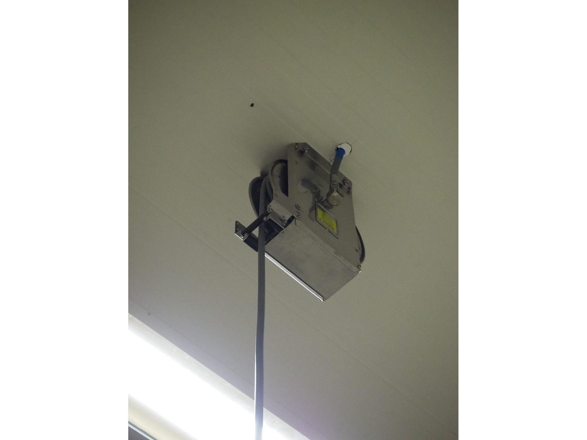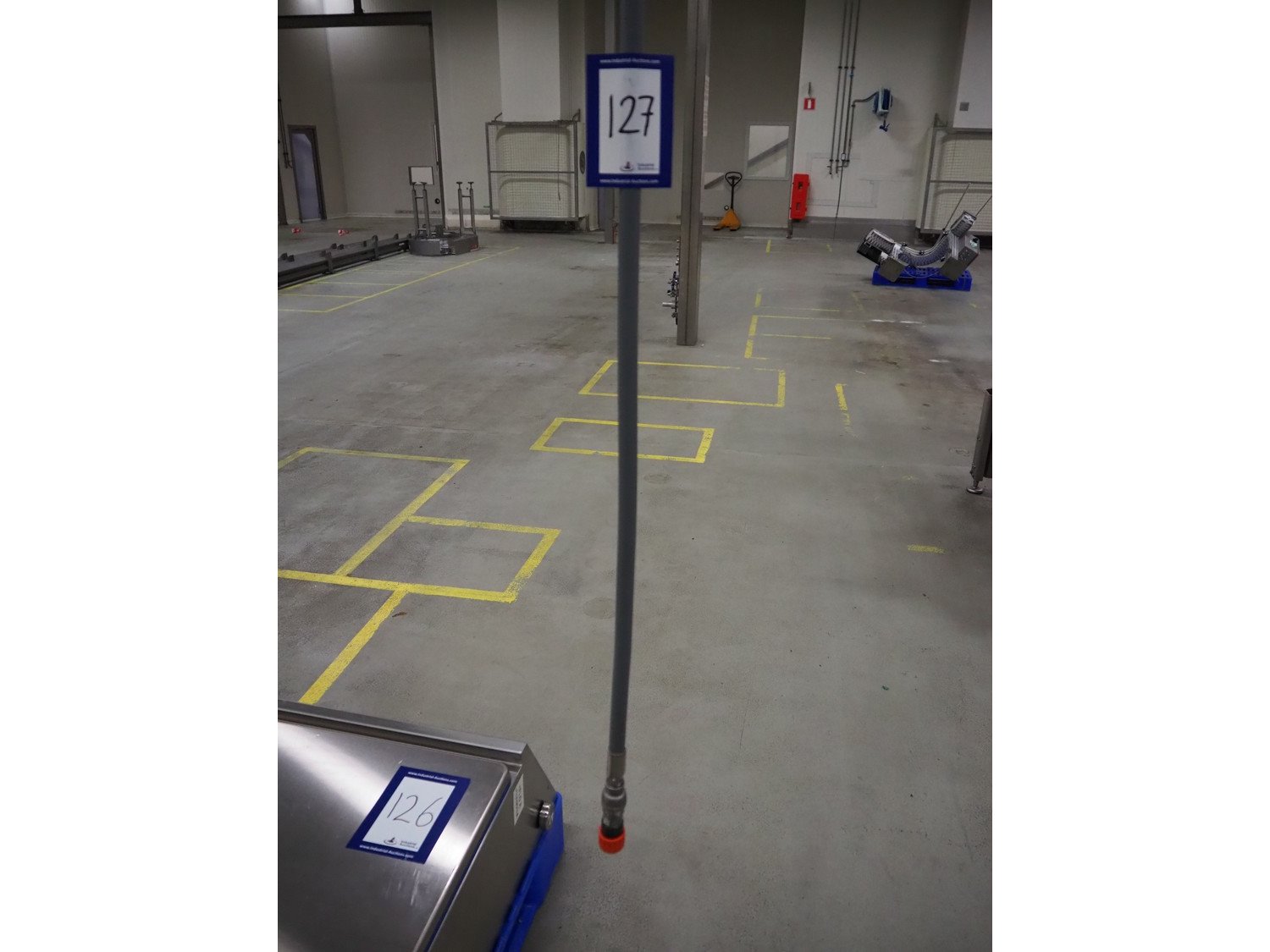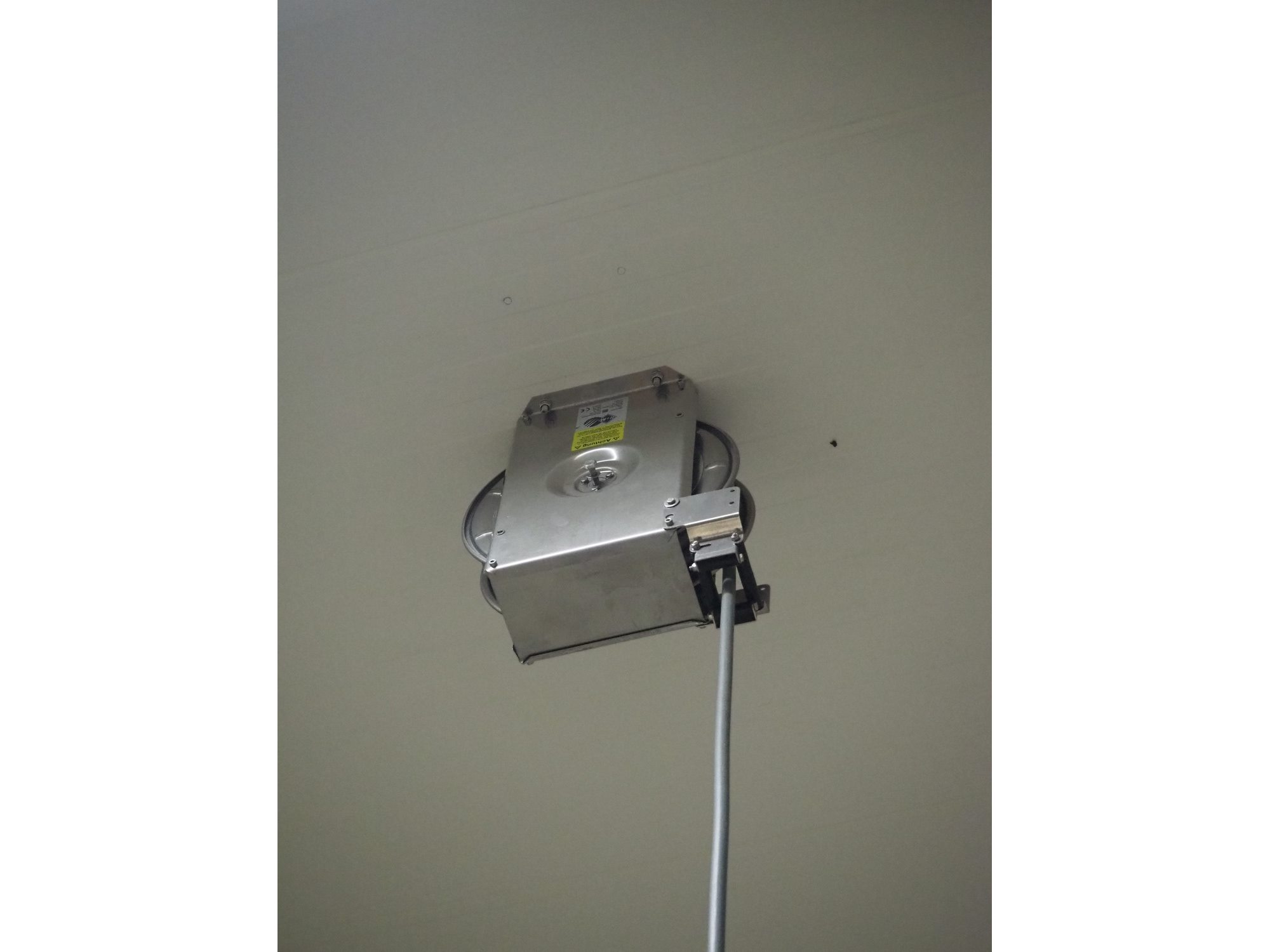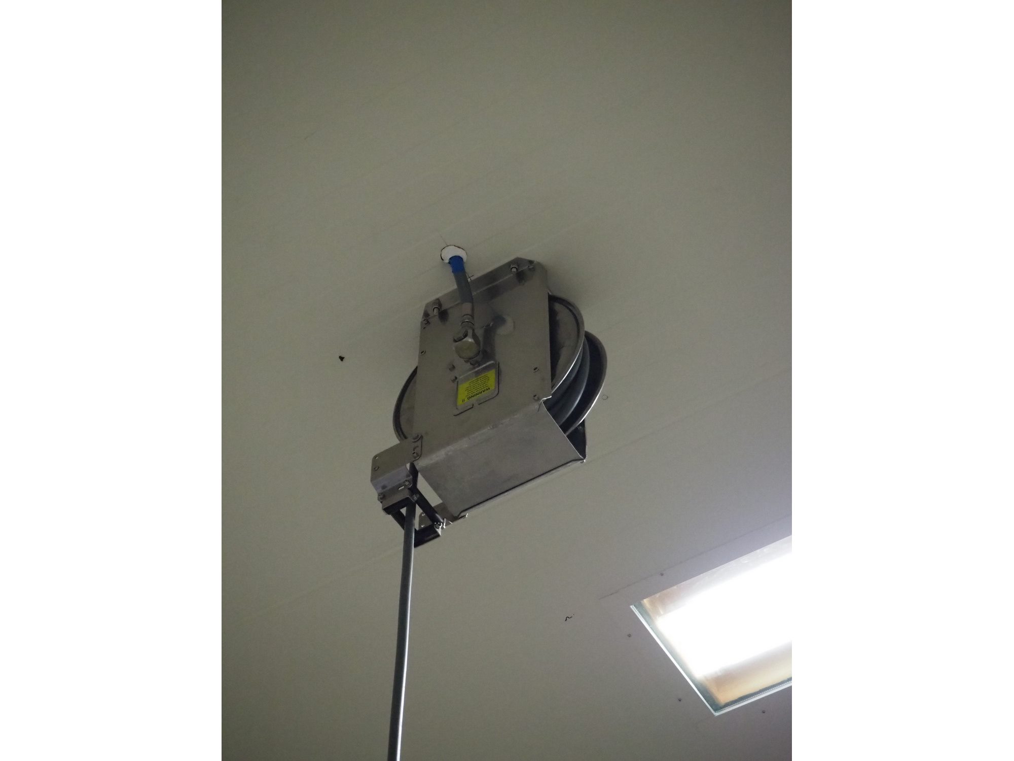 S/s hose reel with hose, dimensions: 430 mm x 230 mm x 420 mm.