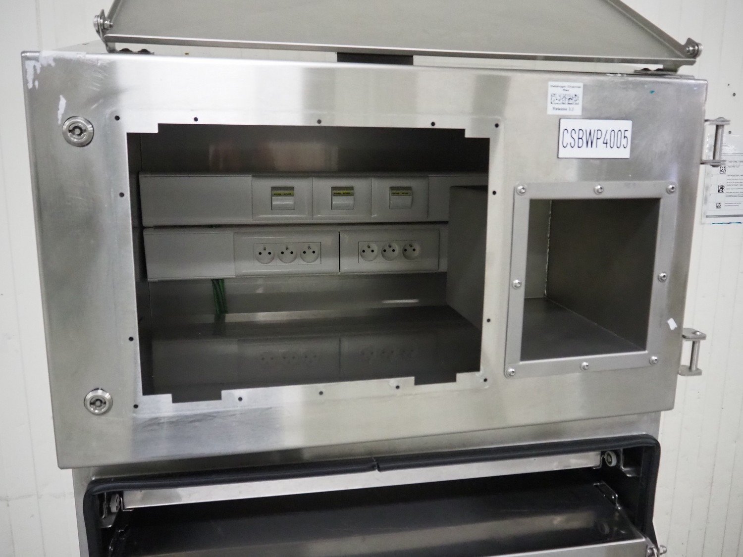 Prominox s/s wall mounted computer cabinet, dimensions: 650 mm x 800 mm x 1830 mm.