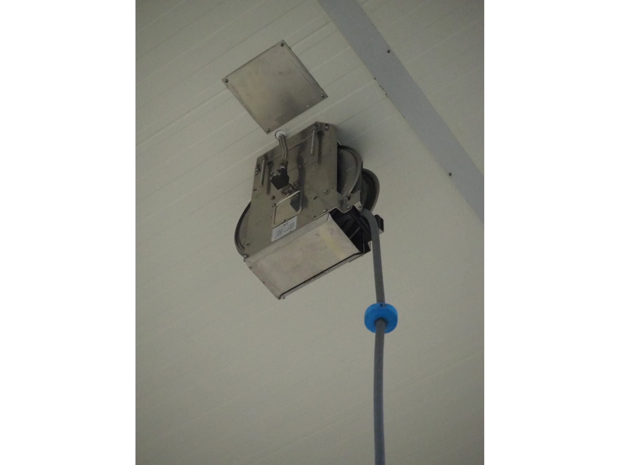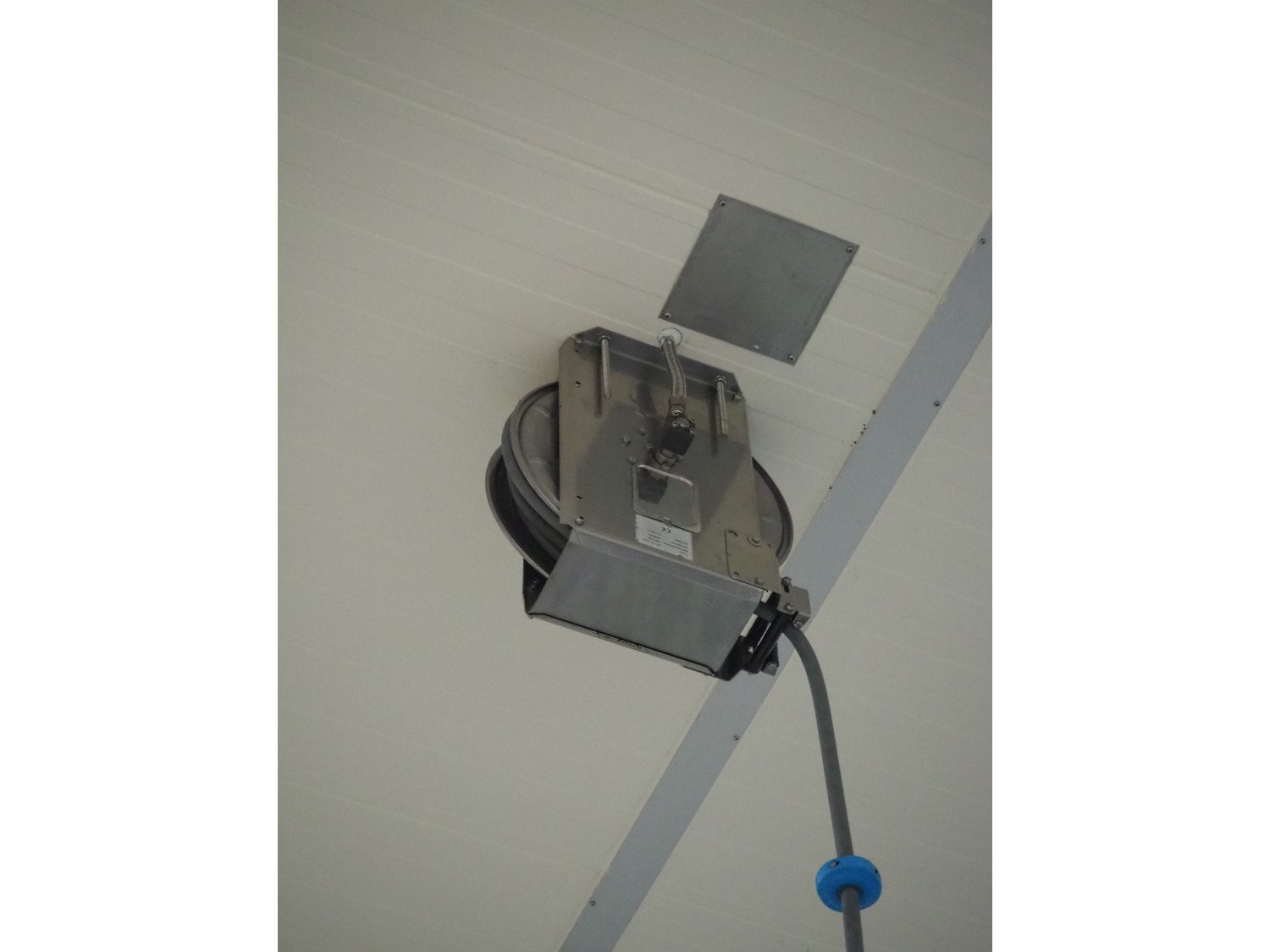 S/s hose reel with hose, dimensions: 430 mm x 230 mm x 420 mm.