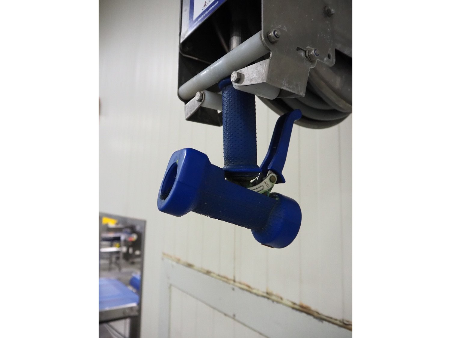 S/s hose reel with hose and pistol, type: ST 71, serial number: 051640, year of construction: 06/2005, dimensions: 430 mm x 230 mm x 420 mm.