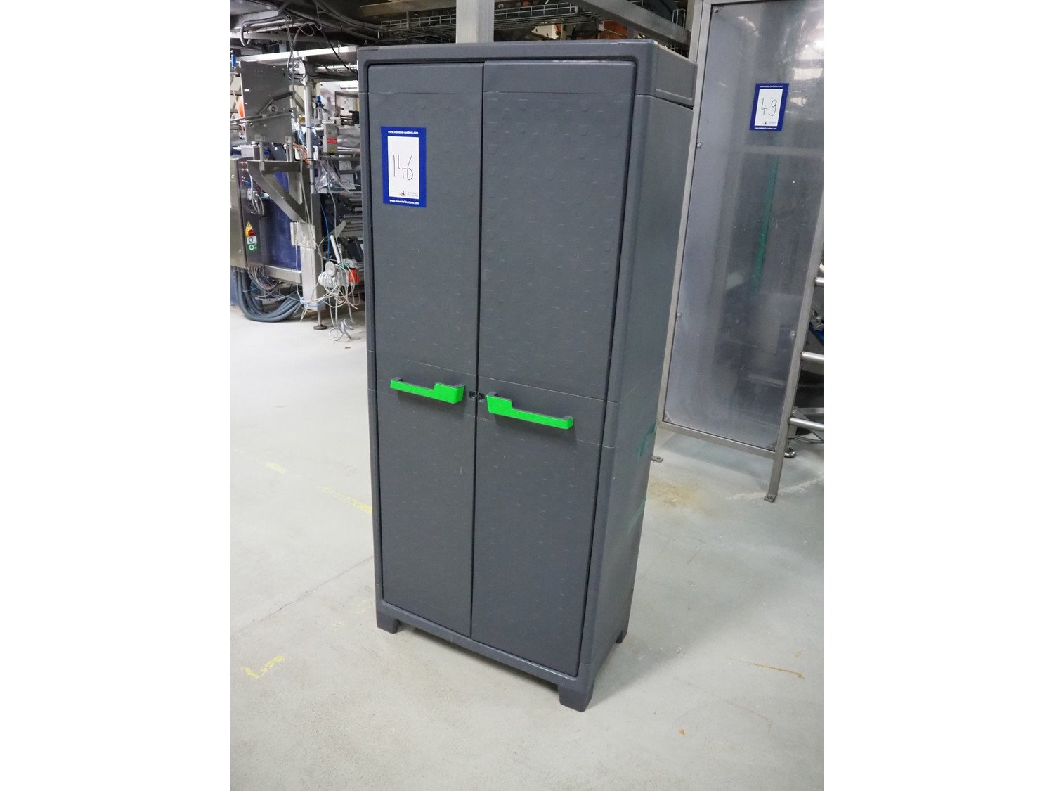 Plastic cabinet, 5 floors, dimensions: 780 mm x 430 mm x 1810 mm.