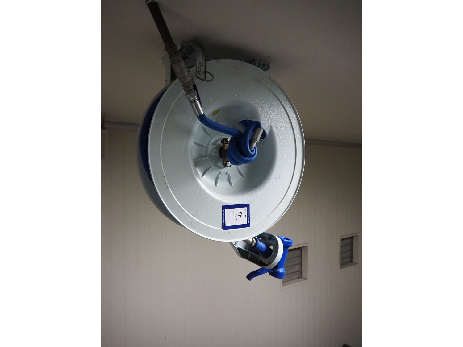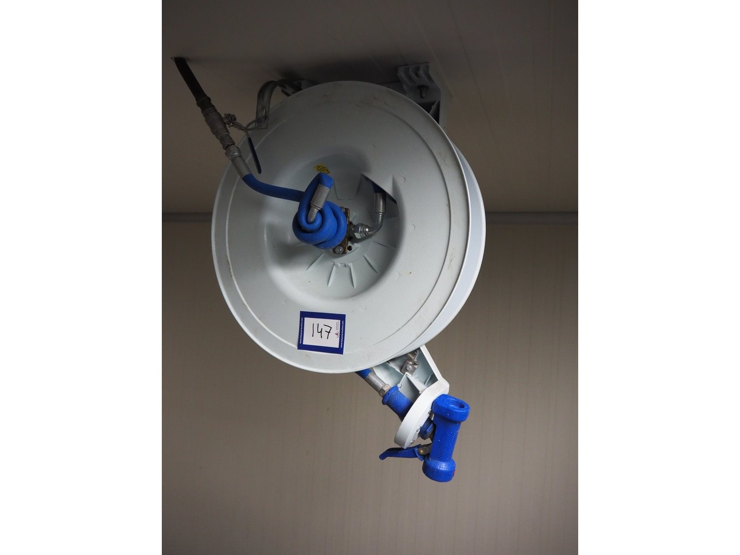 Nederman hose reel with pistol, dimensions: 730 mm x 300 mm x 550 mm.