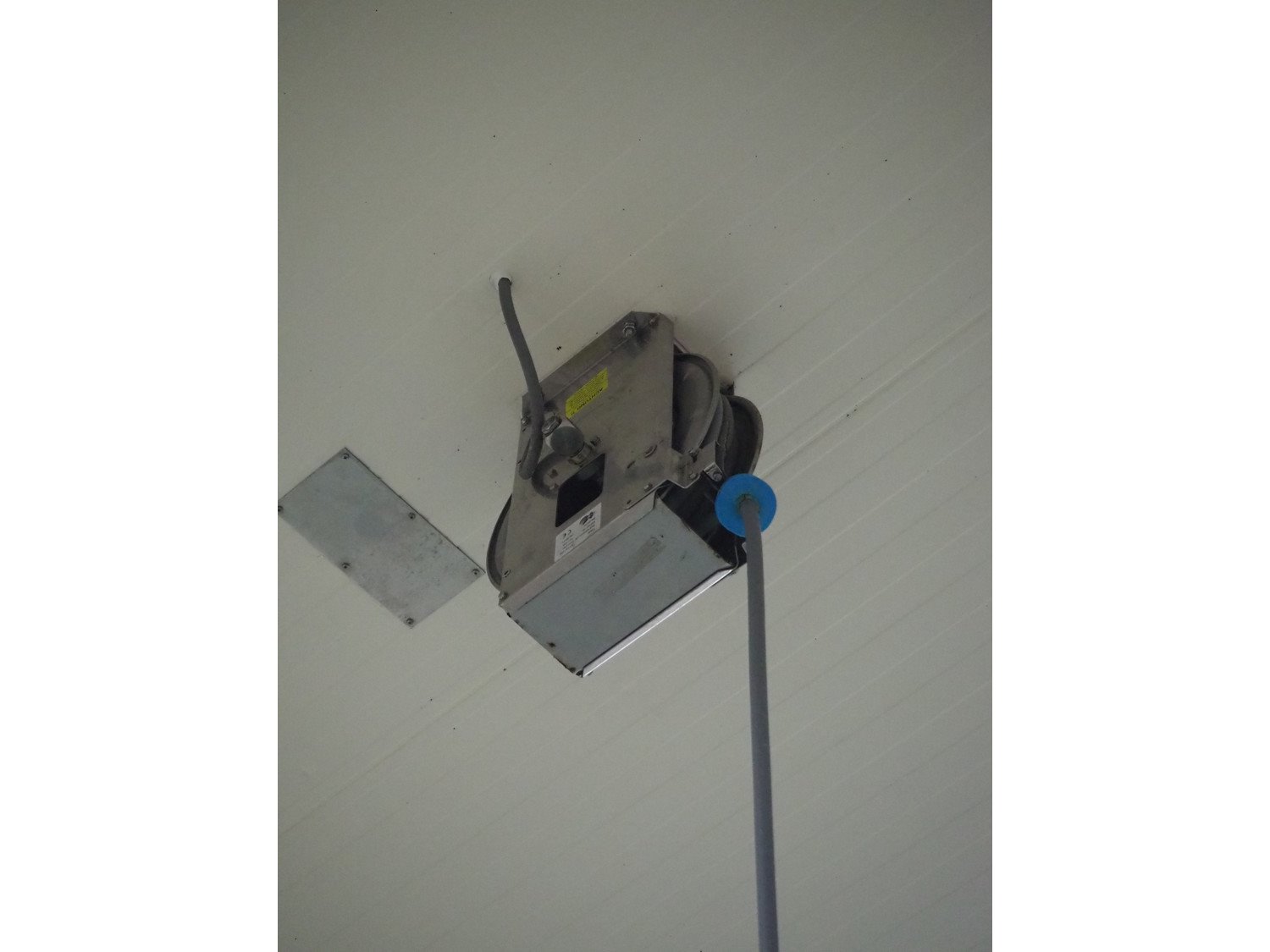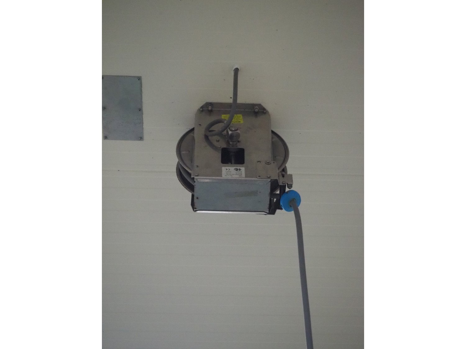 S/s hose reel with hose, dimensions: 430 mm x 230 mm x 420 mm.