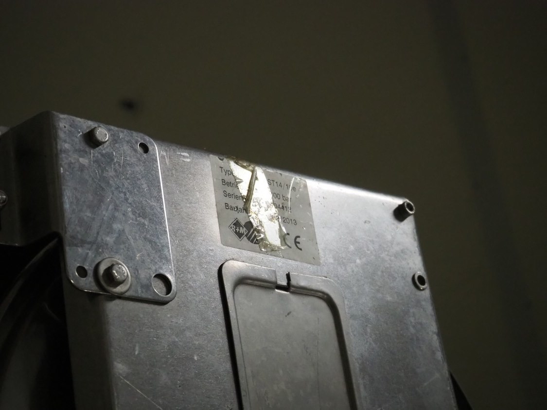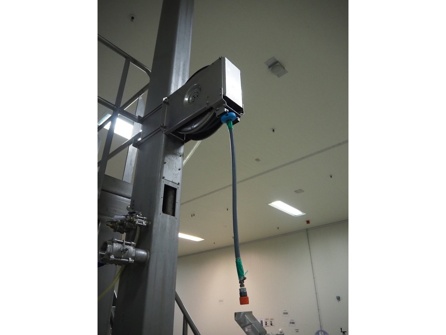 R+M s/s hose reel with hose and pistol, type: ST14/10e, year of construction: 2013, dimensions: 430 mm x 230 mm x 420 mm.