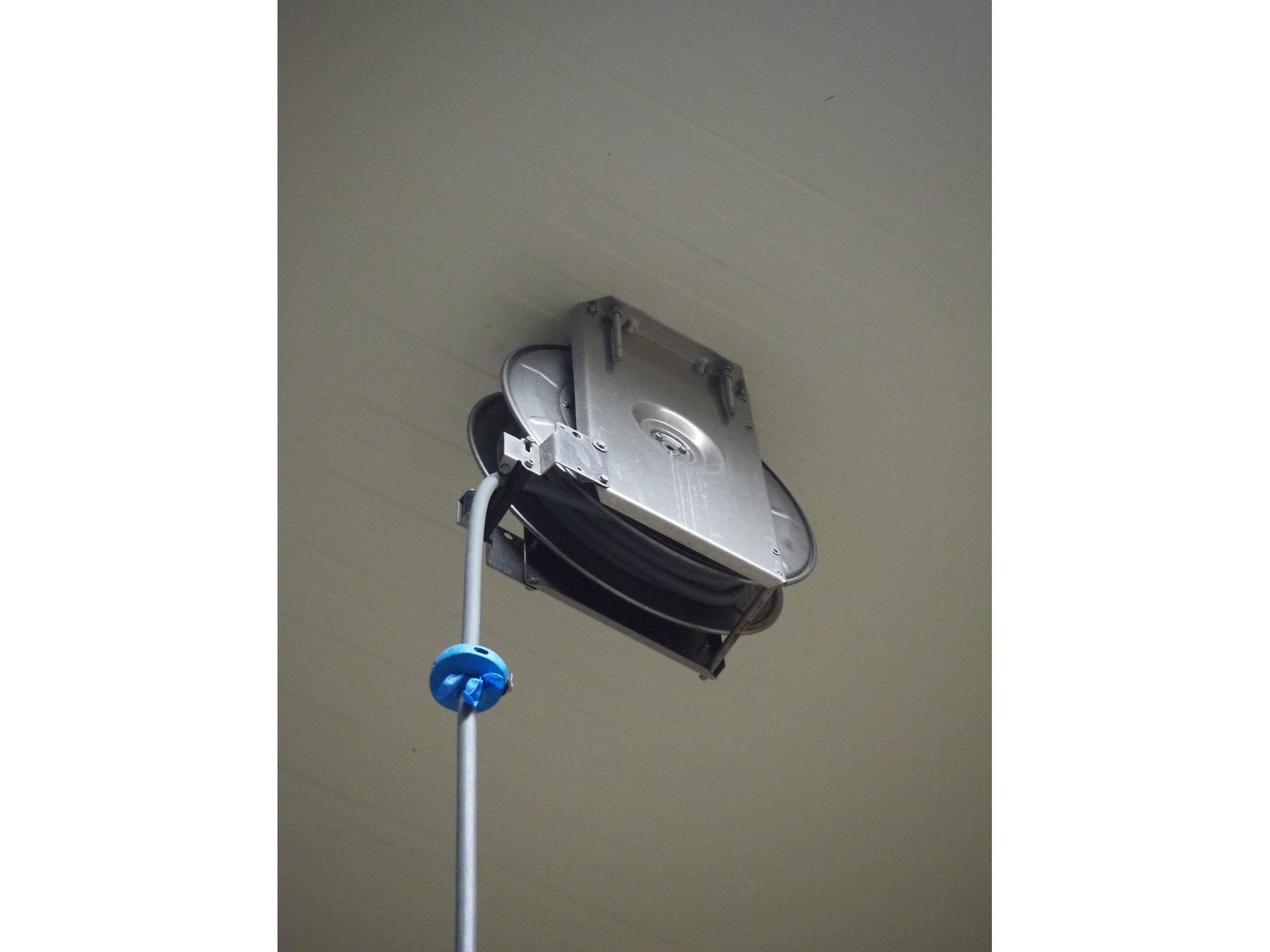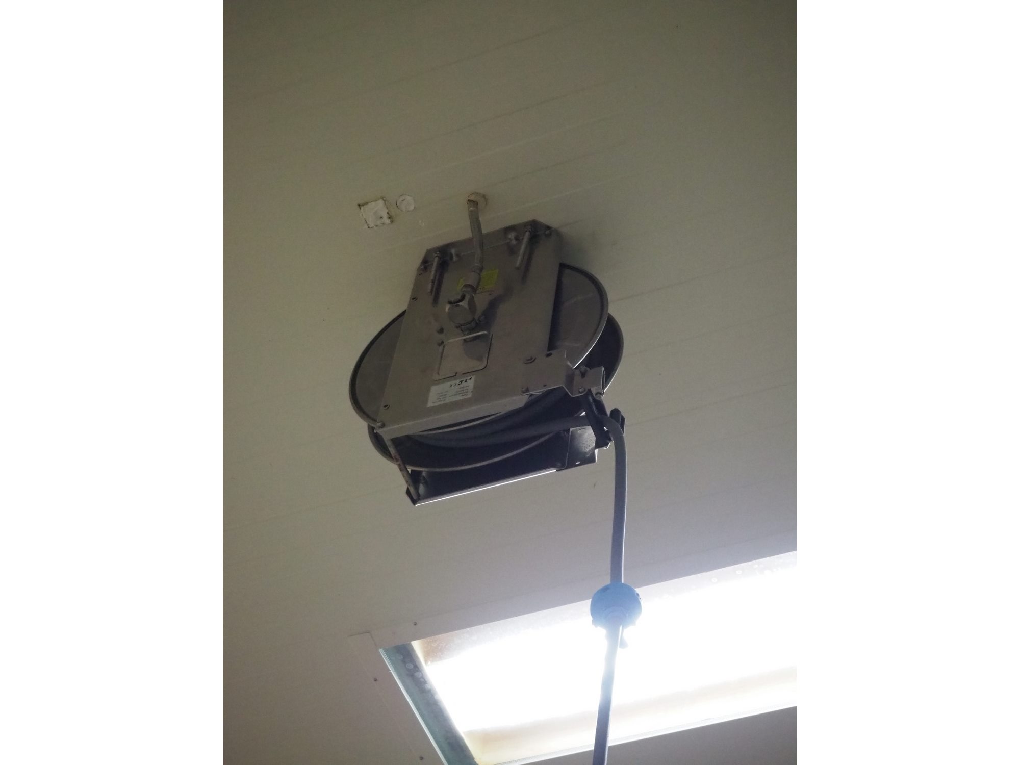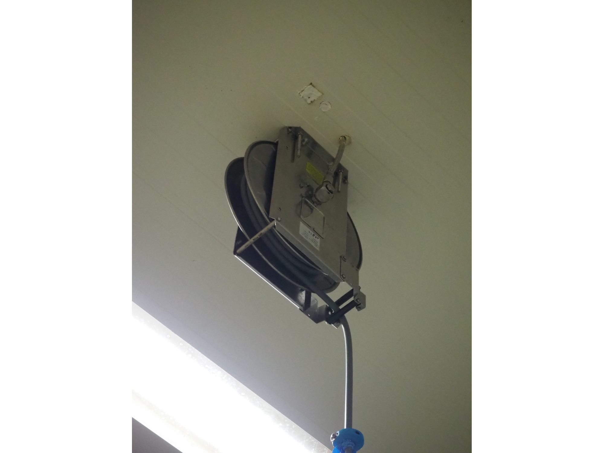 S/s hose reel with hose and pistol, dimensions: 430 mm x 230 mm x 420 mm.